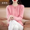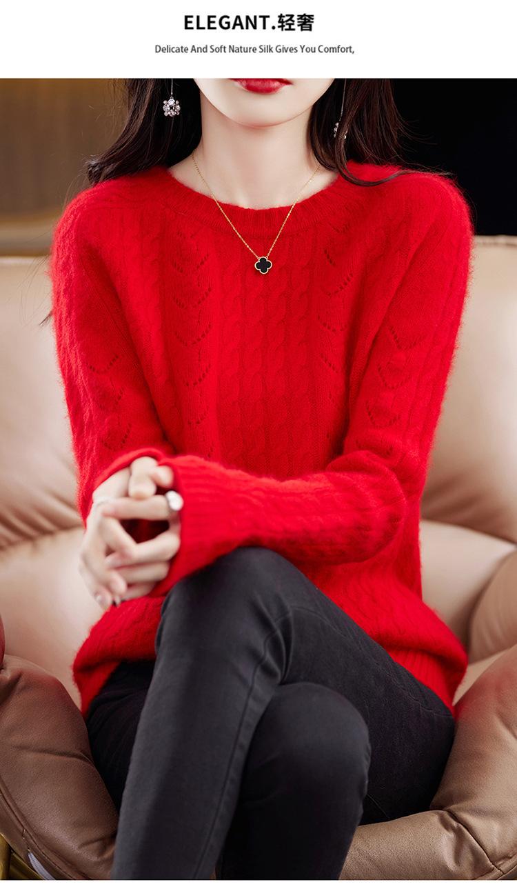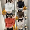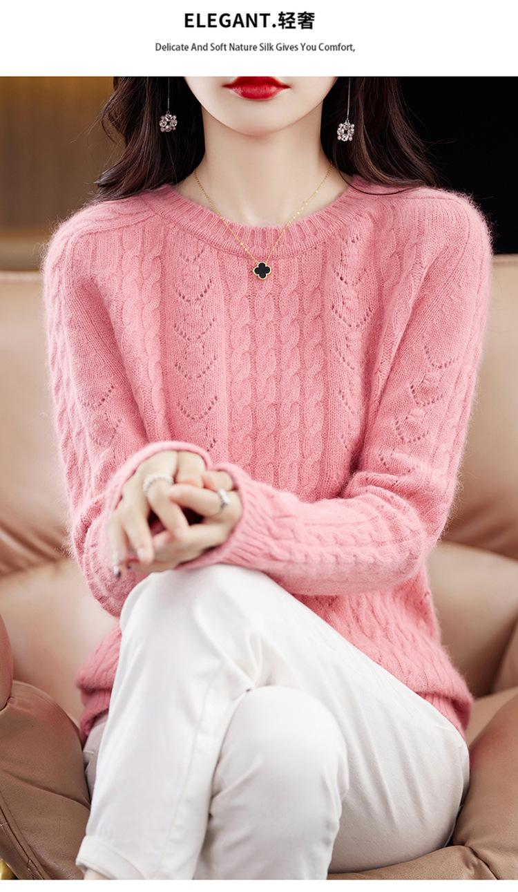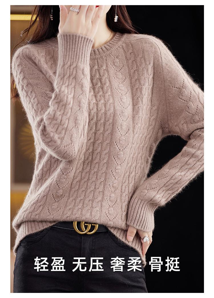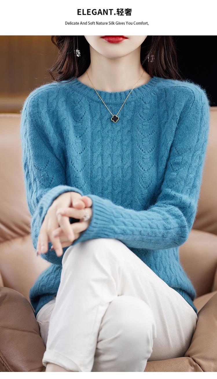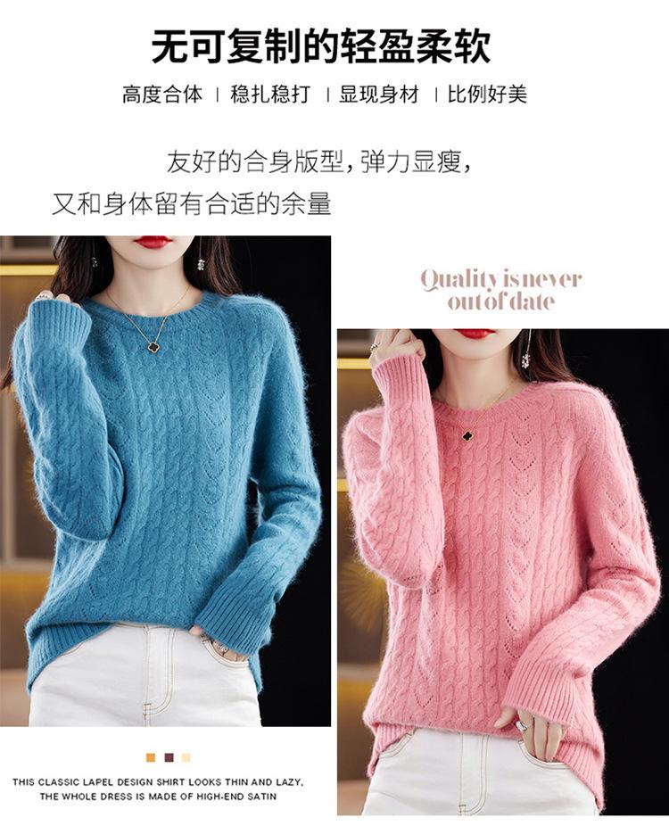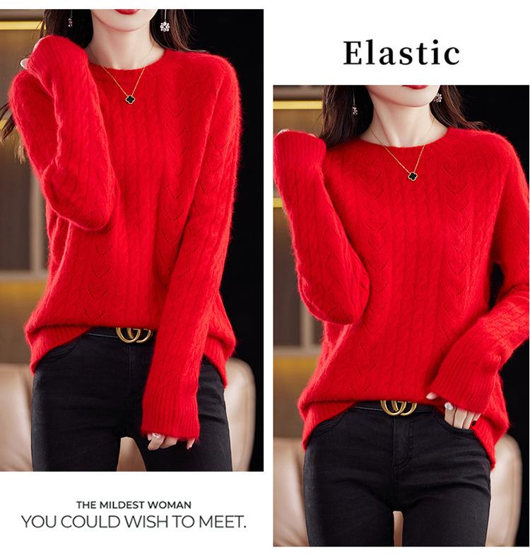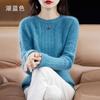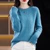 Suéter de Forro Polar de Visón de Otoño e Invierno para Mujer Corto Grueso de Cuello Redondo Suelto Jacquard Color Sólido Jersey Lana Base