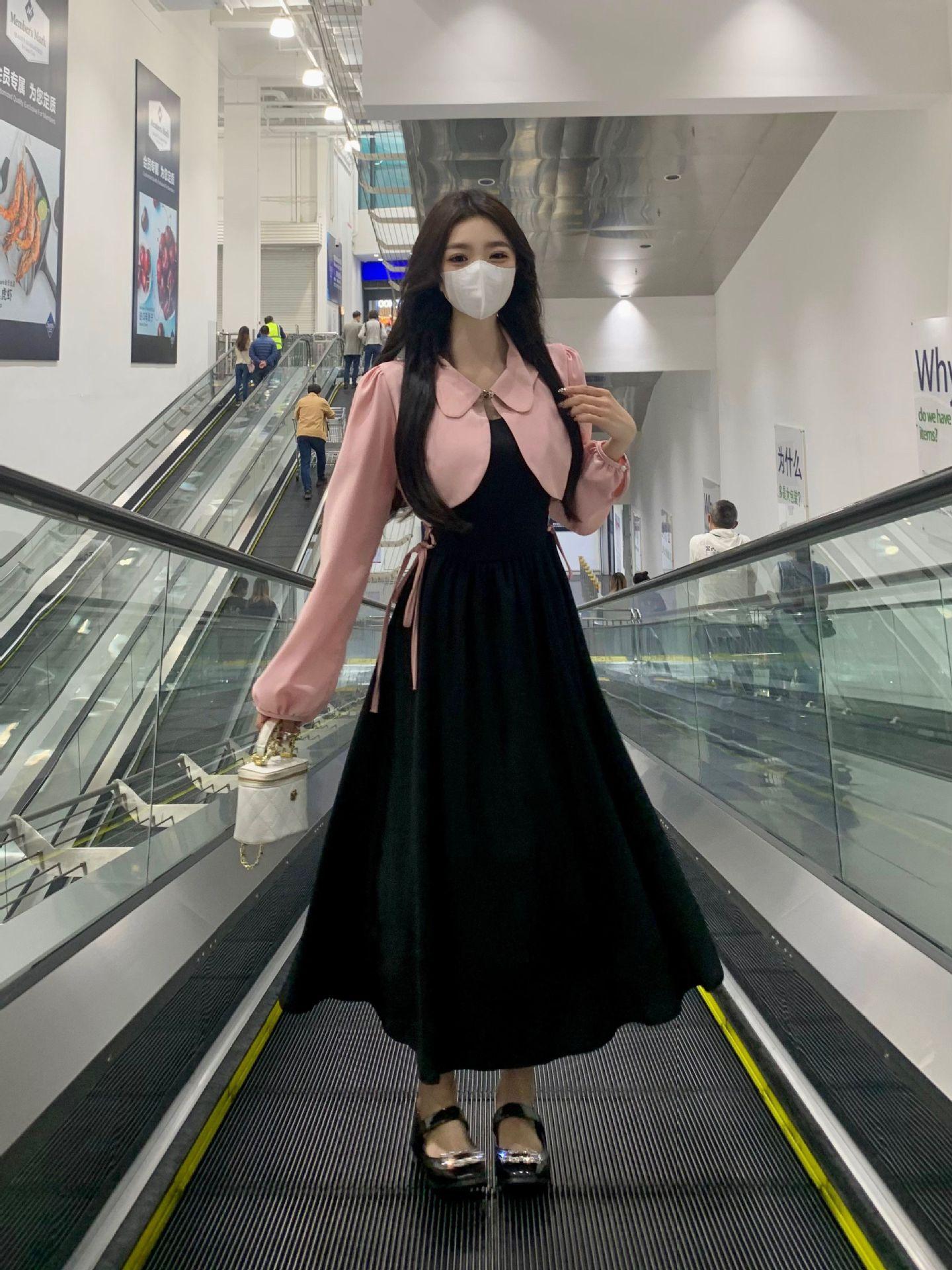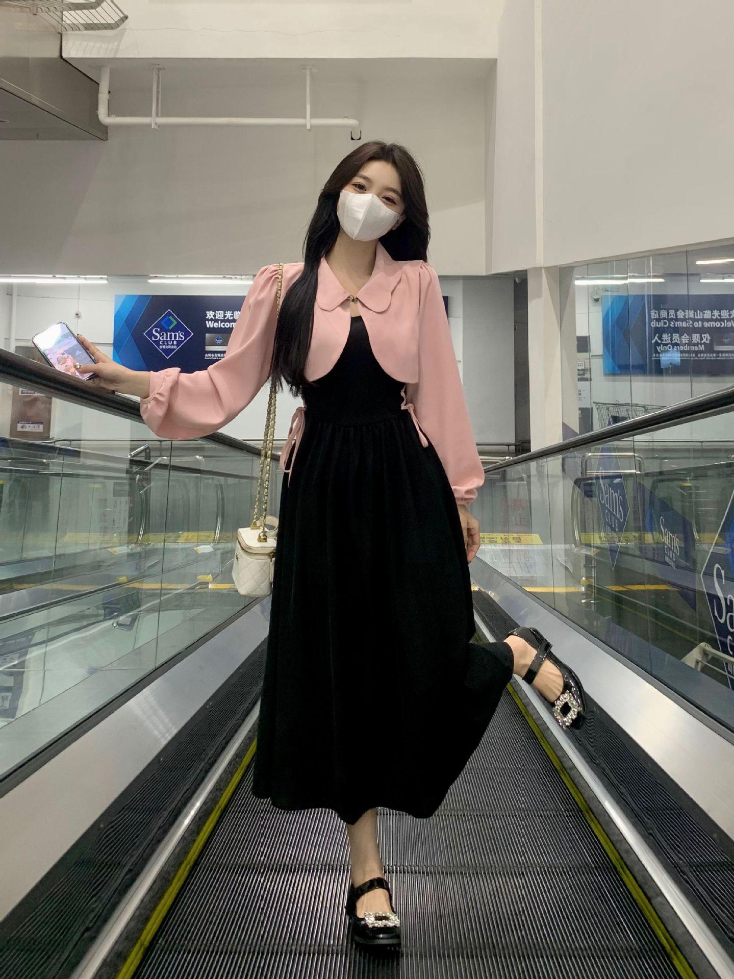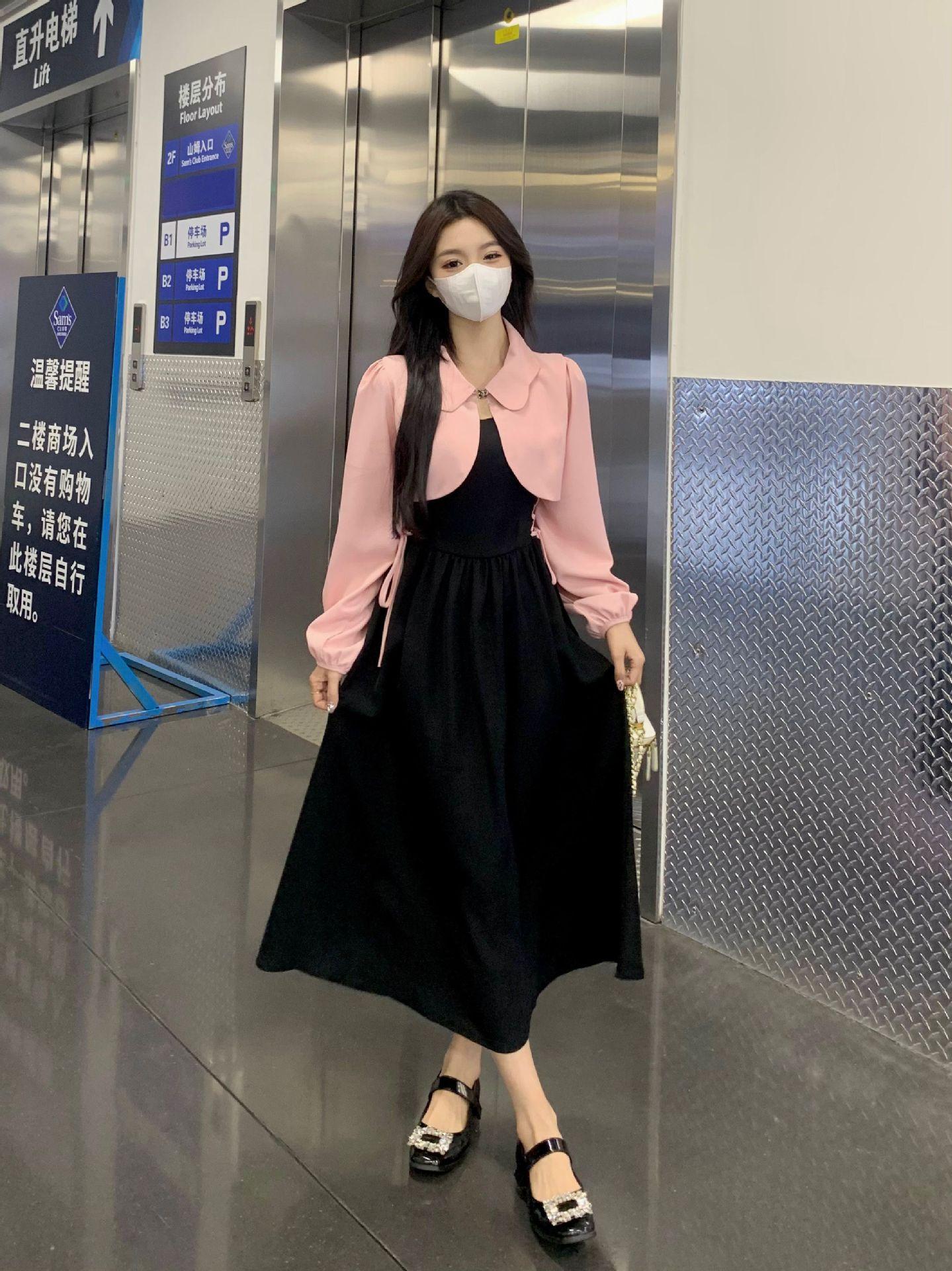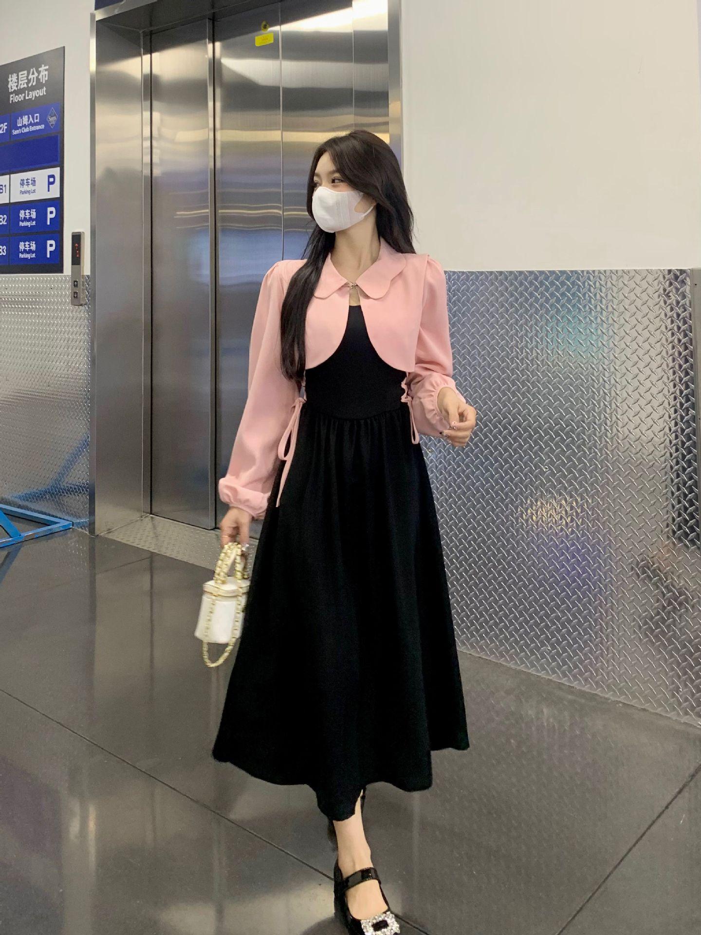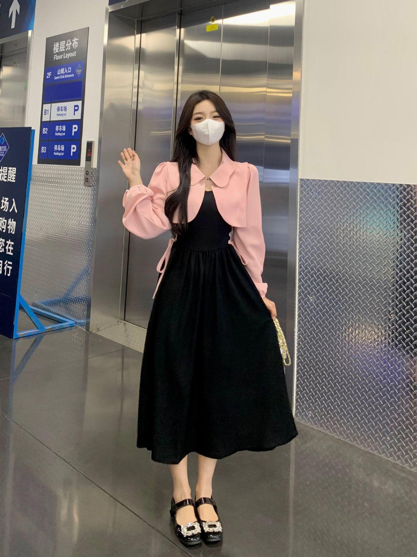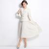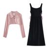 Conjunto de dos piezas formado por un abrigo y una chaqueta de manga larga, de estilo elegante y de alta gama, para mujer.