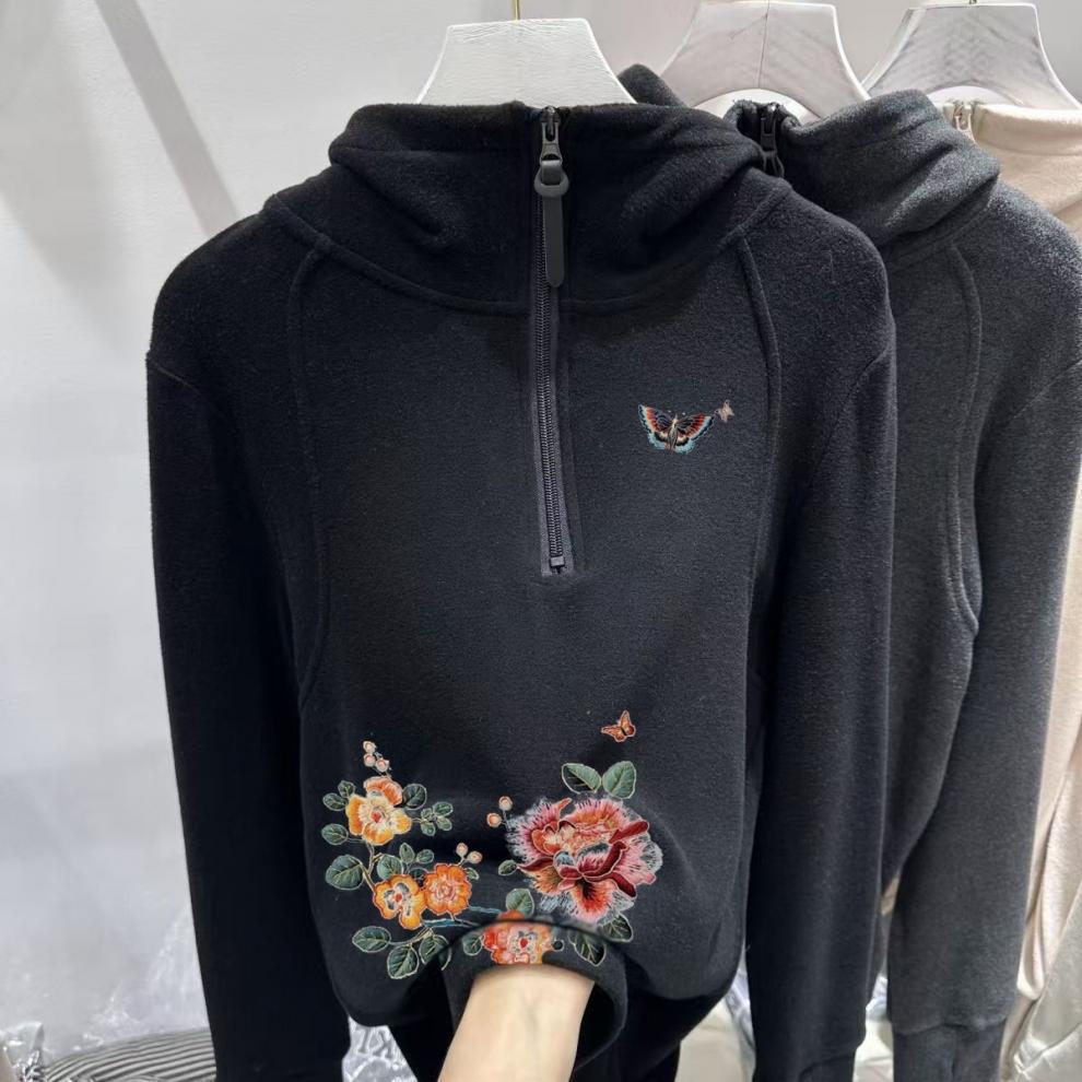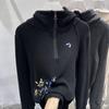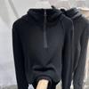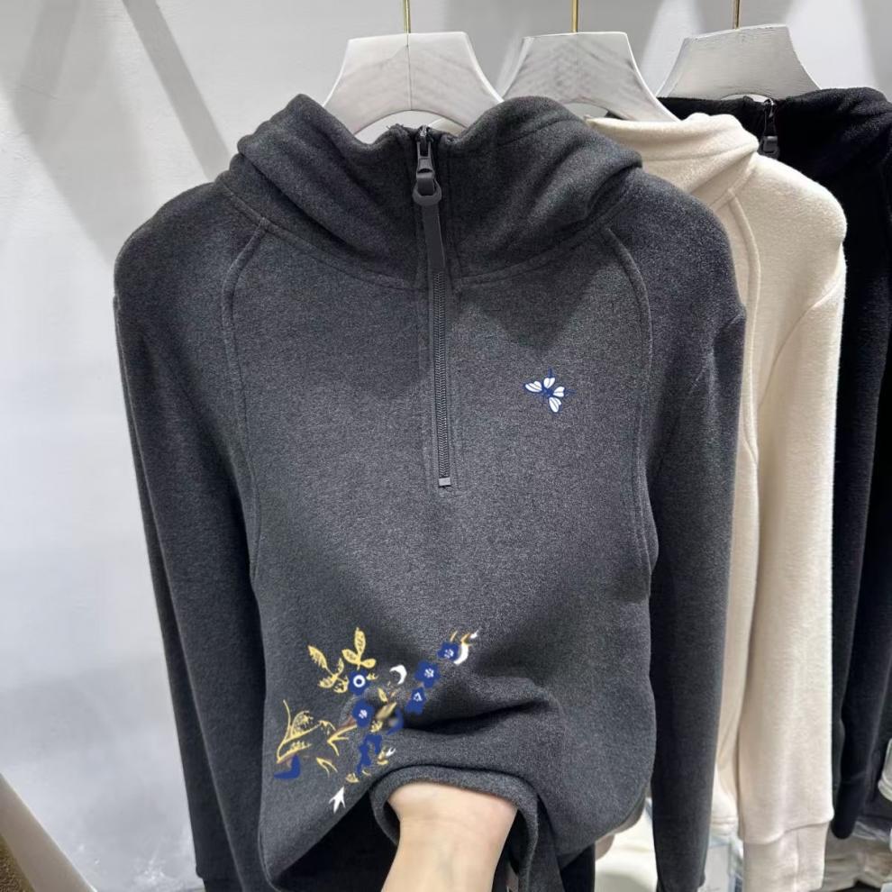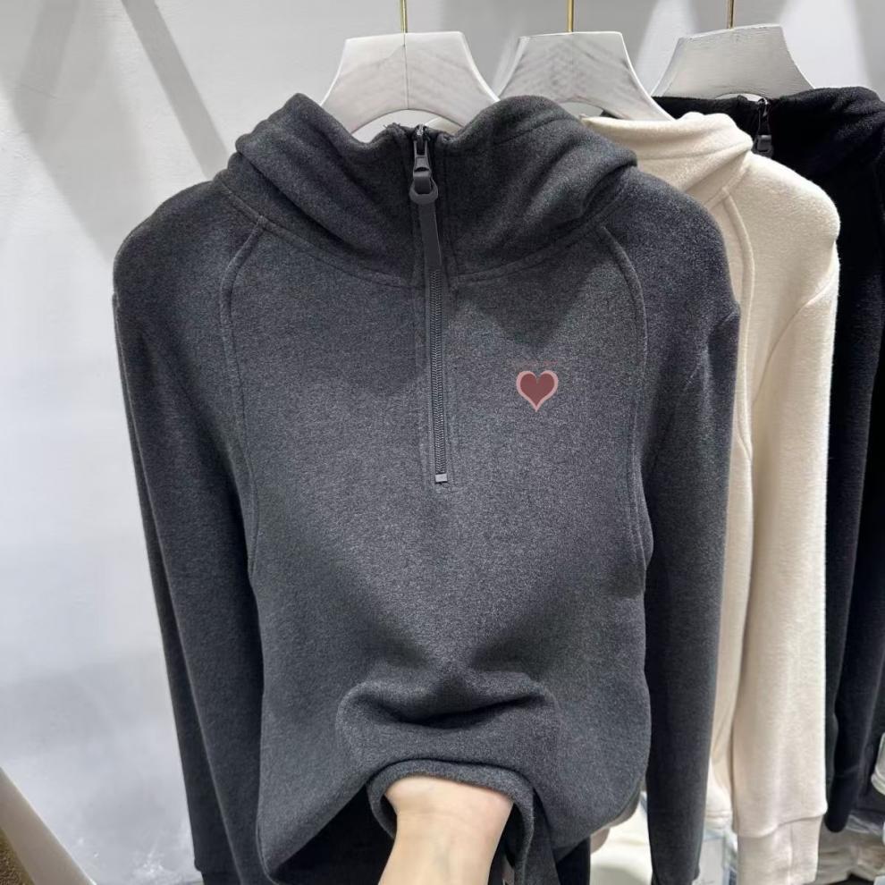 Otoño e Invierno Nuevo Sudadera Gris de Terciopelo Alemán con Media Cremallera para Mujer con Diseño Versátil y Sentido del Diseño Top Básico con Capucha