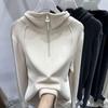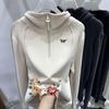 Nuevo suéter de terciopelo gris de media cremallera para otoño e invierno para mujer, diseño versátil, top entallado con capucha a la moda para usar como base