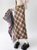 Falda de Lana a Cuadros Primavera y Otoño Retro Cintura Alta Holgada Look Adelgazante Largo Medio Falda Línea A Falda Larga Ajustada a las Caderas