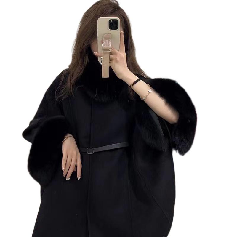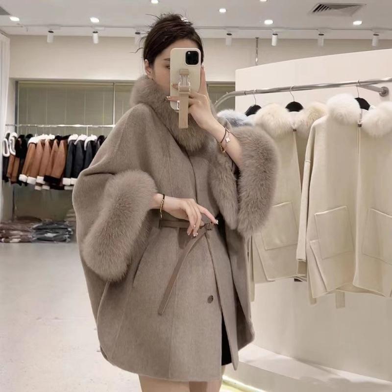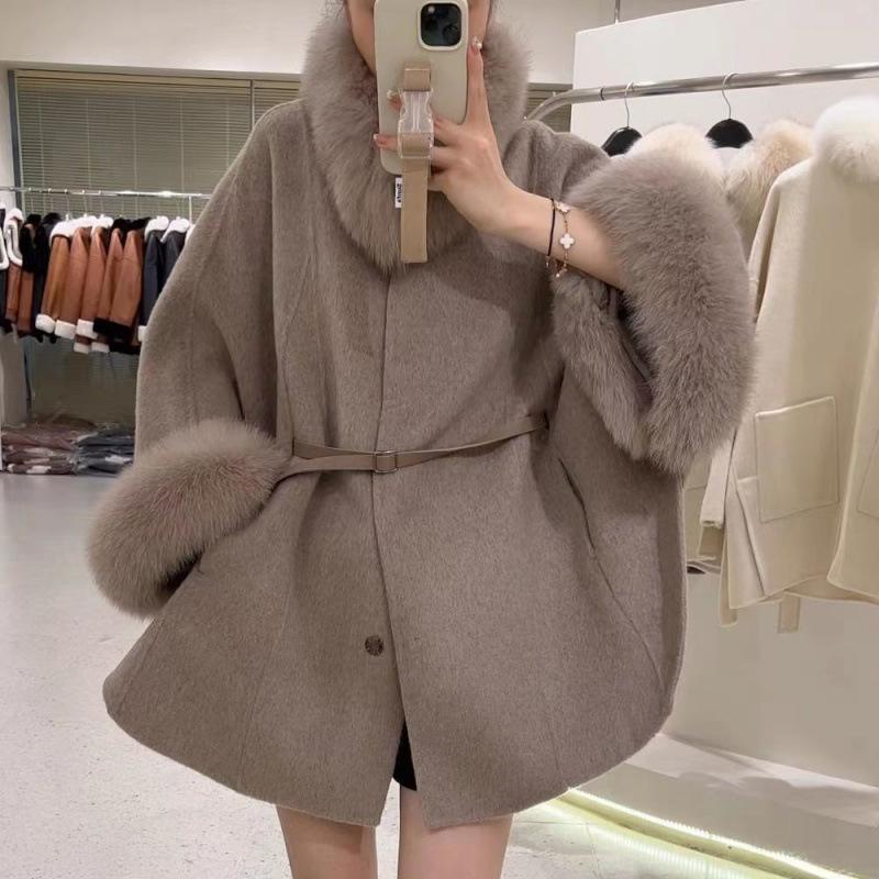 Maillard Año Nuevo Camisa Capa Abrigo Exterior Mujer 2024 Nuevo Estilo Coreano Otoño e Invierno Cuello de Piel Chal Abrigo Exterior de Moda Tendencia