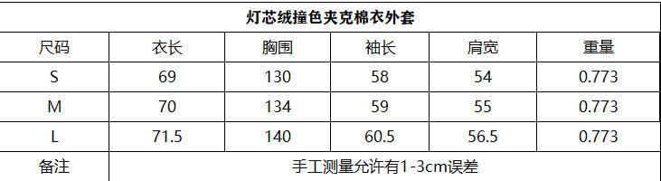 Comercio exterior transfronterizo de Amazon, ropa de mujer europea y americana, otoño e invierno 2024, nueva moda urbana, chaqueta acolchada de algodón con hombros en contraste y ancho de pana