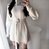 Suéter gris con lazo corto de punto para mujer, abrigo de primavera y otoño, cárdigan interior pequeño con base exterior.