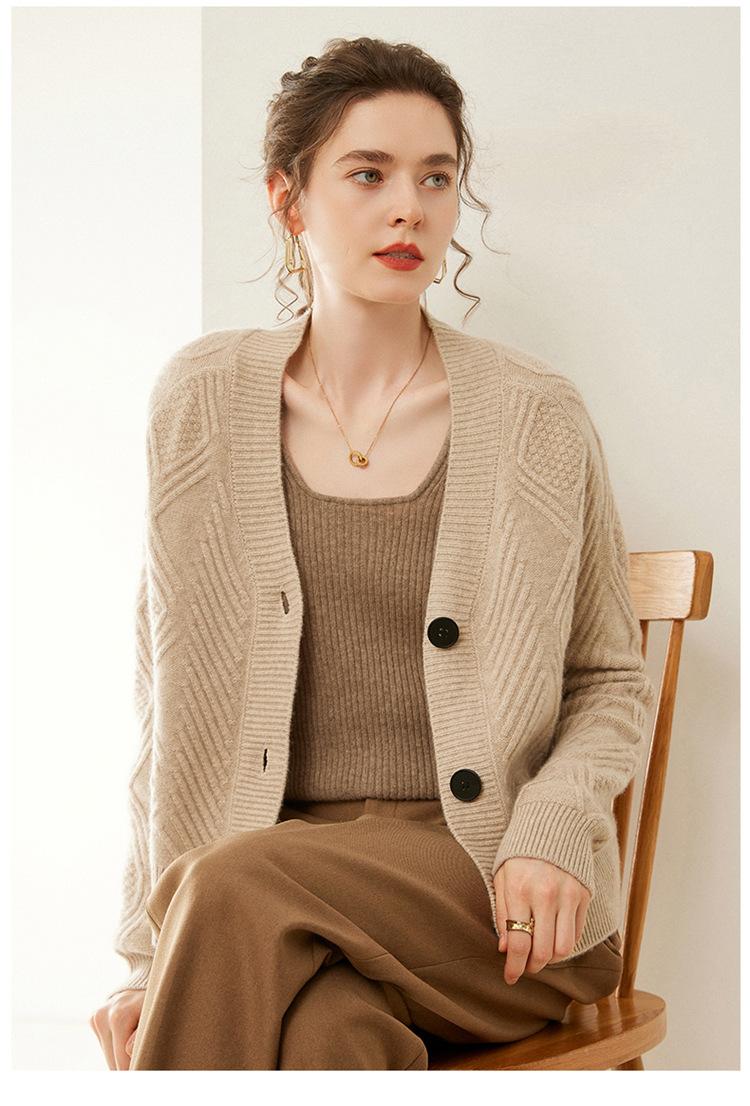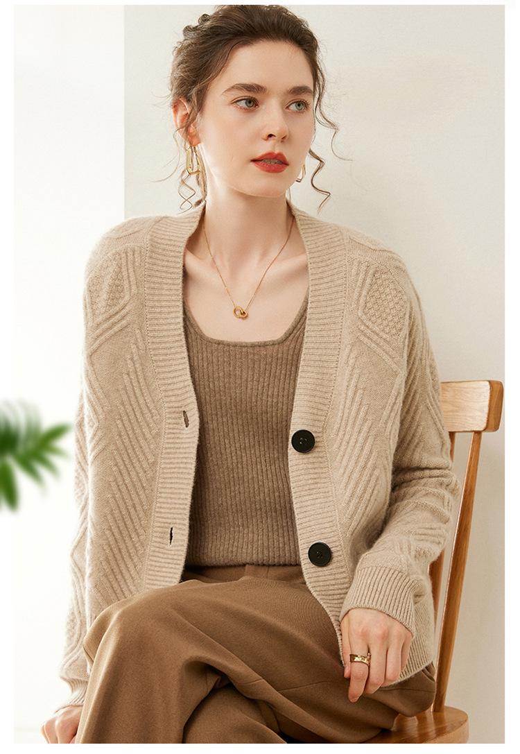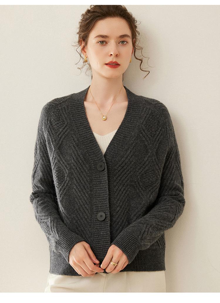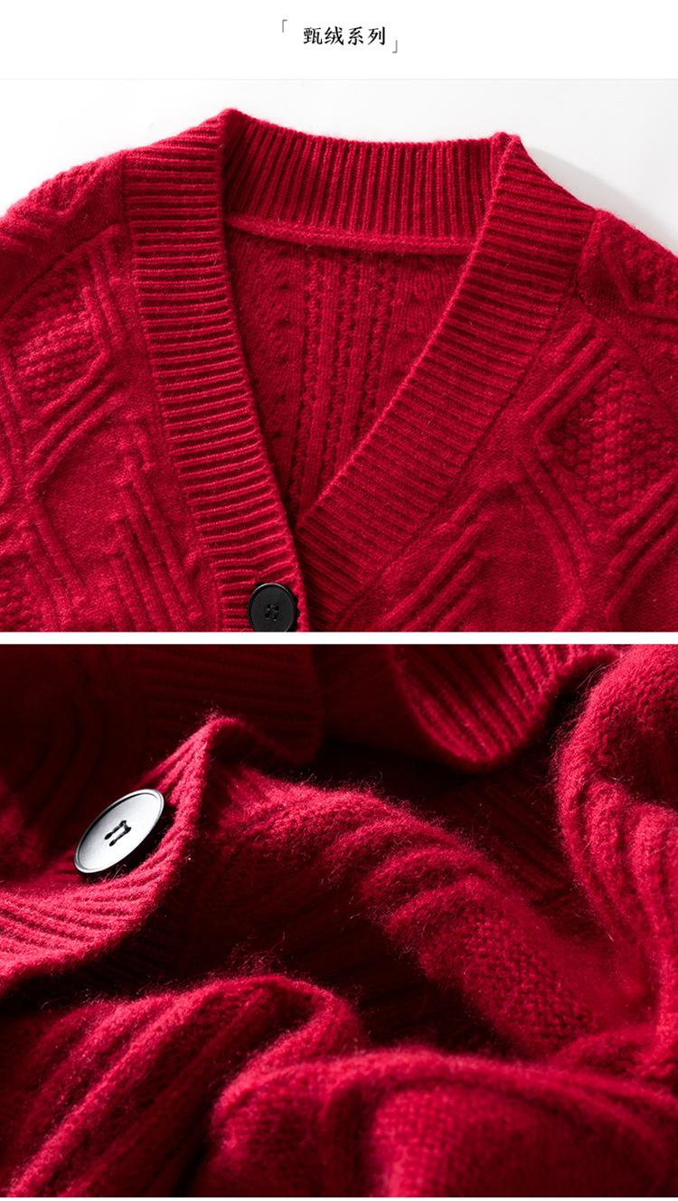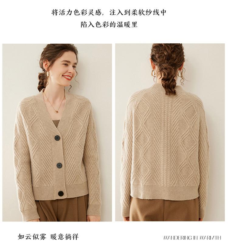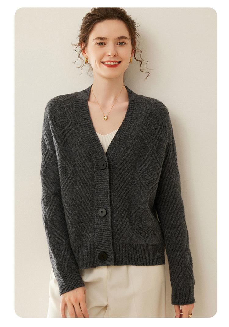 Cárdigan de punto con cuello en V de cachemira vintage, abrigo holgado con giro de diamante, suave y encerado, nuevo otoño e invierno de 2024