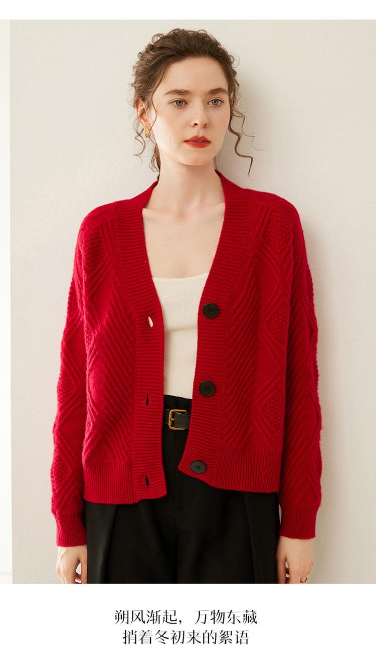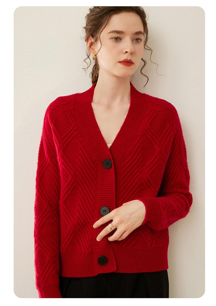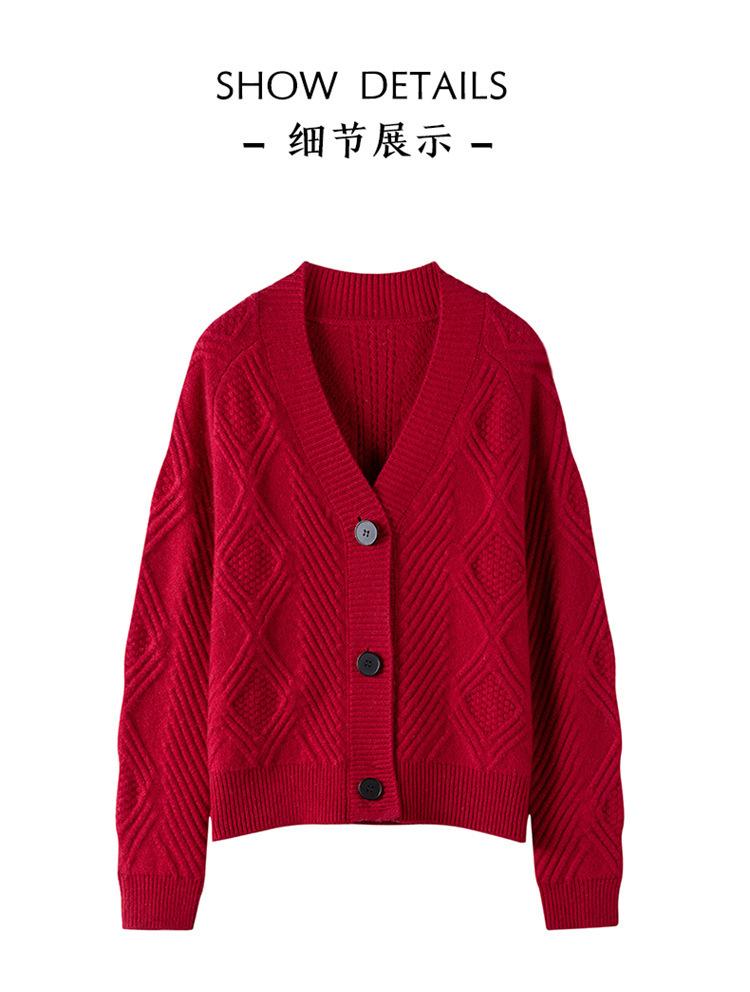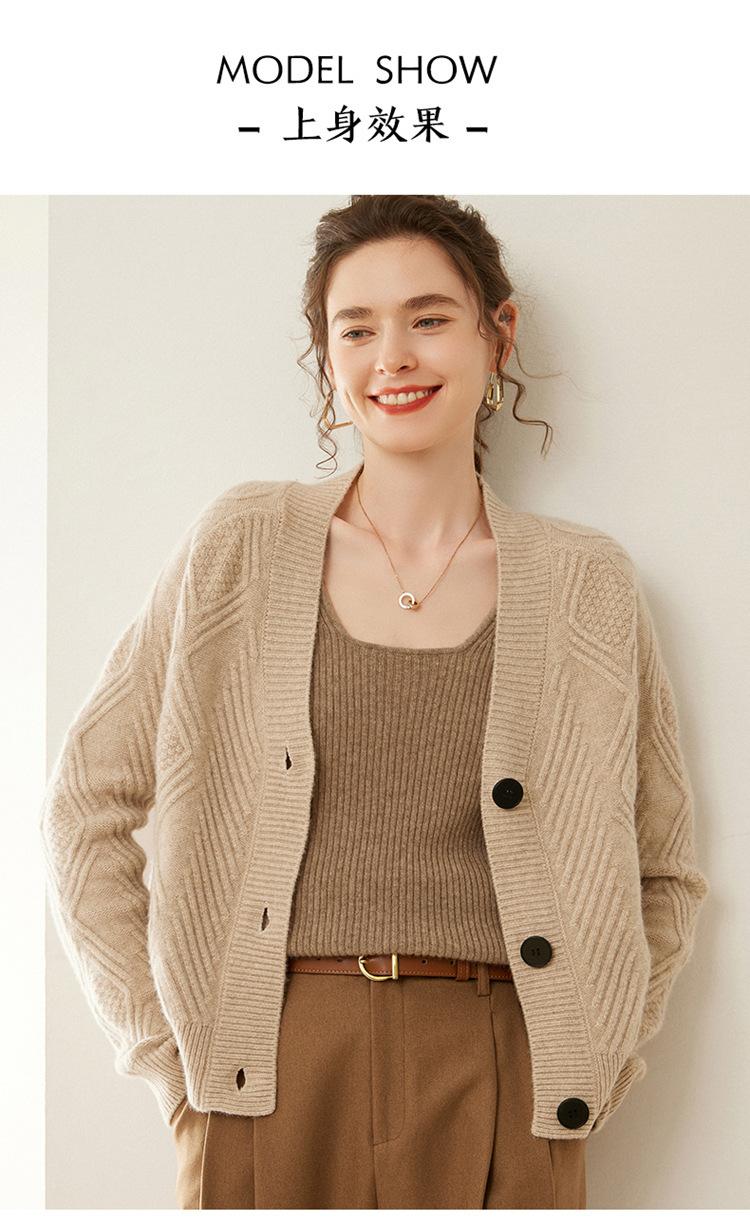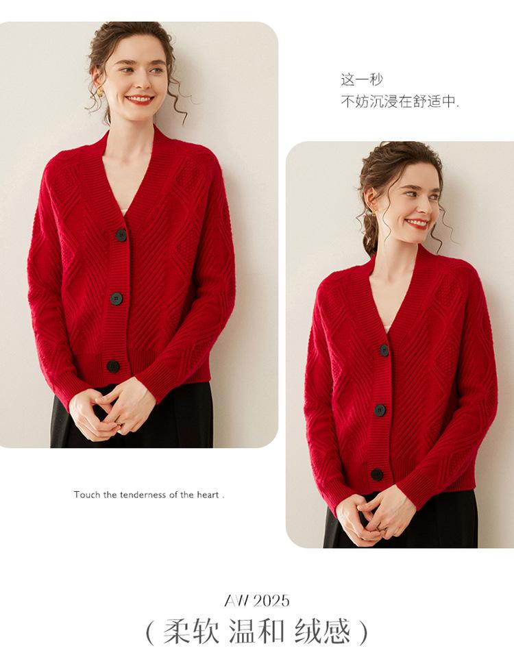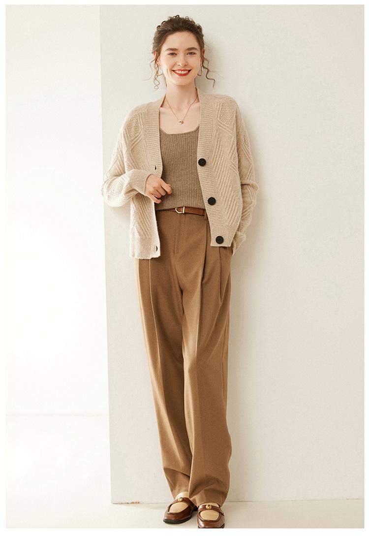 Cárdigan de punto con cuello en V de cachemira vintage, abrigo holgado con giro de diamante, suave y encerado, nuevo otoño e invierno de 2024