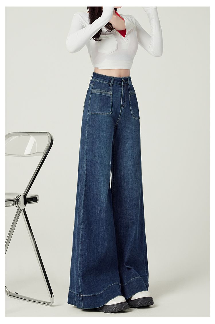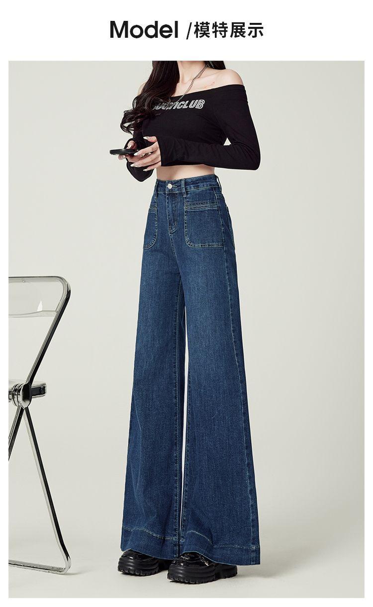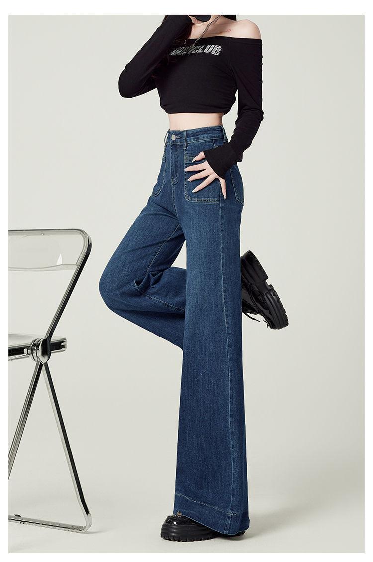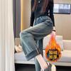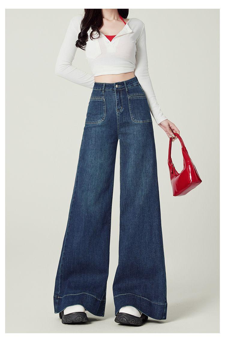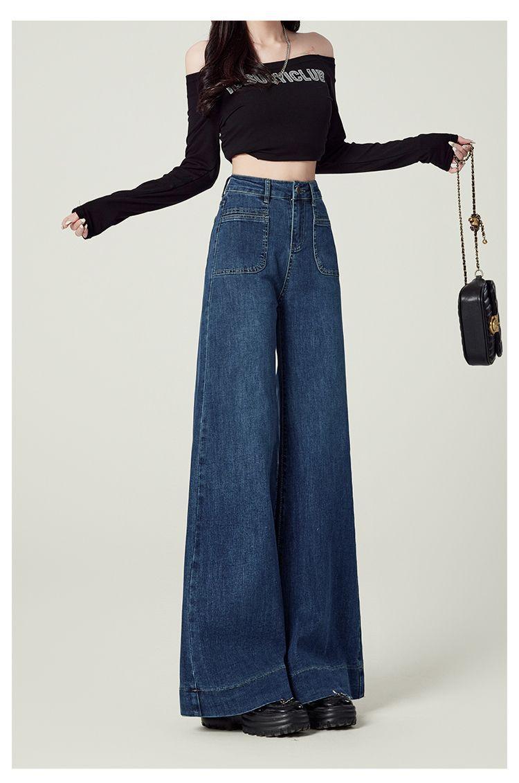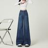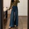 Vaqueros vintage de pierna ancha para mujer, otoño 2024, nuevos, cintura alta, adelgazantes, holgados, con pierna ancha y bajo asimétrico.