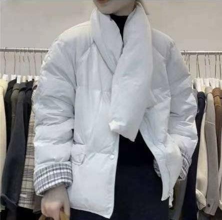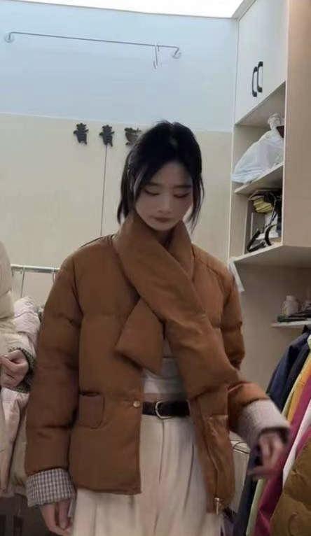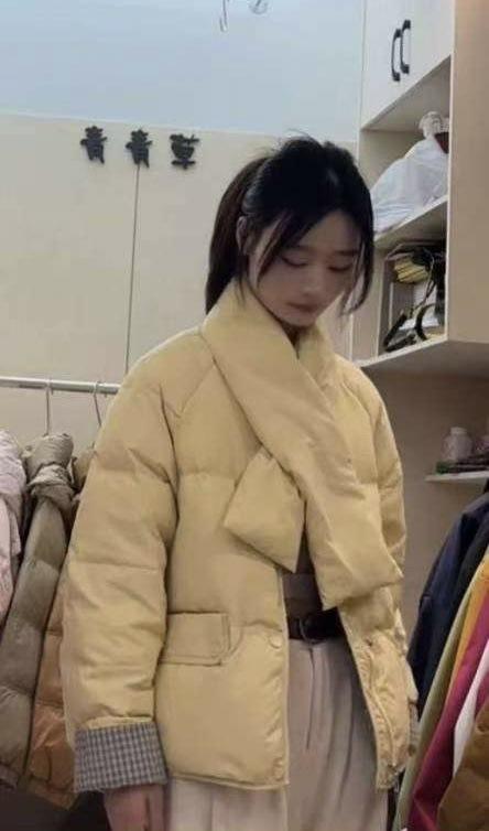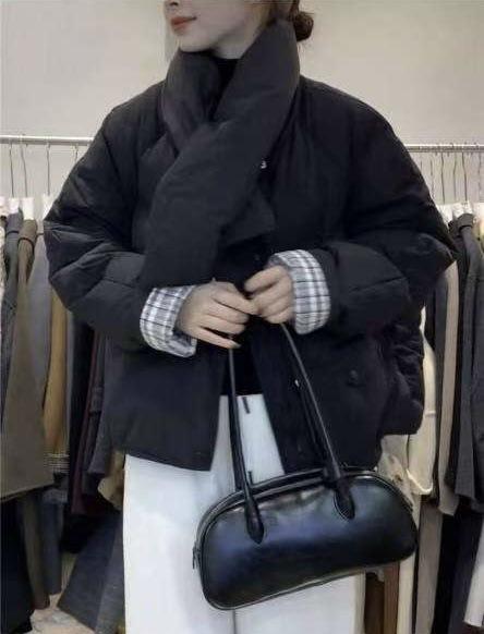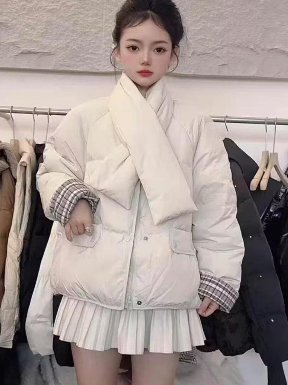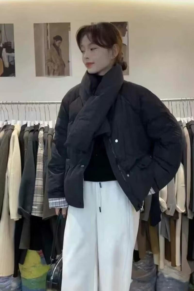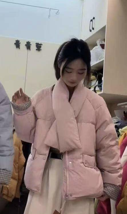 Abrigo corto acolchado de algodón con cuello alto y costuras estilo coreano para mujer, invierno 2024, holgado, grueso y cálido.