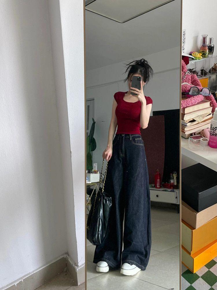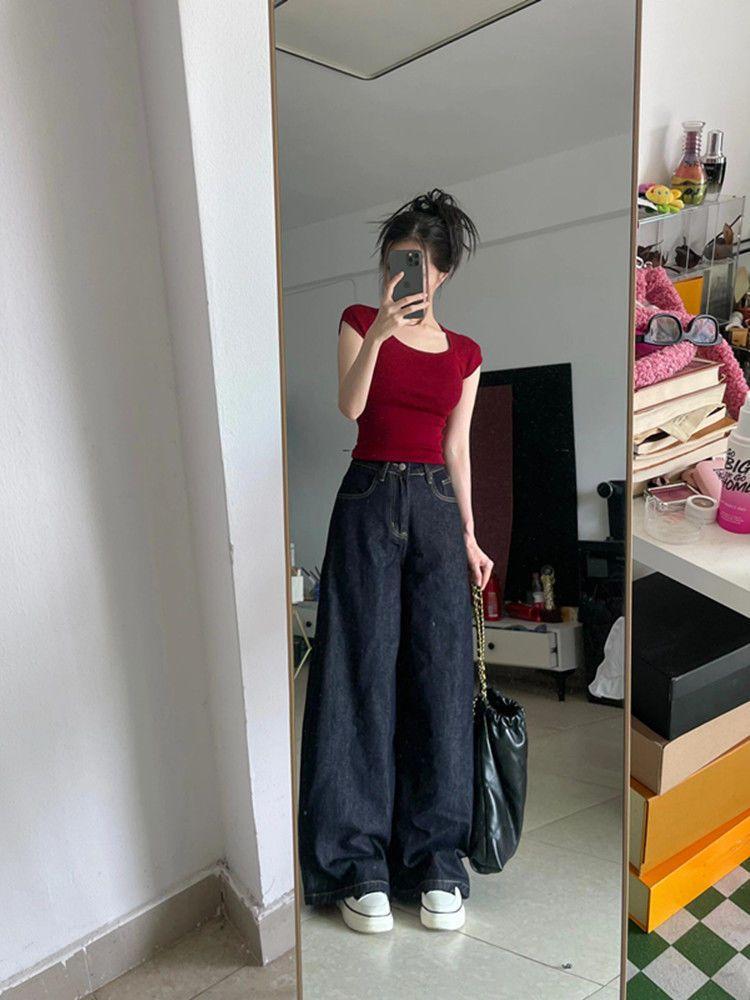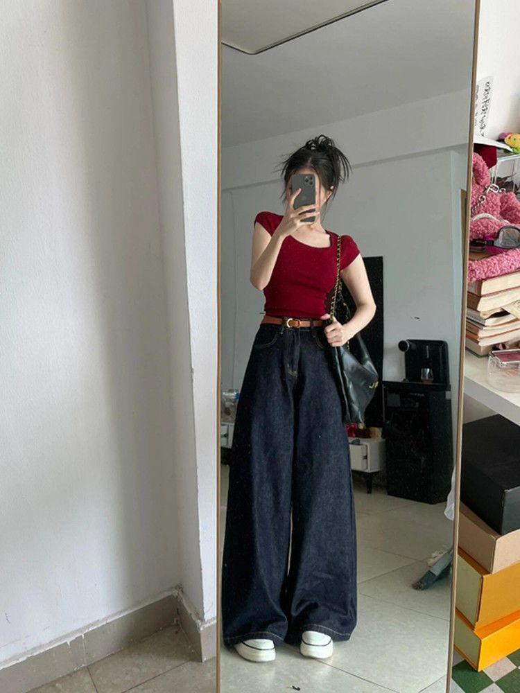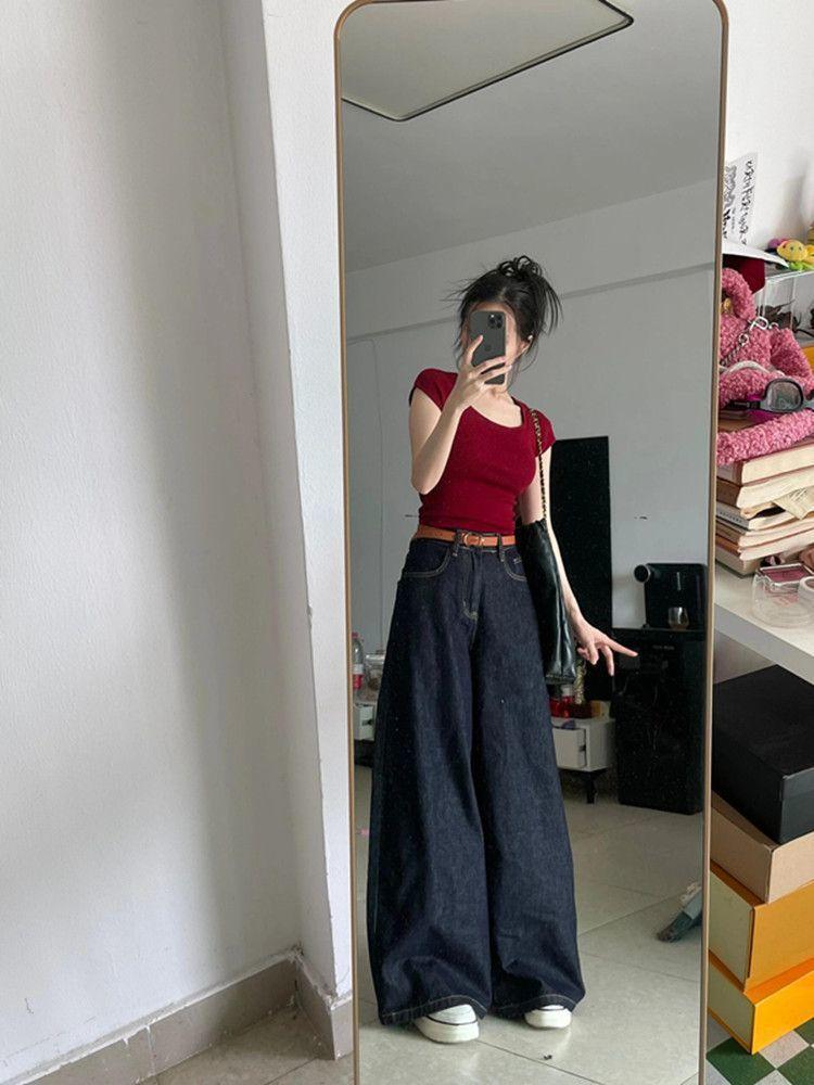 Pantalones vaqueros de pierna ancha Tannin para mujer, otoño 2024, nuevos, de cintura alta, holgados y rectos.
