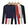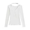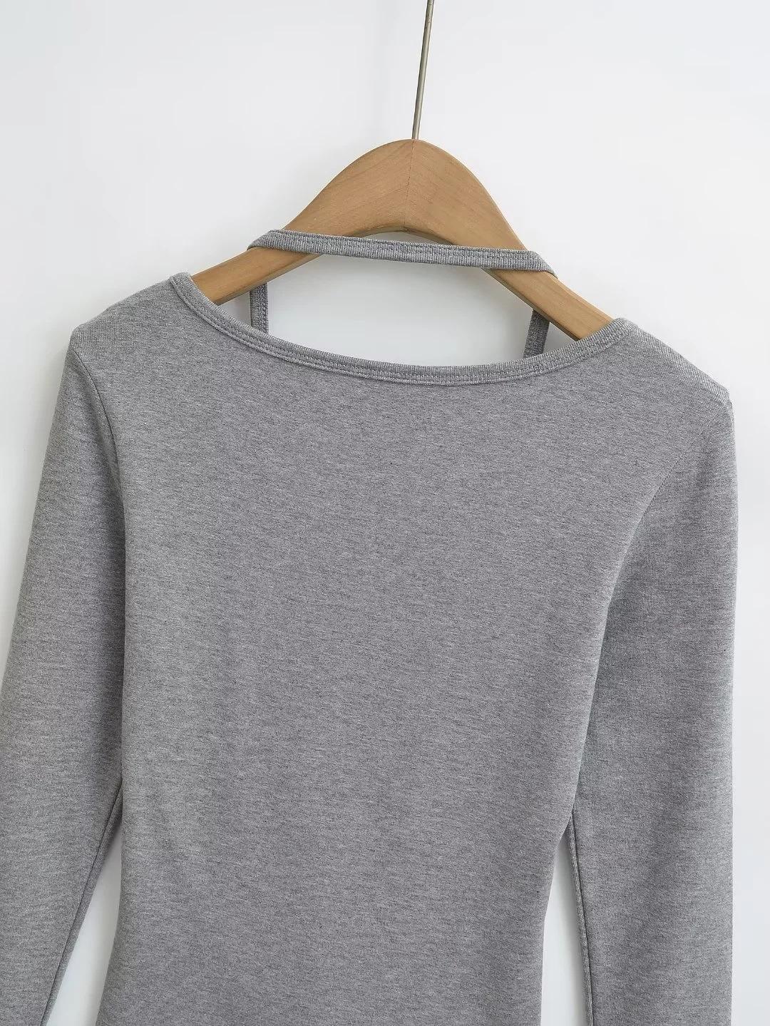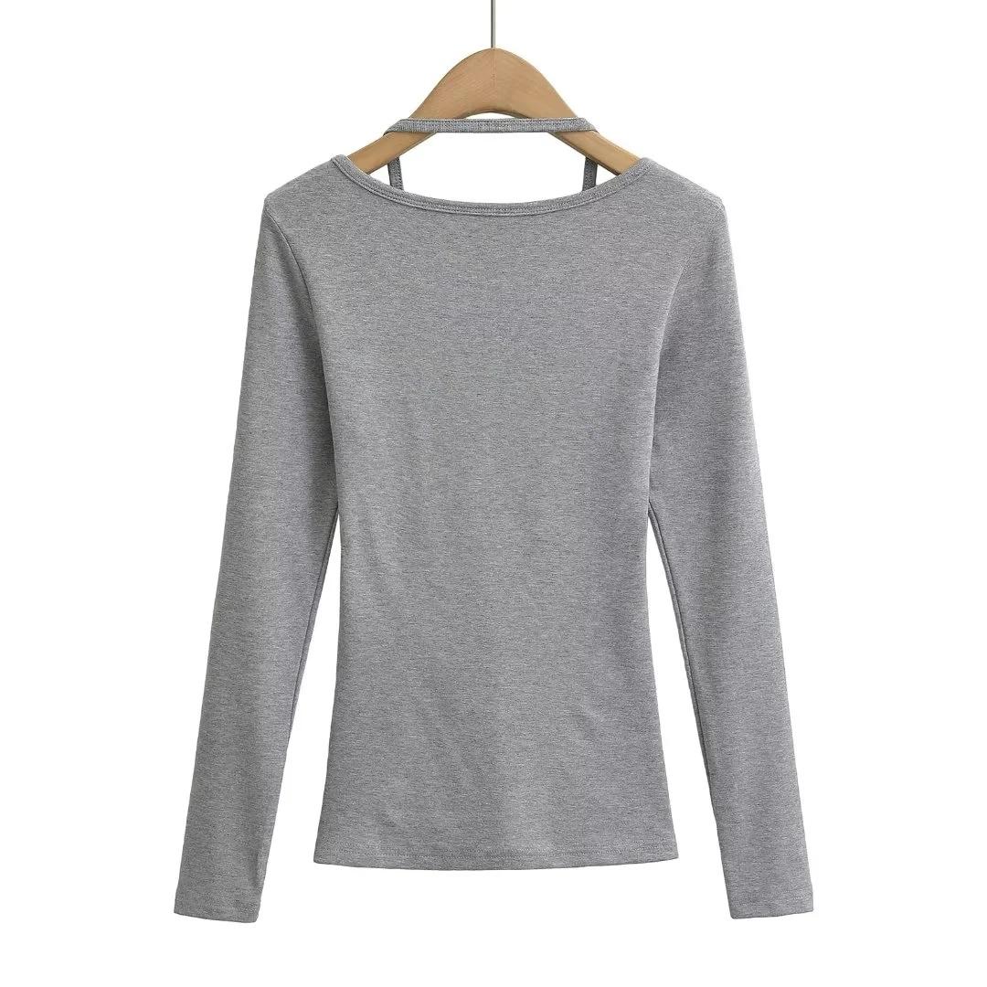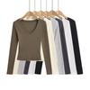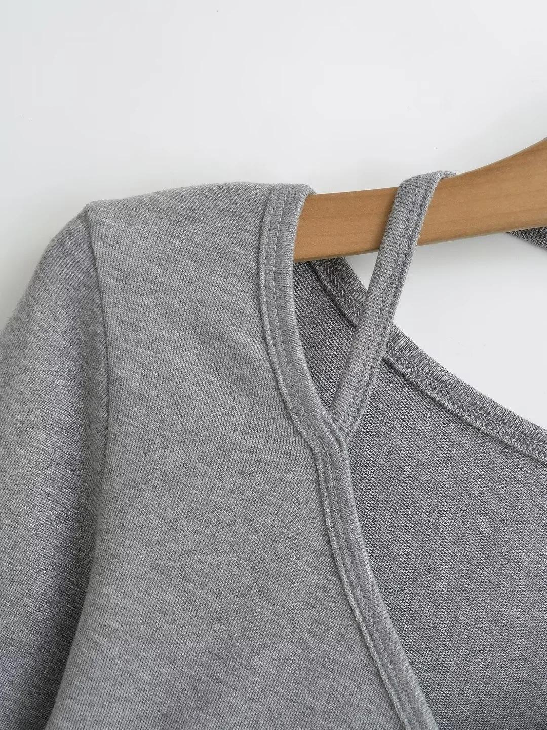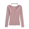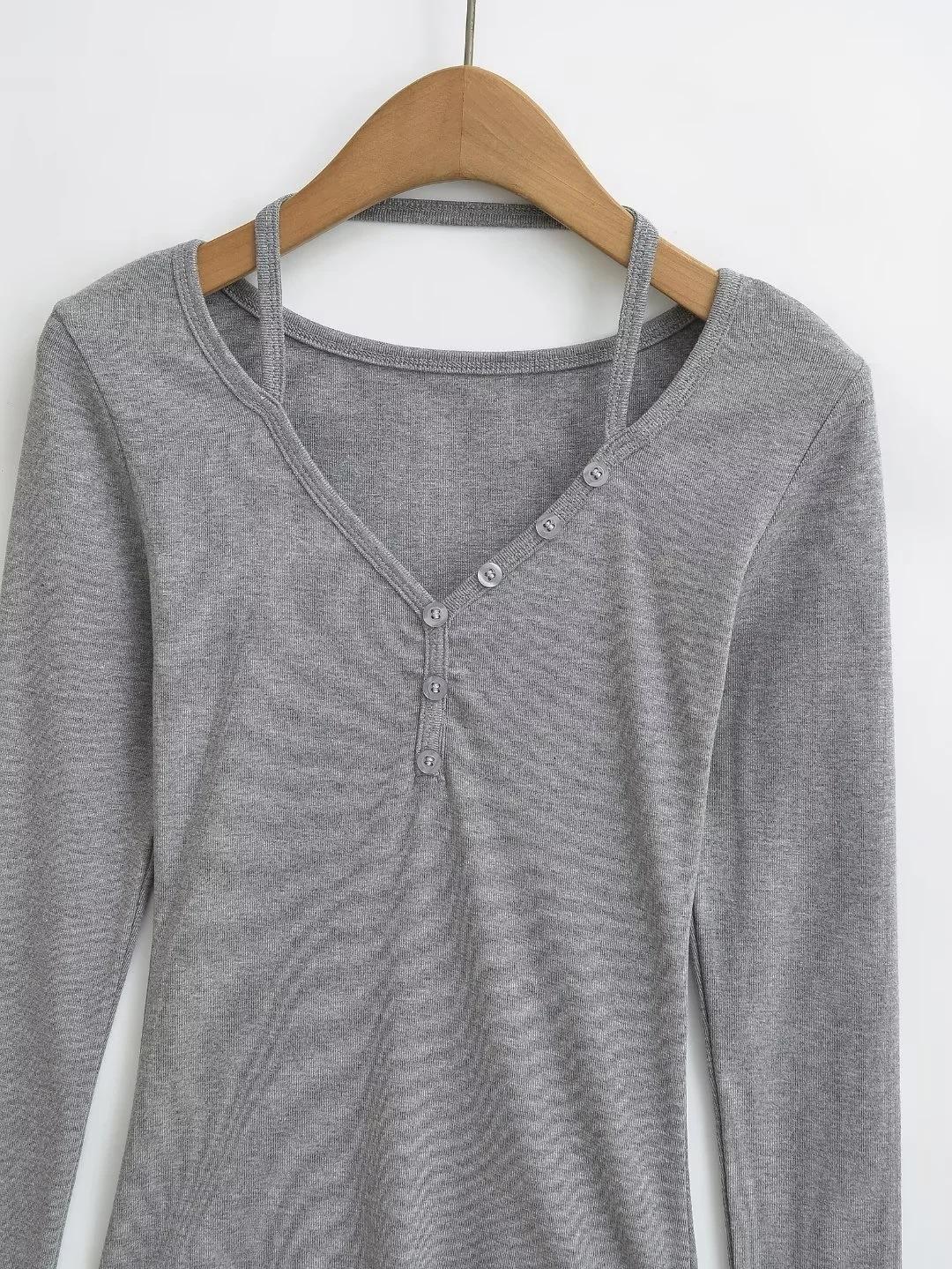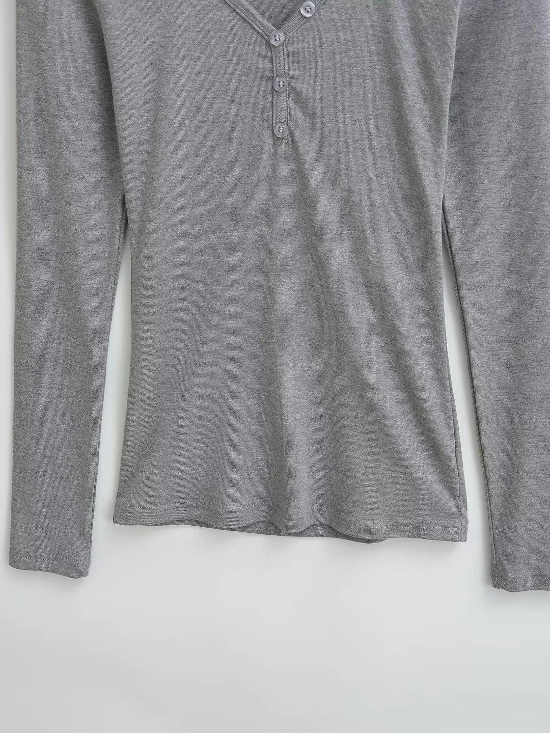 Camiseta sexy de manga larga con cuello en V y hebilla para mujer (2024)
