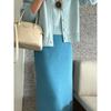 Falda de punto azul de corte A para mujer, otoño e invierno 2024, nueva falda de cintura alta, adelgazante, de longitud media, recta, de un solo paso.
