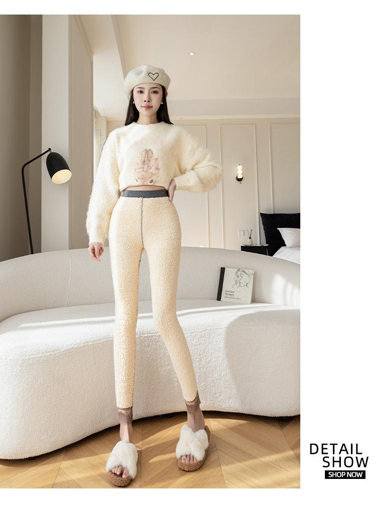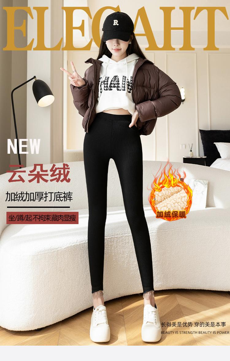 Leggings de terciopelo de nube extra gruesos para otoño e invierno para mujer, forrados con vellón, gruesos, de talla grande, ropa exterior, pantalones cálidos de cintura alta, pantalones de algodón que adelgazan el cuerpo.