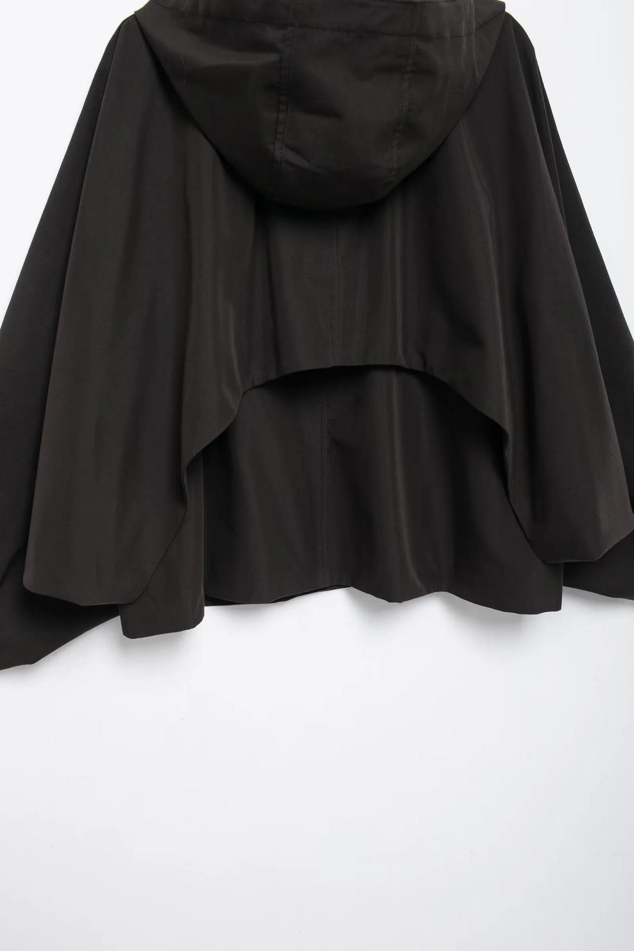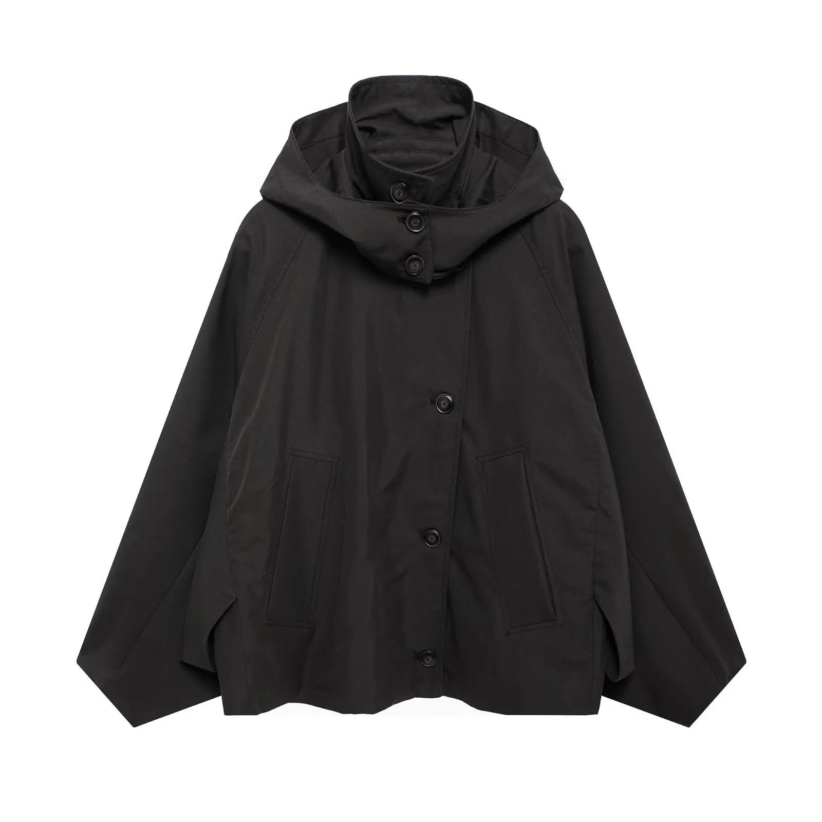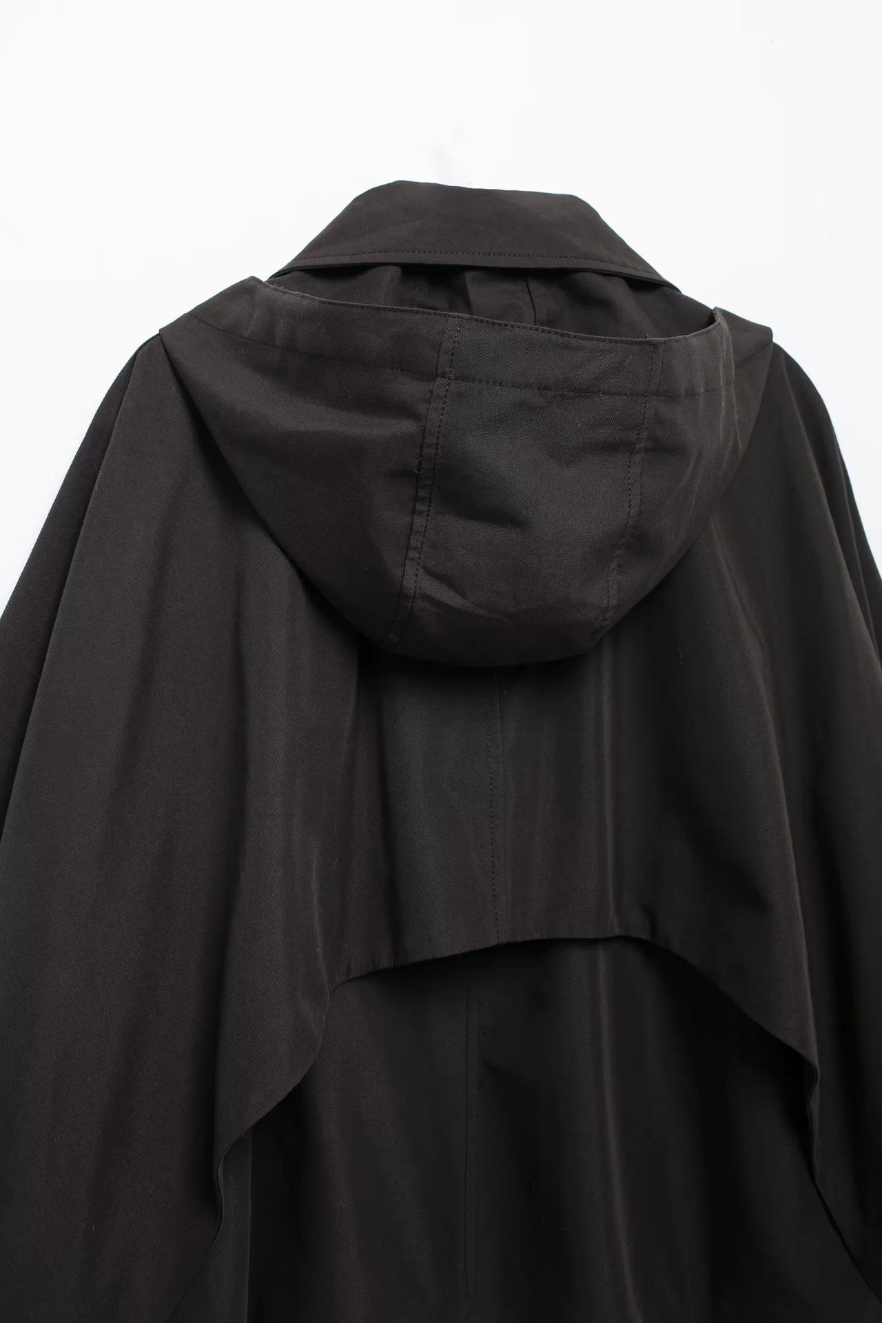 Abrigo de gabardina corto holgado con capucha y capa cruzada de estilo europeo y americano transfronterizo de otoño e invierno de 2024, ropa de mujer