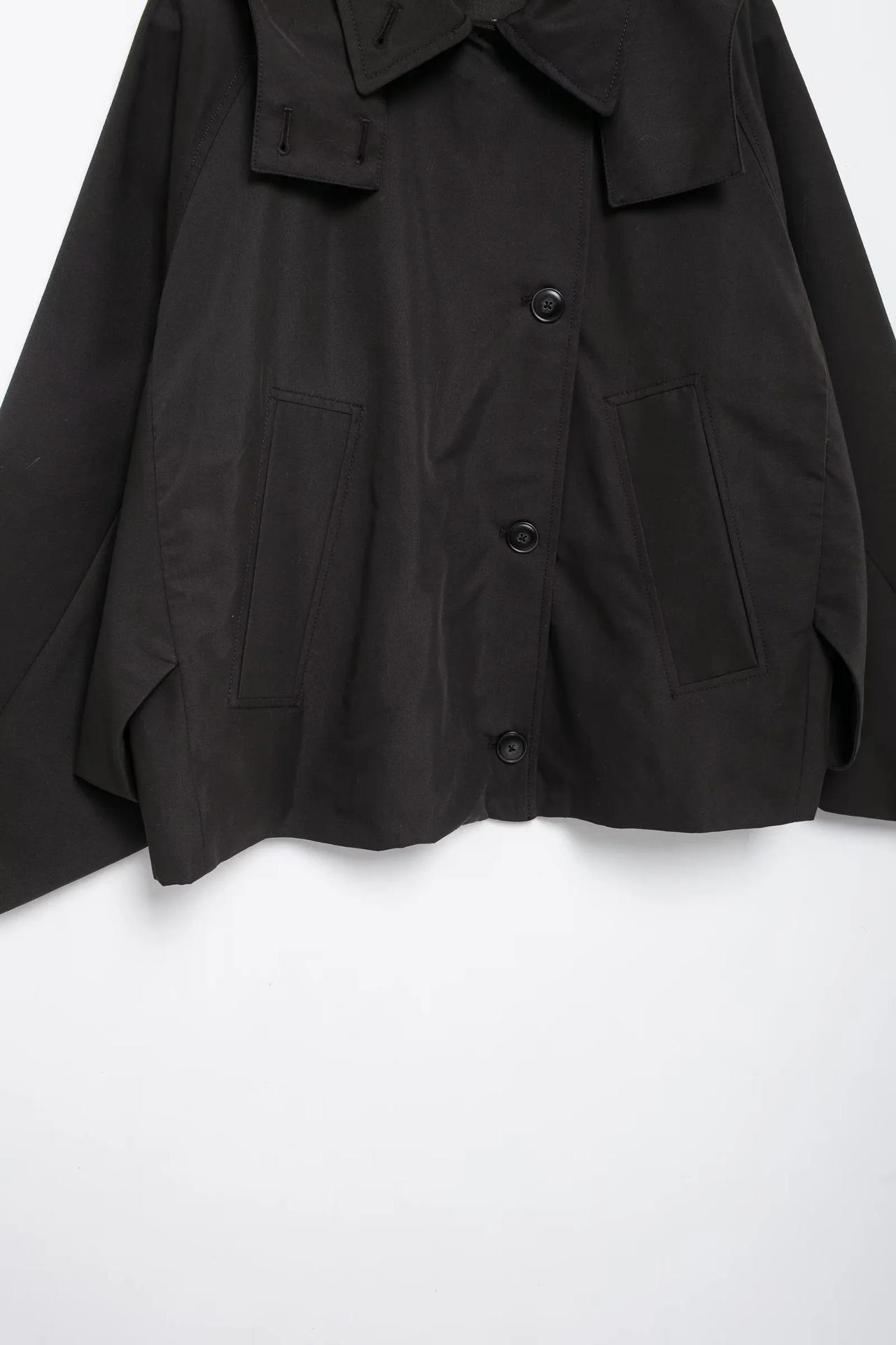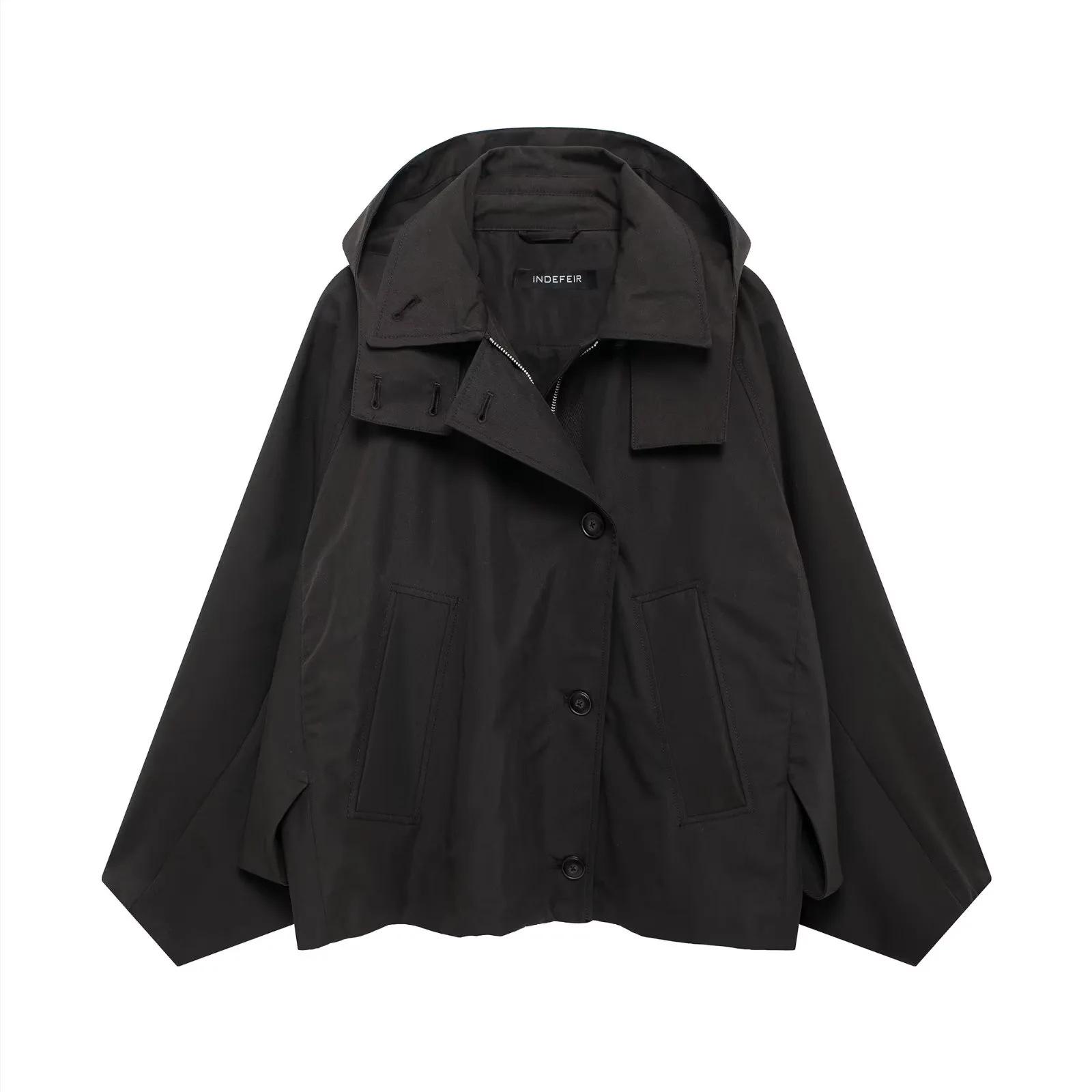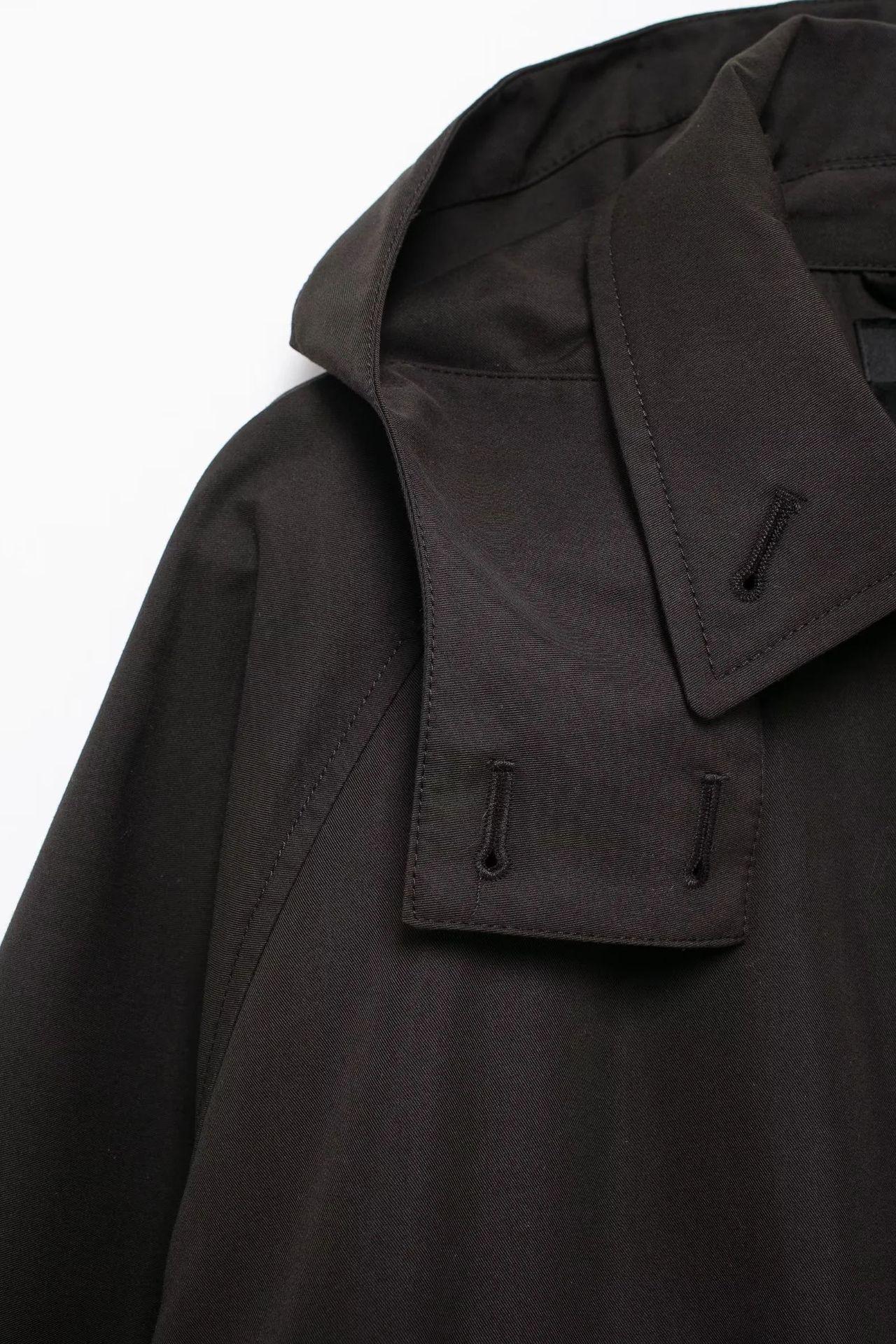Abrigo de gabardina corto holgado con capucha y capa cruzada de estilo europeo y americano transfronterizo de otoño e invierno de 2024, ropa de mujer