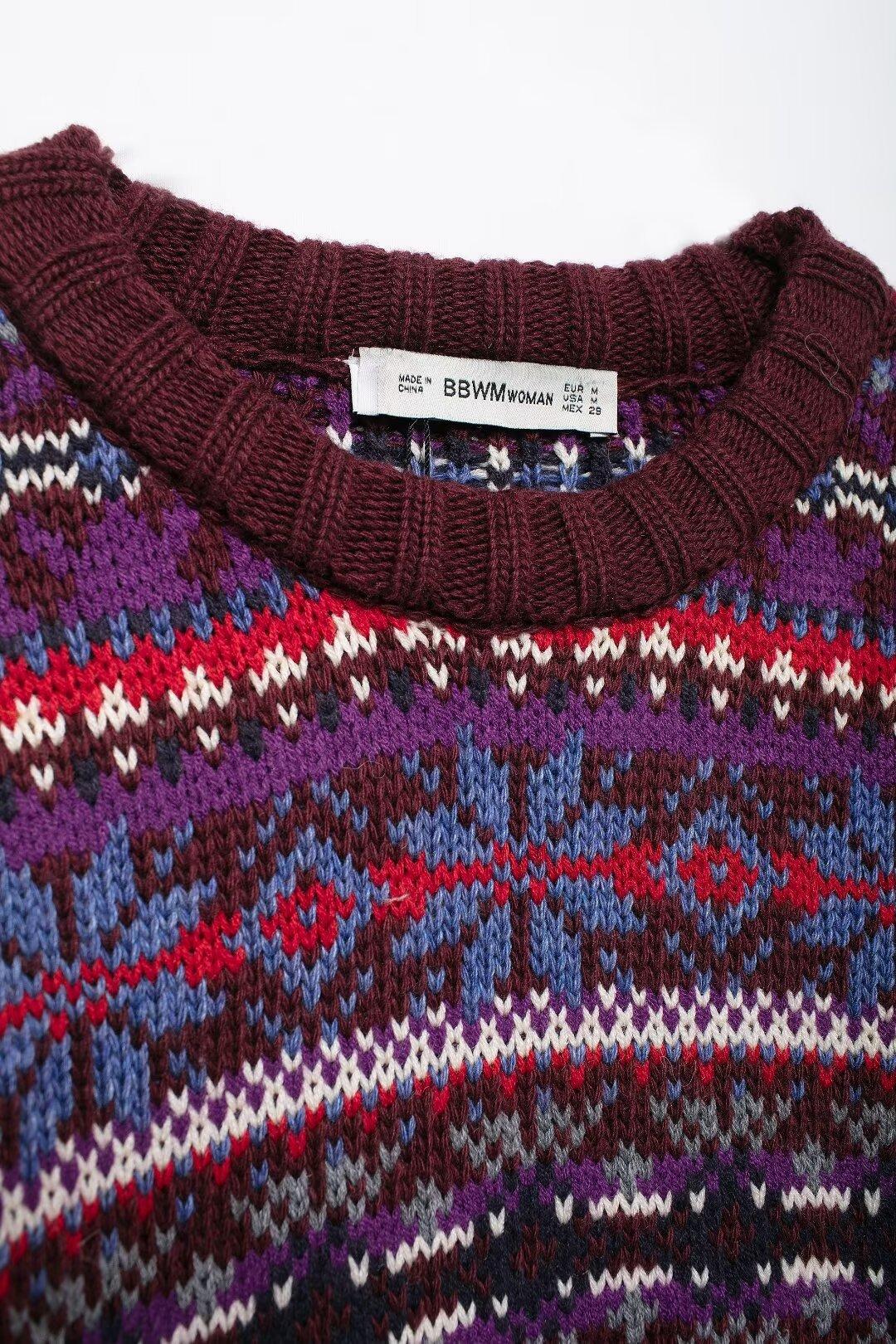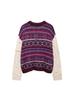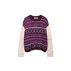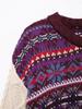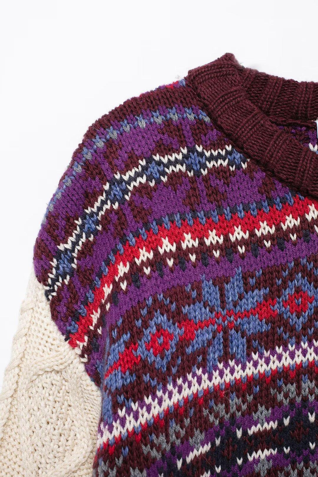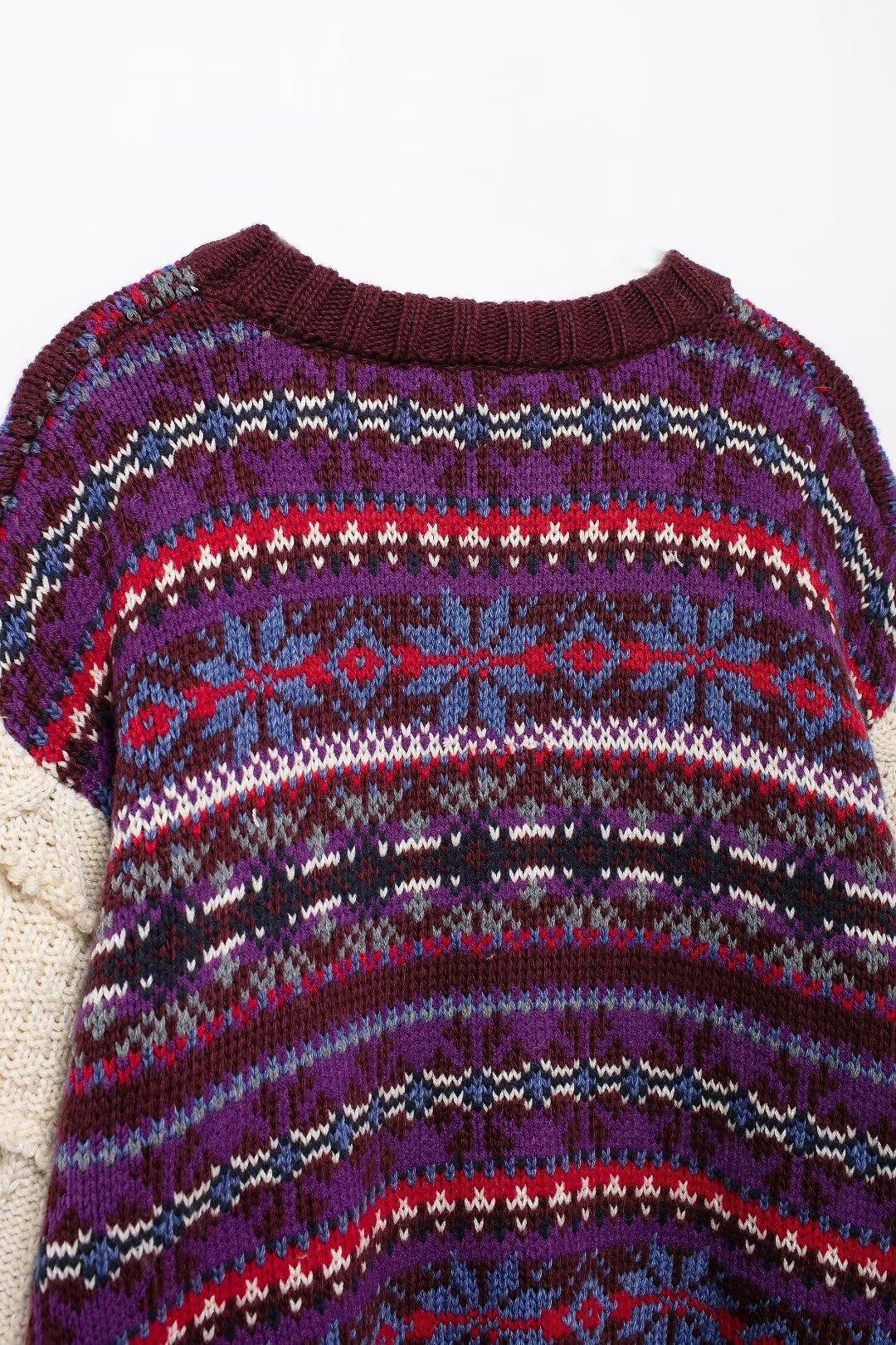 Suéter de punto jacquard de color contrastante con cuello redondo de nueva moda de otoño e invierno de 2024, suéter vintage para mujer europea y americana.
