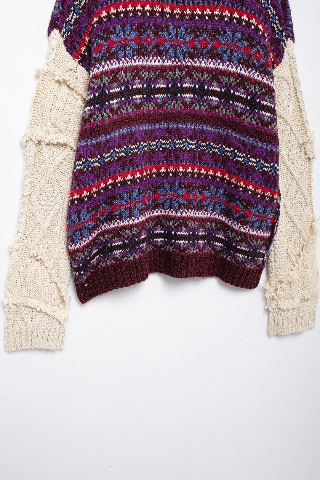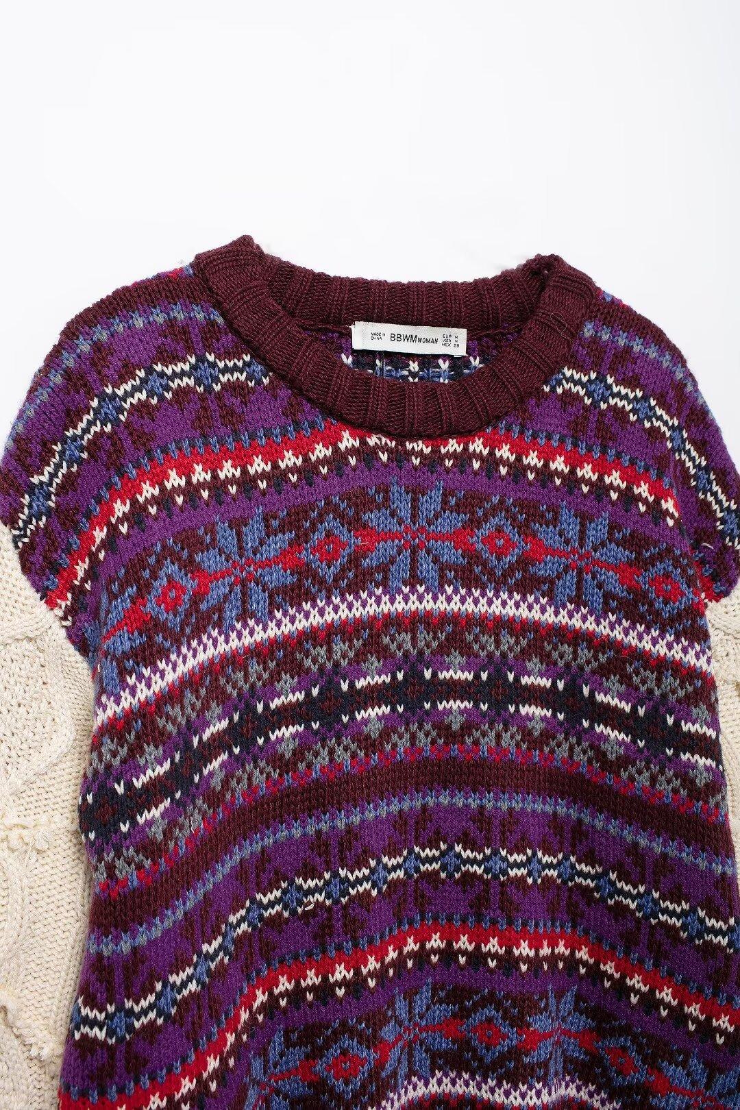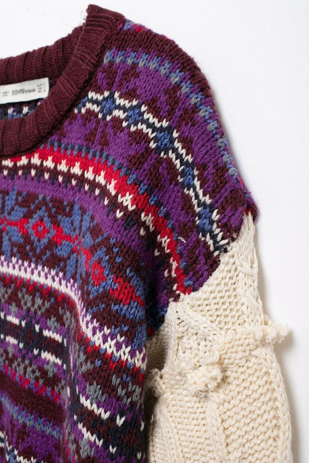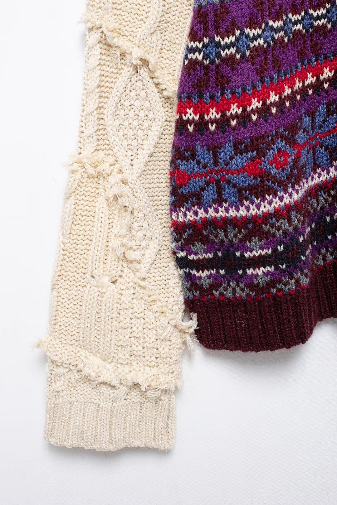 Suéter de punto jacquard de color contrastante con cuello redondo de nueva moda de otoño e invierno de 2024, suéter vintage para mujer europea y americana.