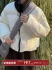 Luxi Estilo Coreano Tejido de Punto Empalmado Cuello Medio Alto Chaqueta Corta de Plumón para Mujer Invierno Nuevo Plumón de Pato Blanco Chaqueta Gruesa Y73