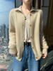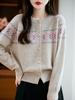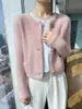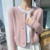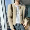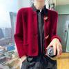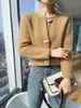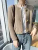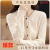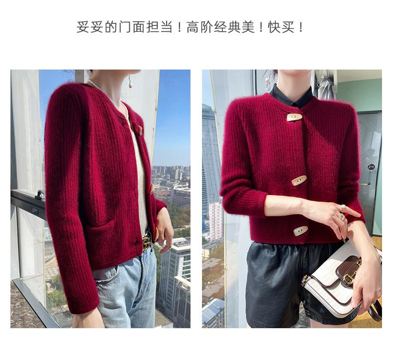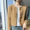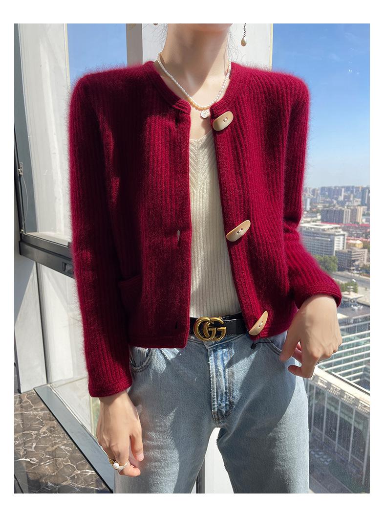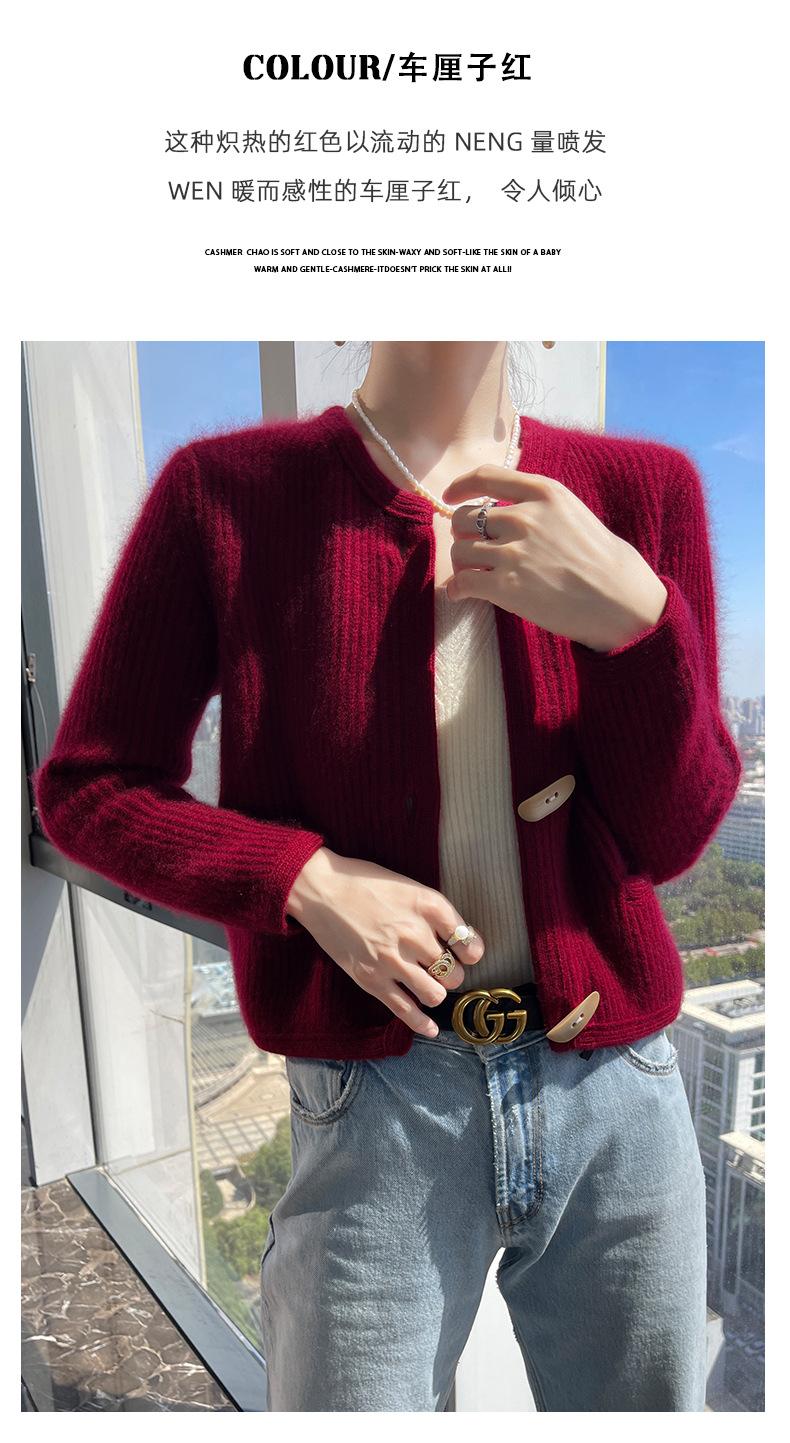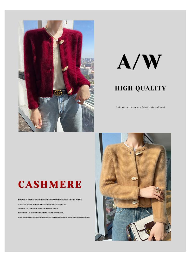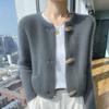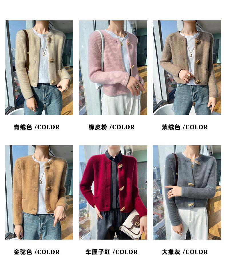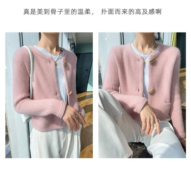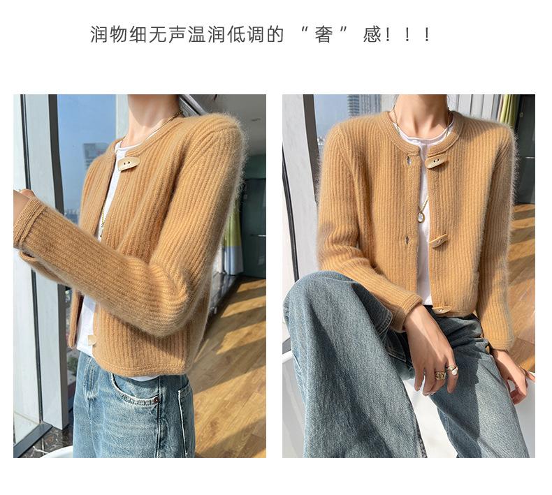 Cárdigan de Cachemira de Cuello Redondo Nuevo 2024 para Mujer Otoño e Invierno Suéter de Punto Grueso con Cuernos y Bolsillo Chaqueta de Lana