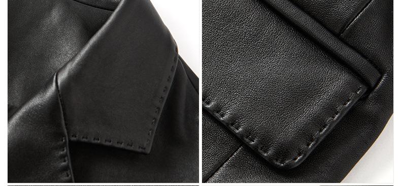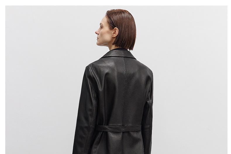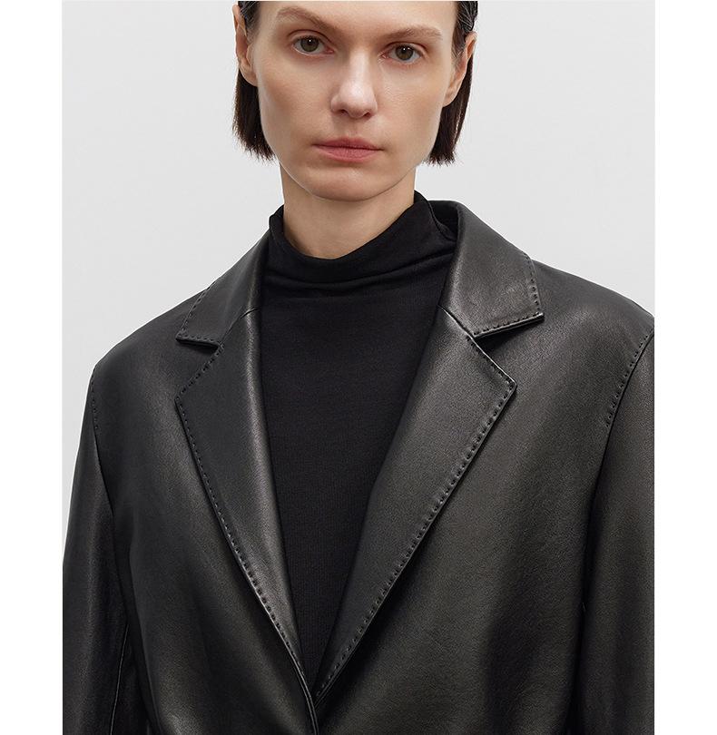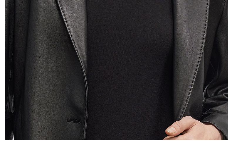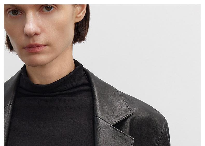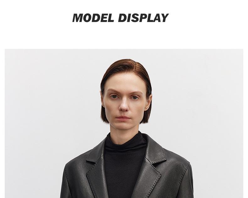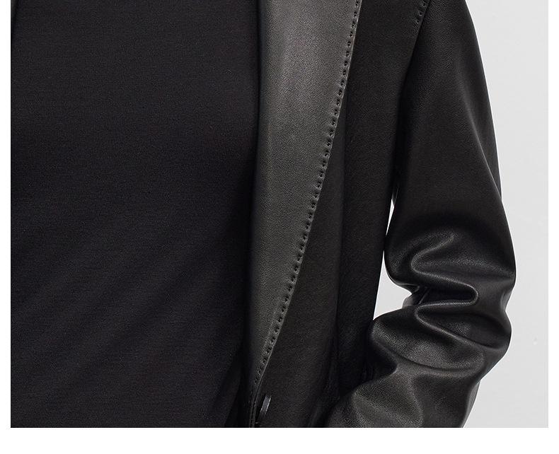 Chaqueta de Piel Genuina de Cabra de Alta Gama para Mujer Primavera Nueva Chaqueta Retro de Largo Medio Chaqueta de Traje de Cuero para Mujer