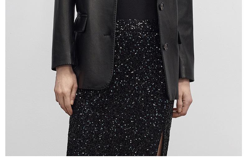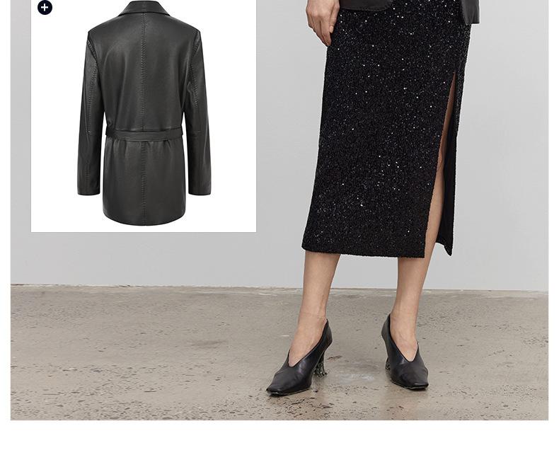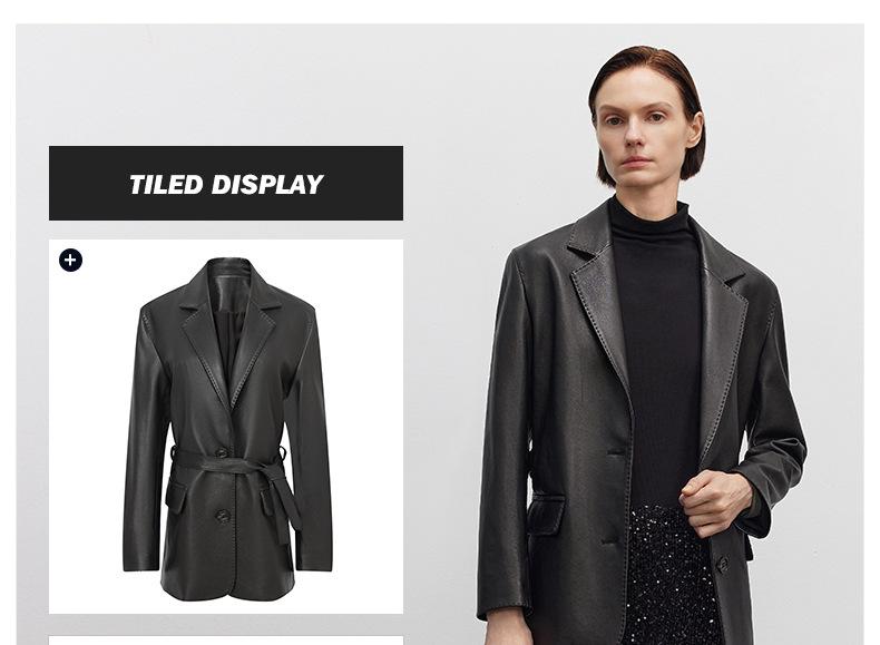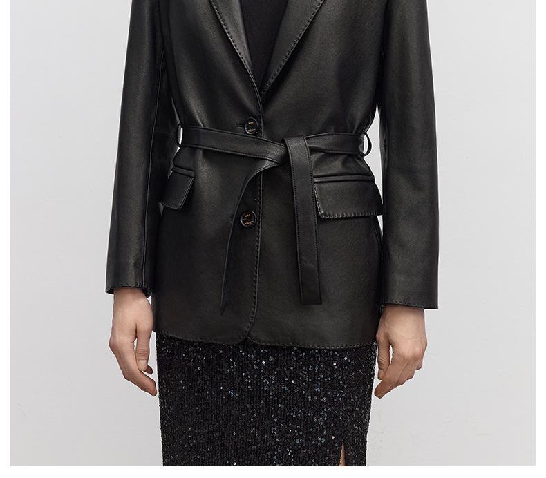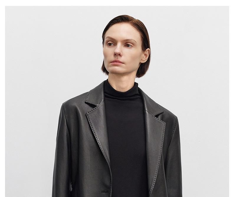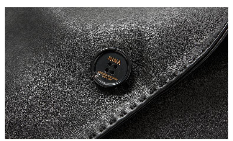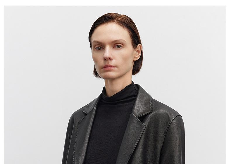 Chaqueta de Piel Genuina de Cabra de Alta Gama para Mujer Primavera Nueva Chaqueta Retro de Largo Medio Chaqueta de Traje de Cuero para Mujer