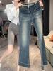 Compra Talla grande Estilo Americano High Street Jeans Microacampanados para Mujer Diseño Sensorial Sueltos Cintura Alta Adelgazantes Nicho Ajustados Pantalones sin Fondo al por mayor en Joom.pro