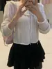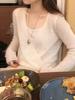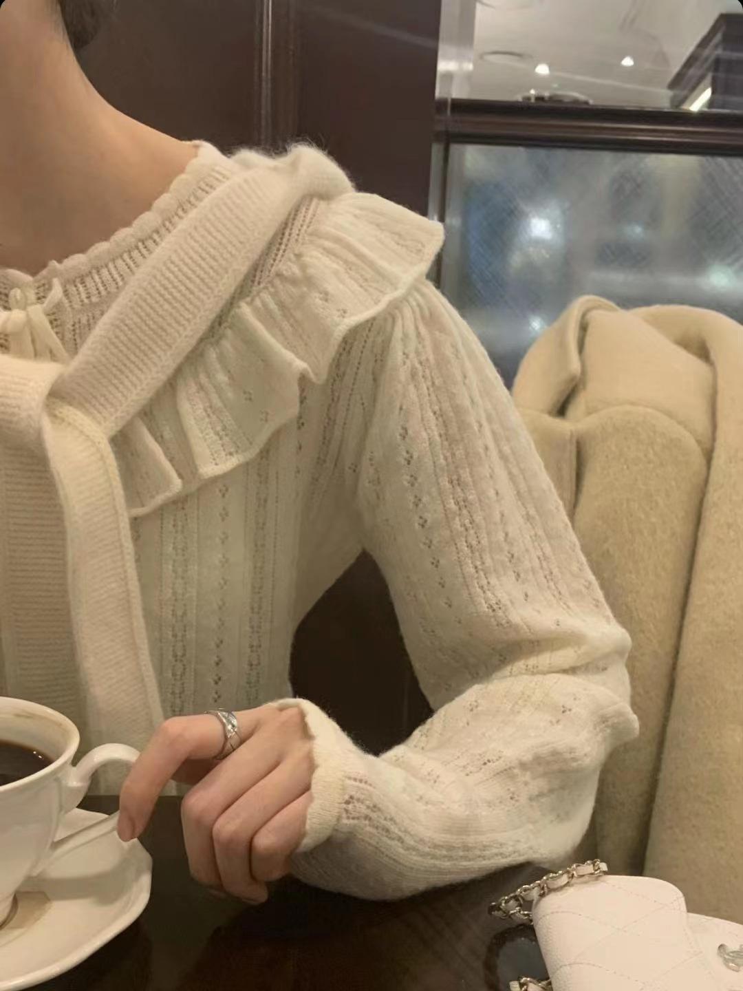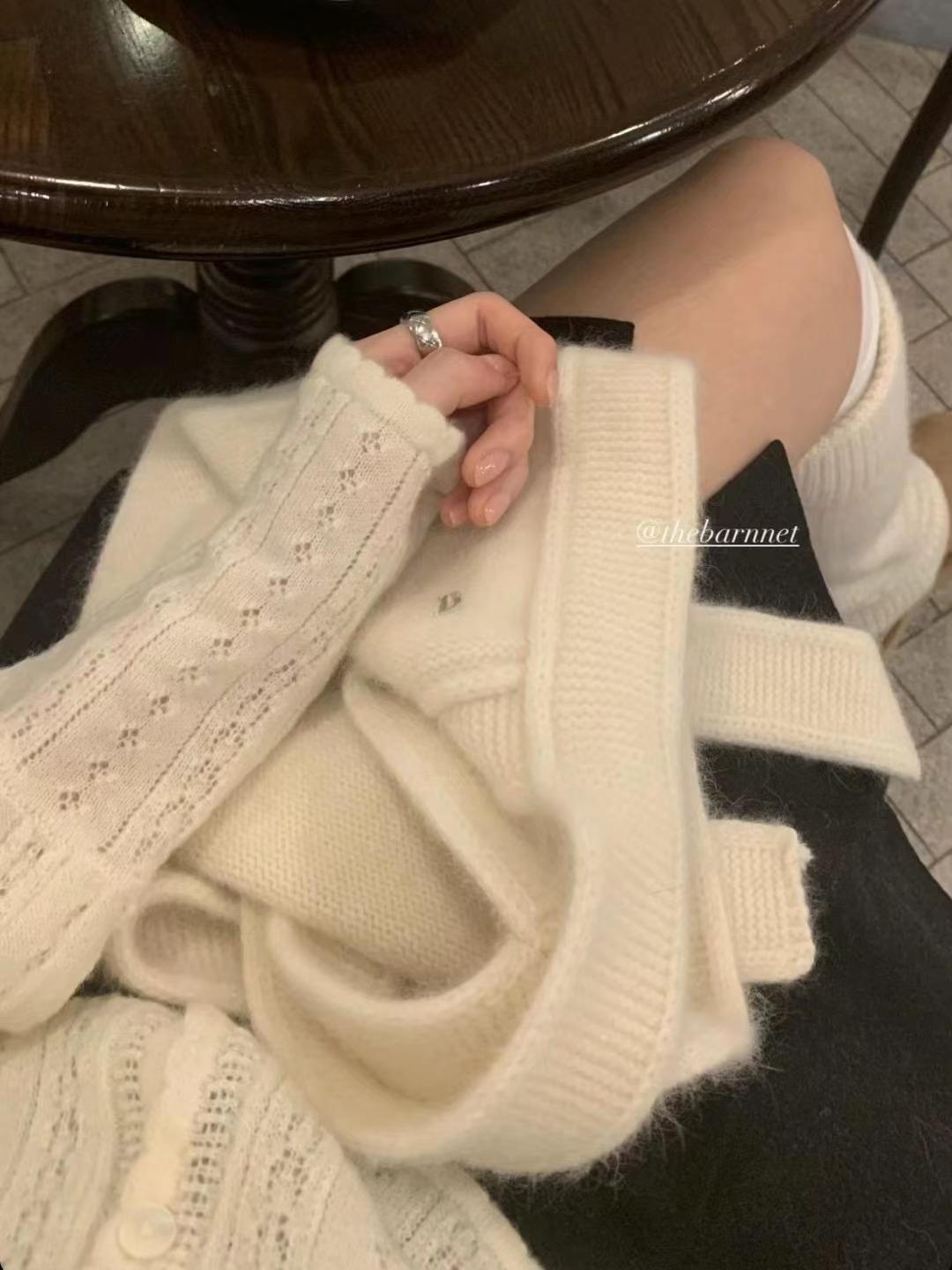 Top Cárdigan de Punto con Encaje y Aberturas de Cuello Redondo de Color Puro Estilo Coreano Dongdaemun Primavera 2025 Th*Bar*Net