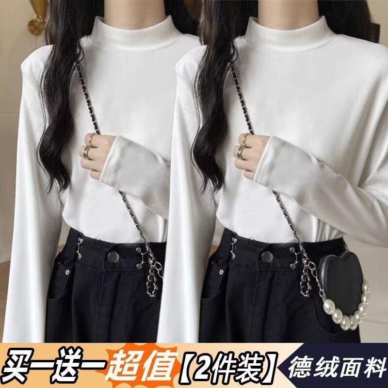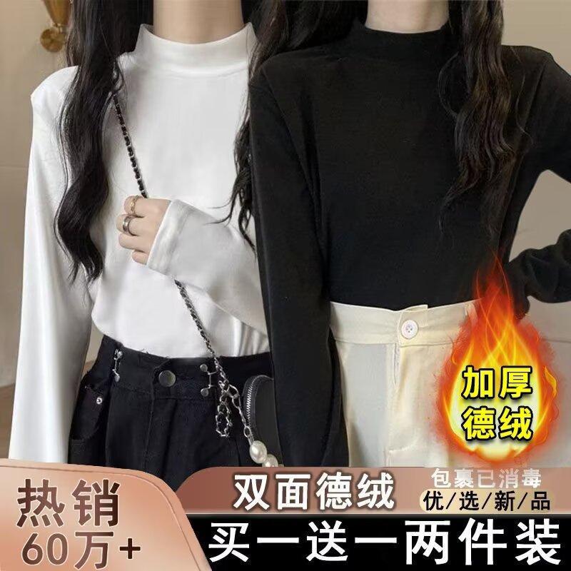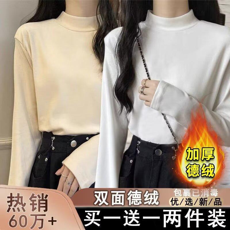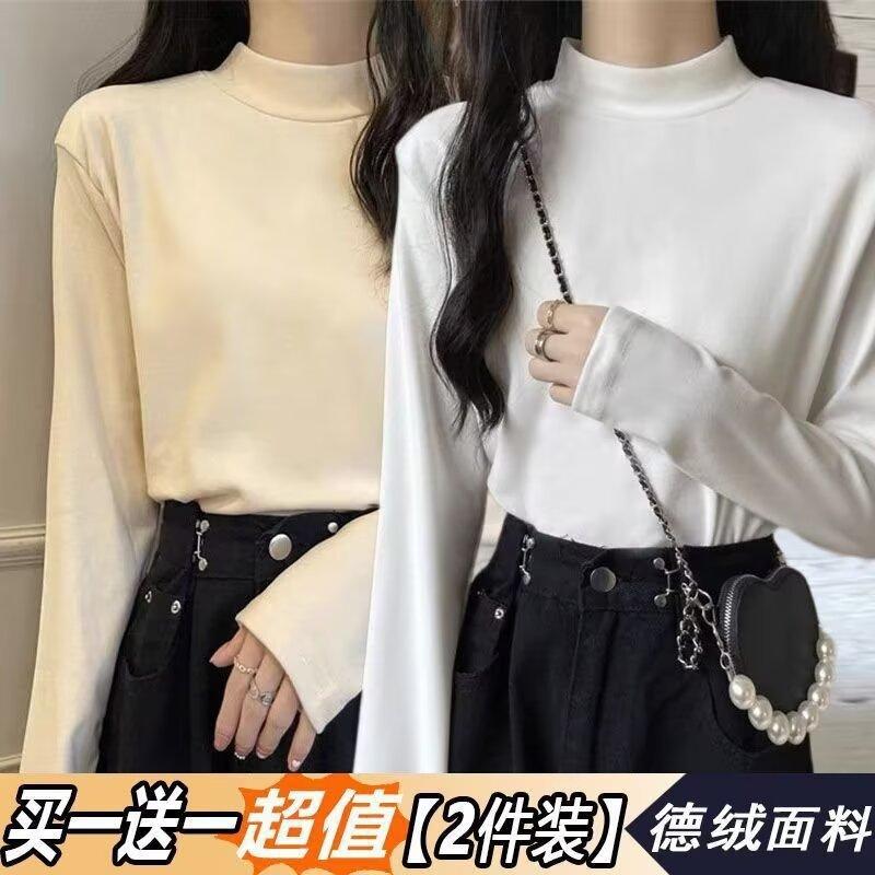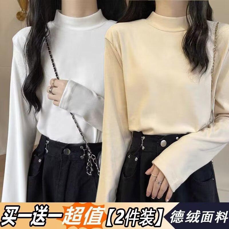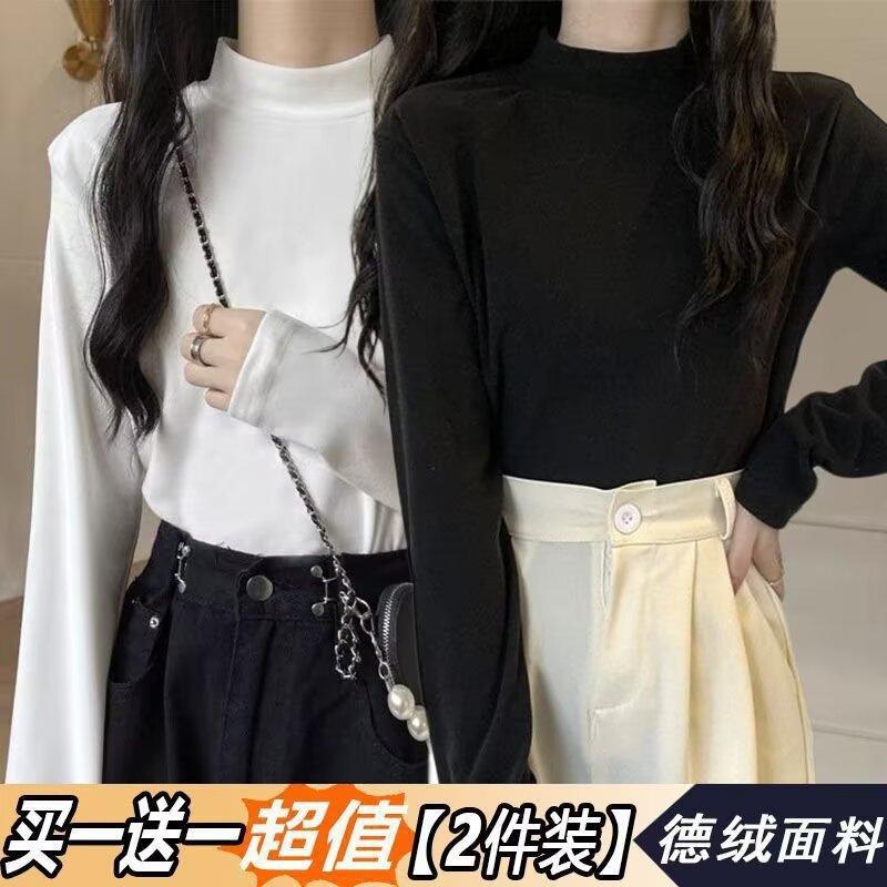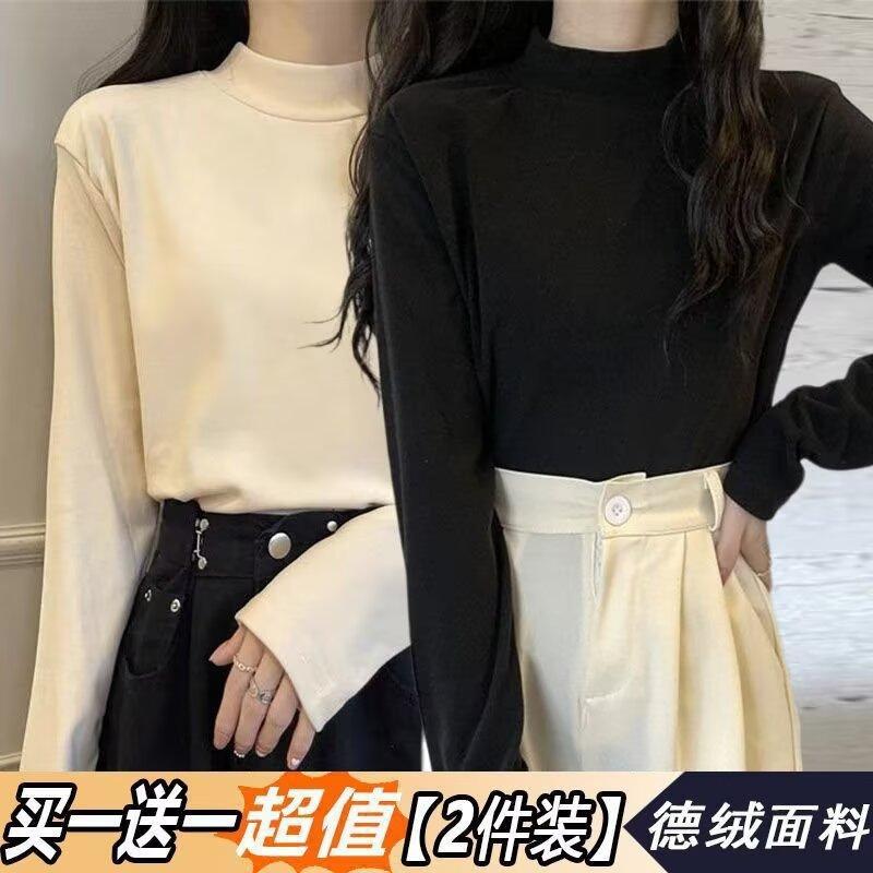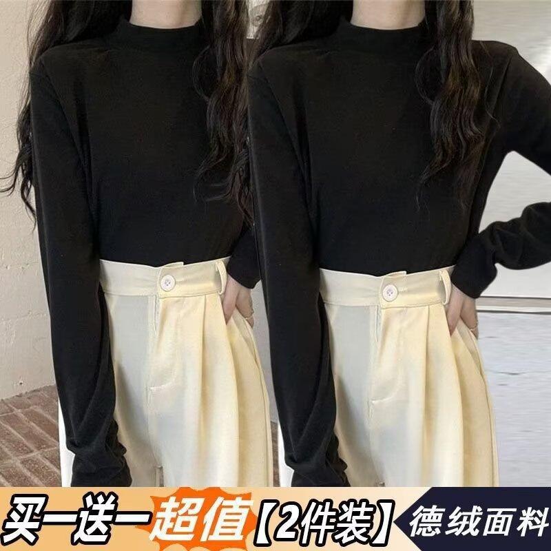 Camiseta básica de cuello medio alto de terciopelo para mujer, otoño e invierno, nuevo estilo, camiseta informal de manga larga, prenda exterior cálida para mujer