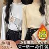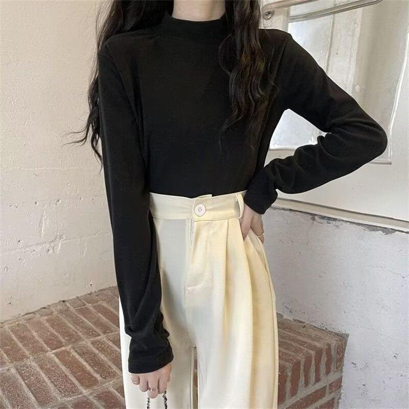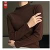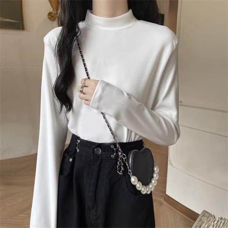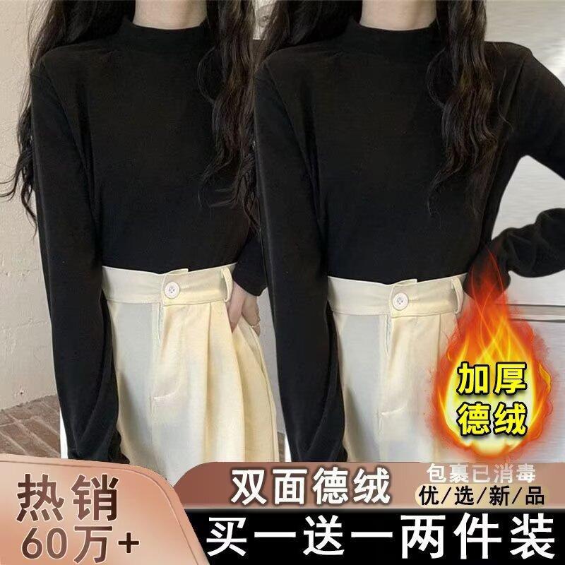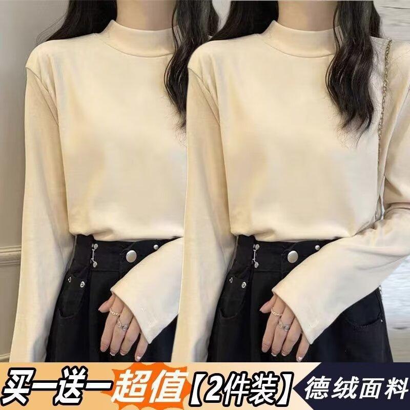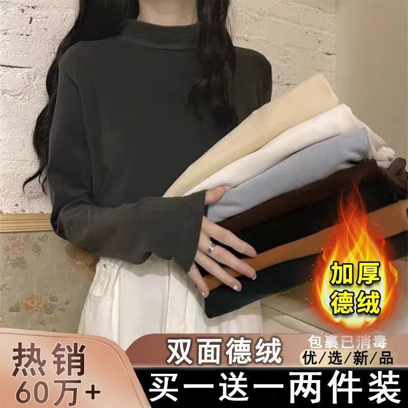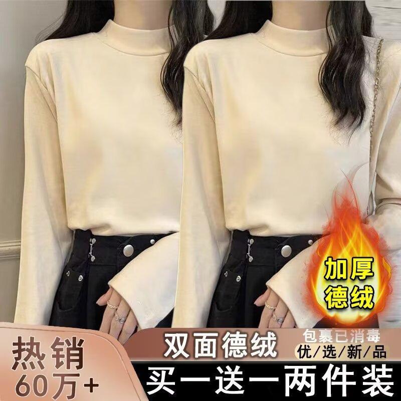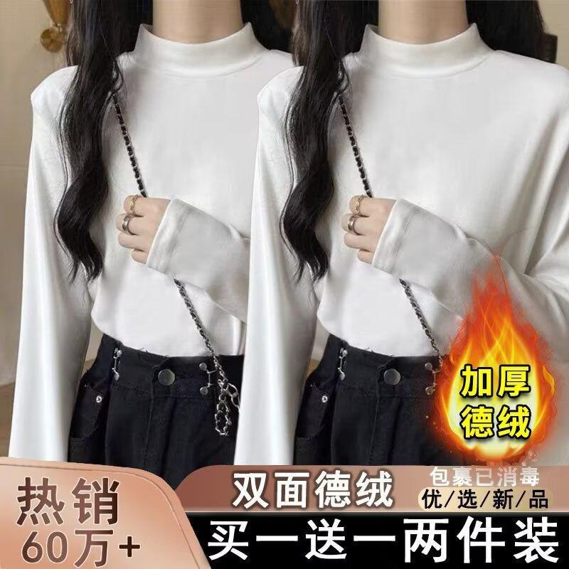 Camiseta básica de cuello medio alto de terciopelo para mujer, otoño e invierno, nuevo estilo, camiseta informal de manga larga, prenda exterior cálida para mujer