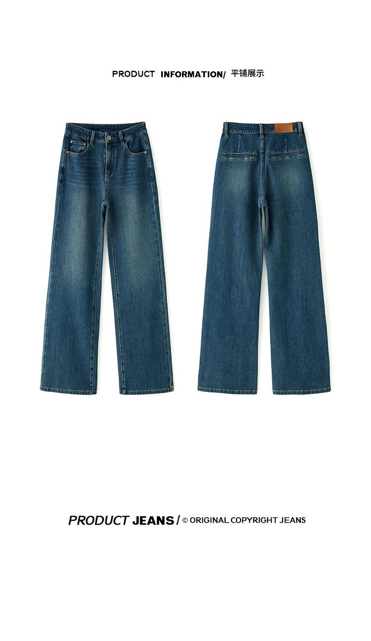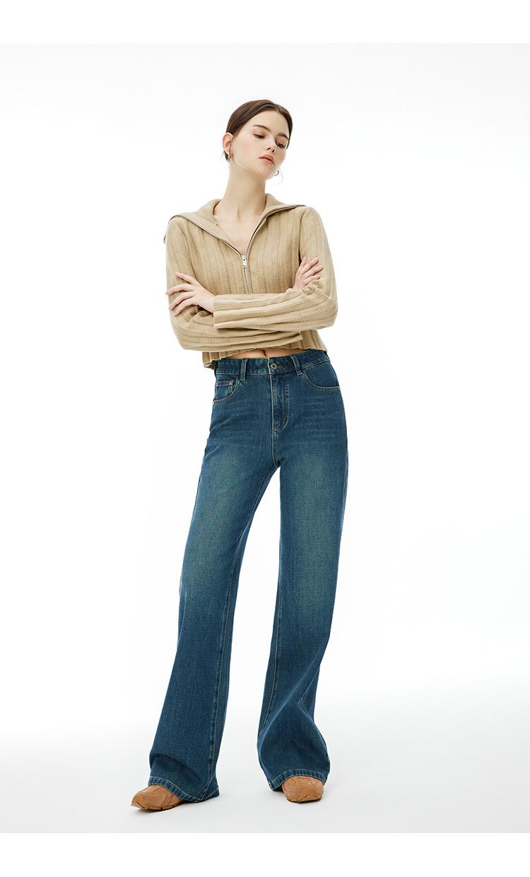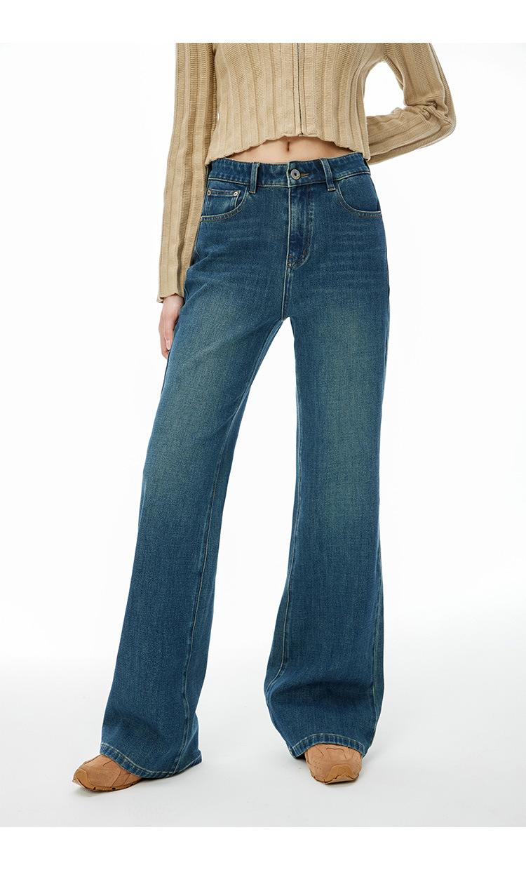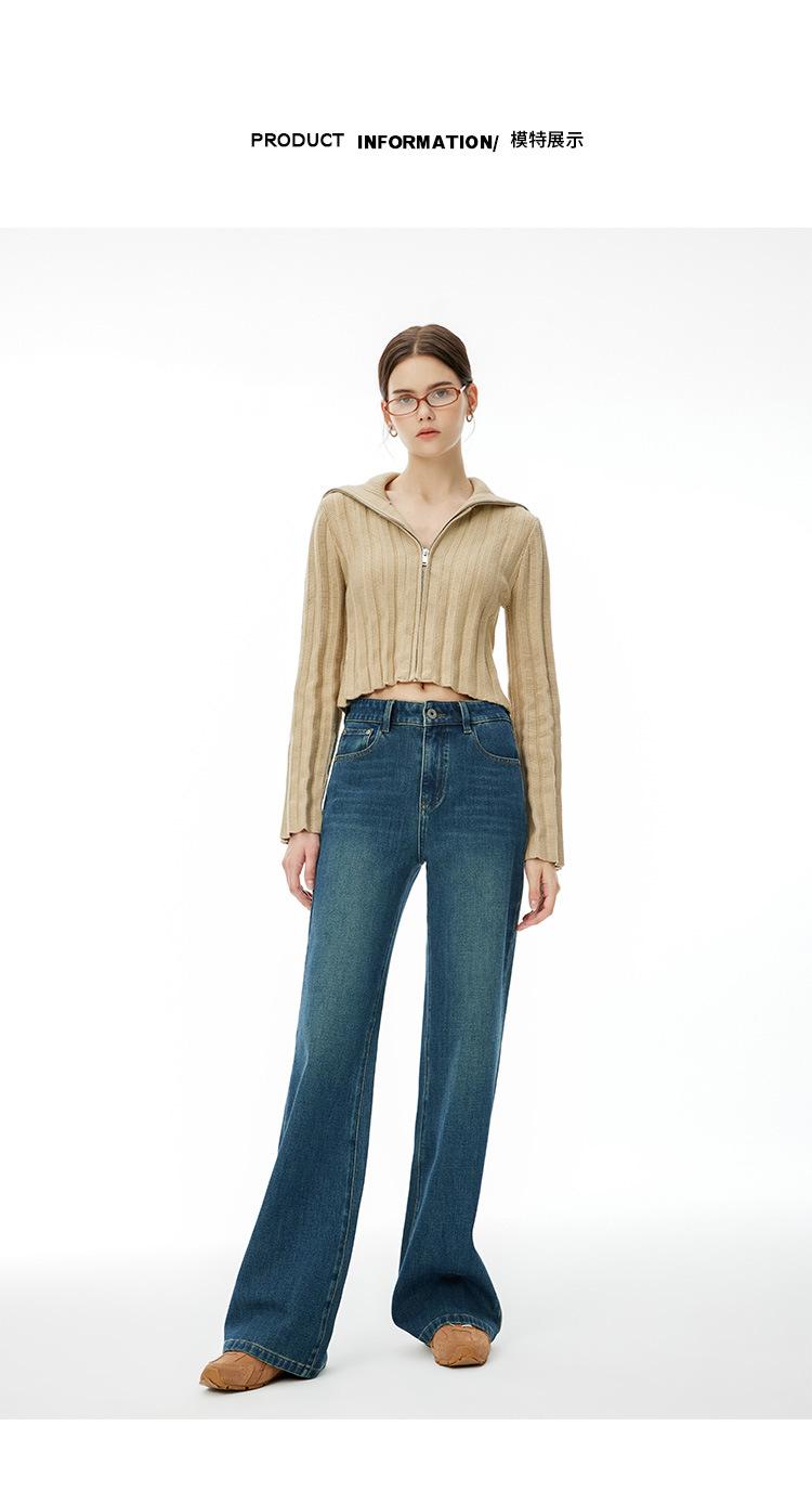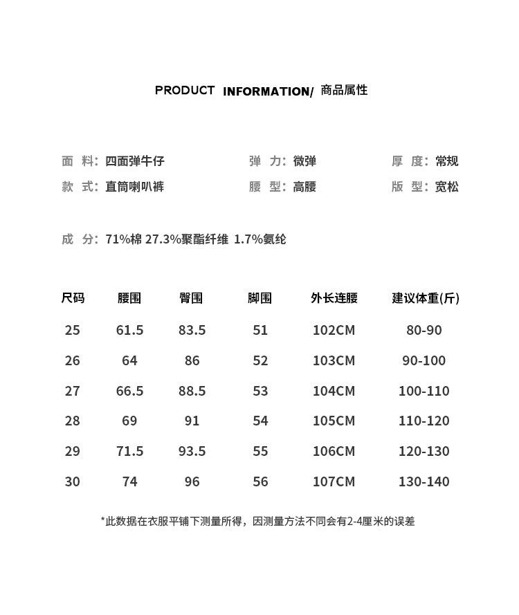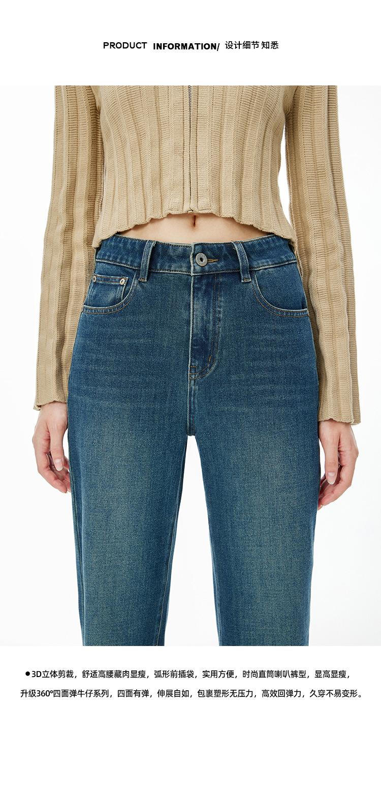 Pantalones vaqueros elásticos de cuatro lados de alta calidad de gama alta para otoño de 2024, nuevos pantalones acampanados rectos y sueltos de cintura alta para mujer