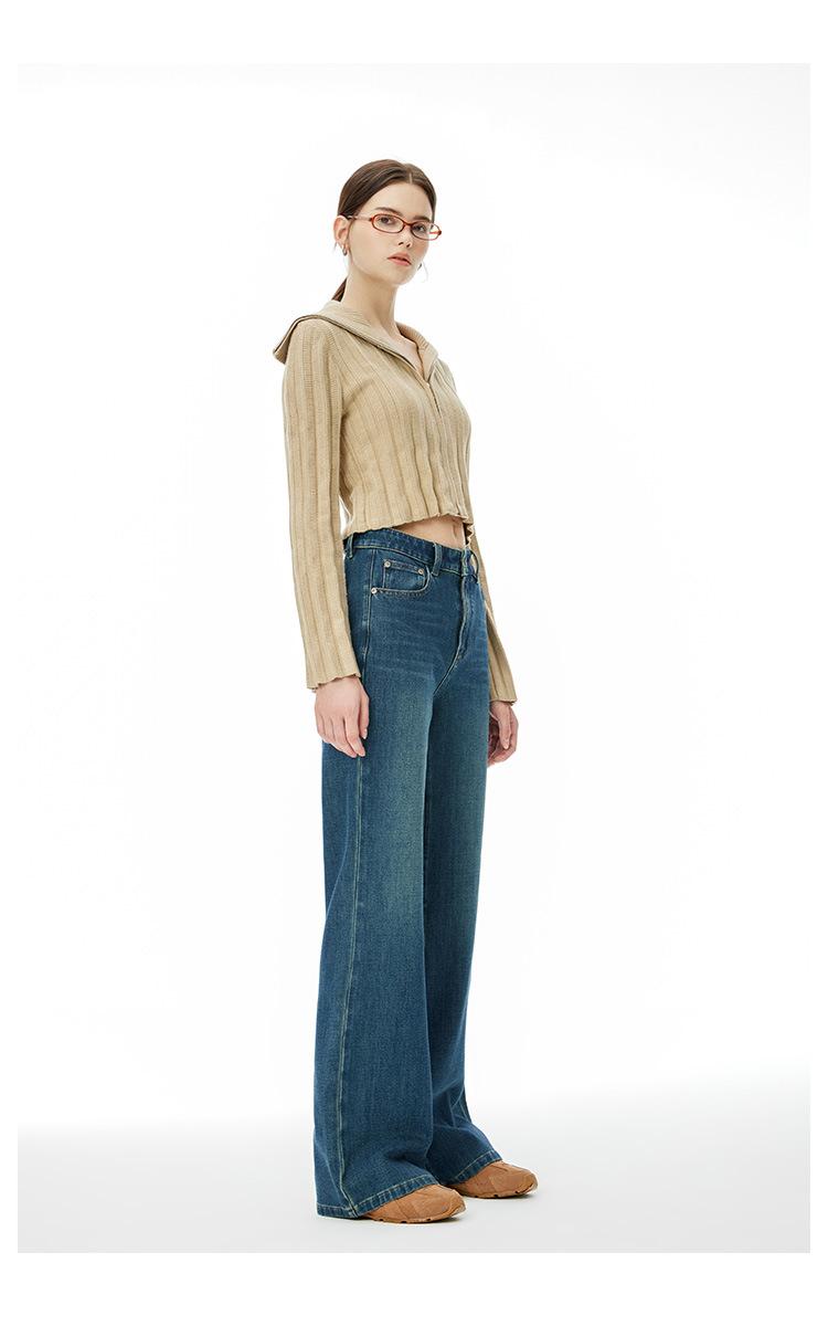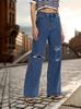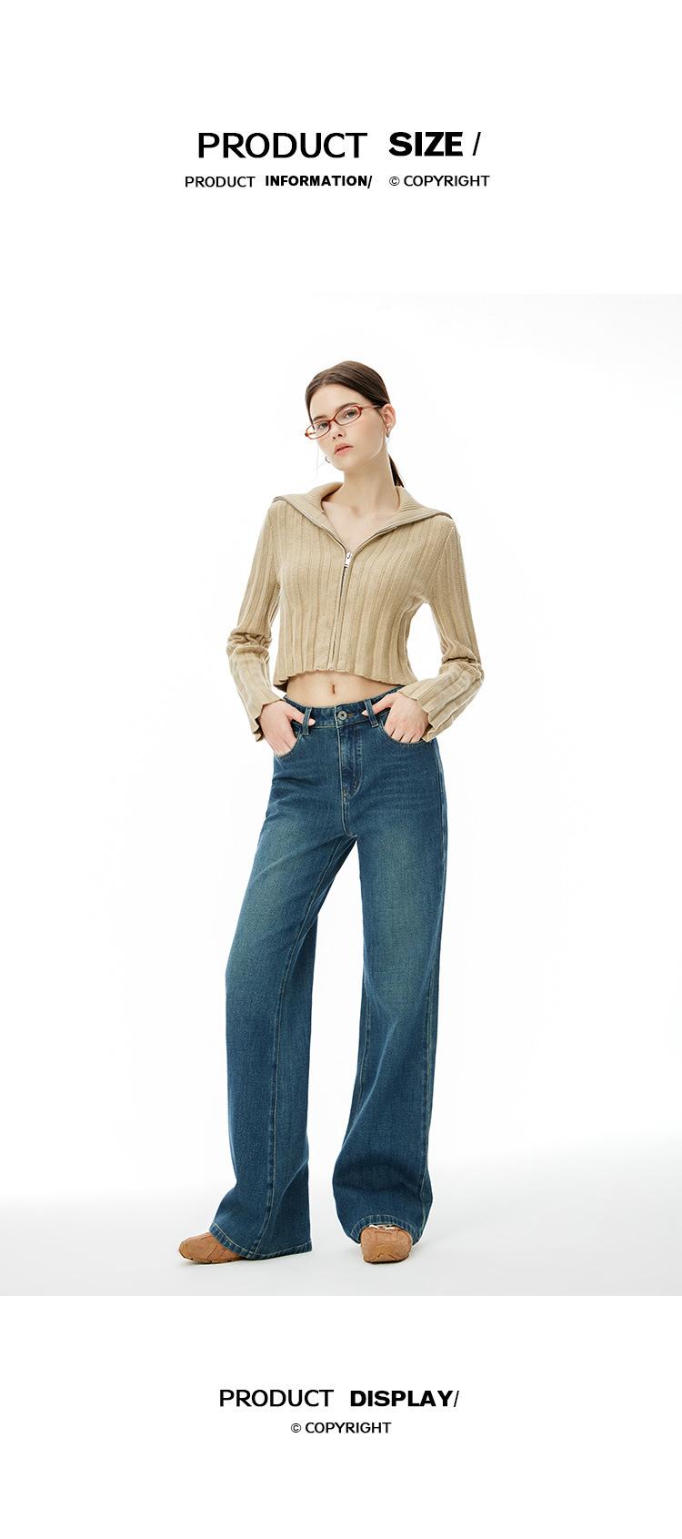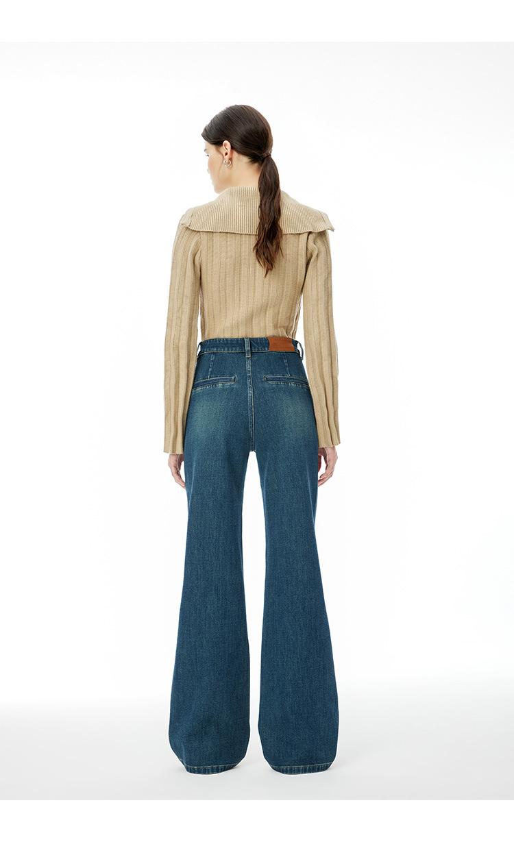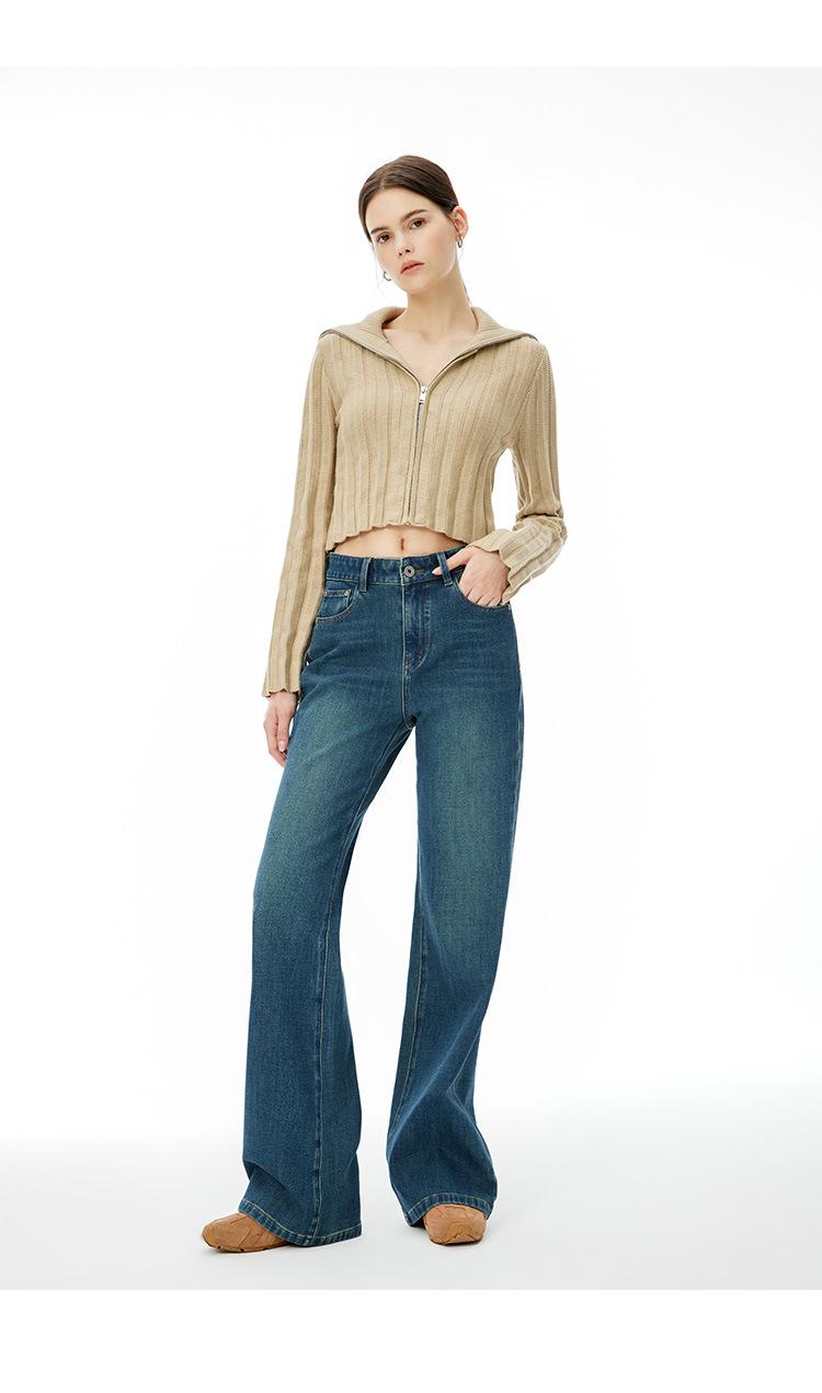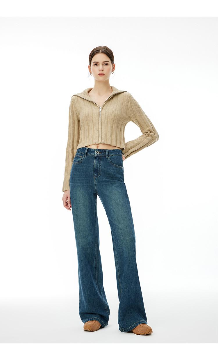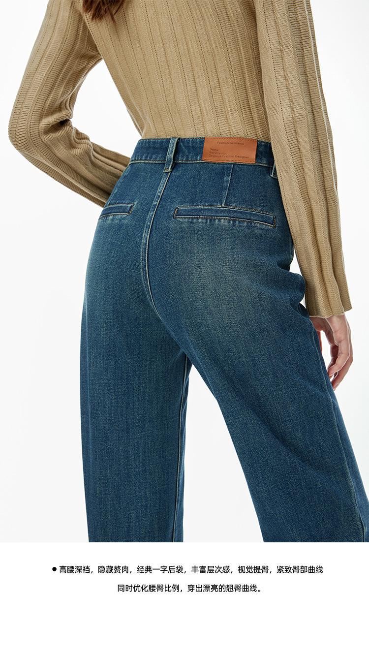 Pantalones vaqueros elásticos de cuatro lados de alta calidad de gama alta para otoño de 2024, nuevos pantalones acampanados rectos y sueltos de cintura alta para mujer