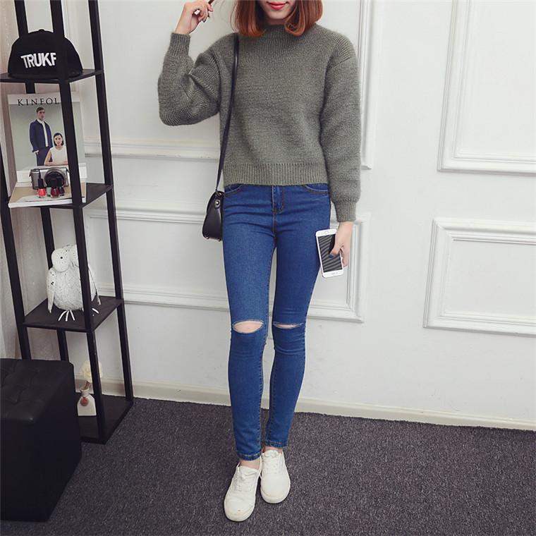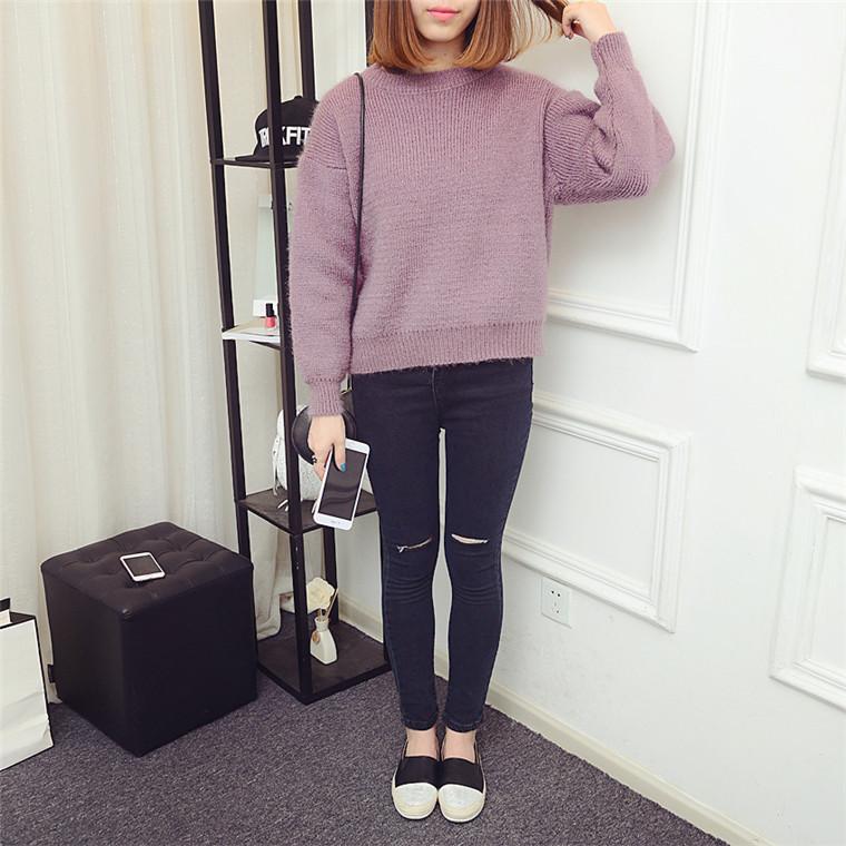 Suéter S310 para mujer, cuello redondo, corto, grueso, para invierno, primavera y otoño, nuevo estilo universitario, para estudiantes.