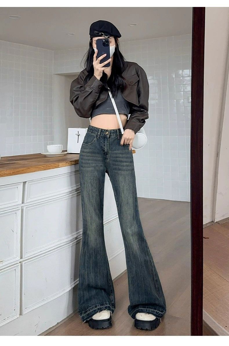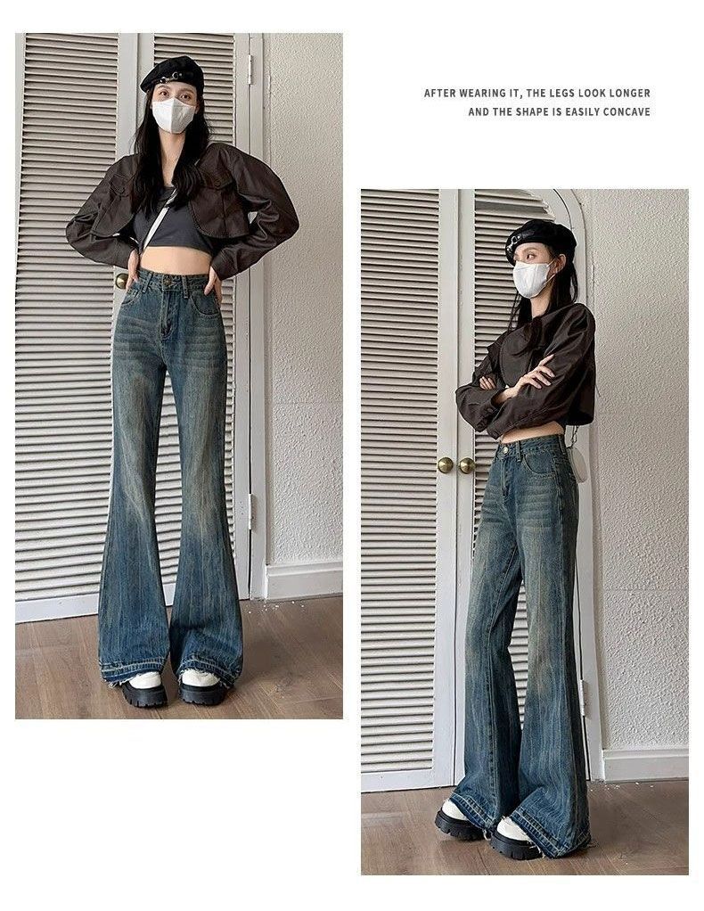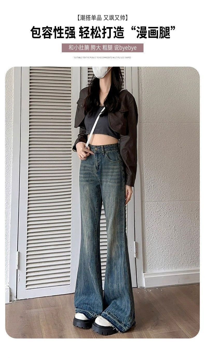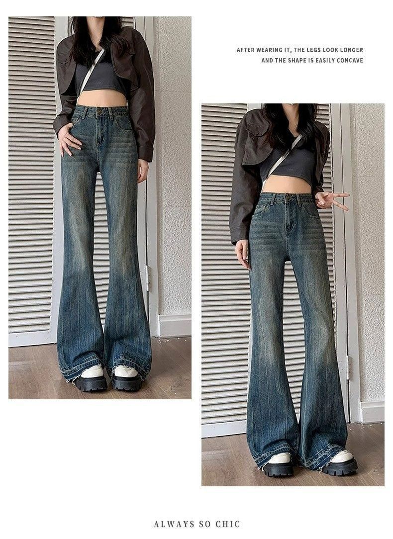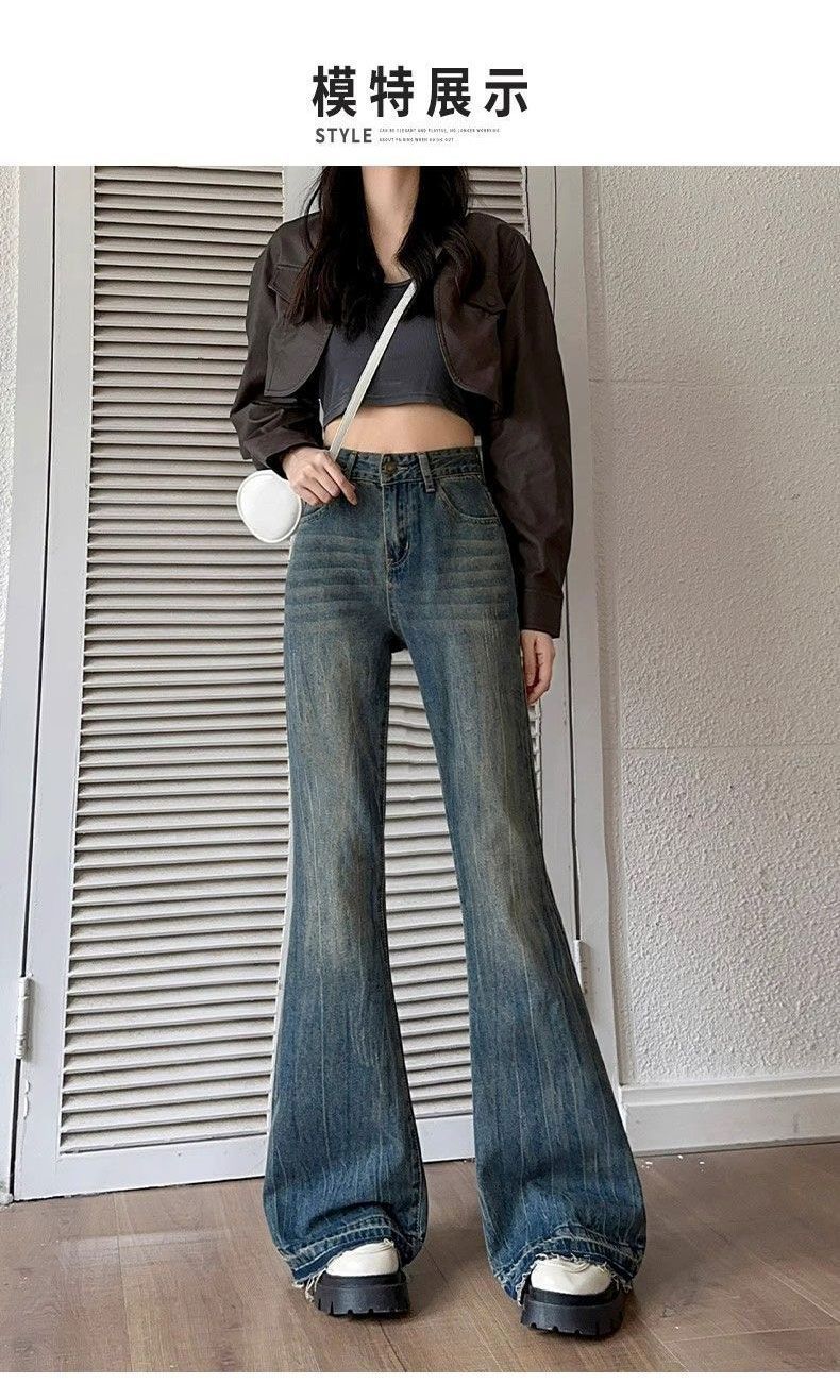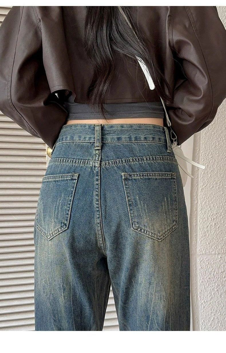 Pantalones vaqueros vintage de moda para mujer, de cintura alta, elásticos, rectos, ajustados, estilo americano, con diseño de herradura.