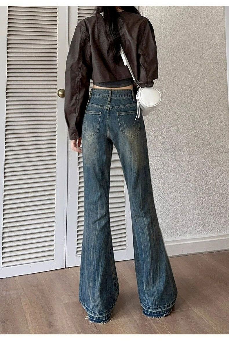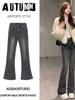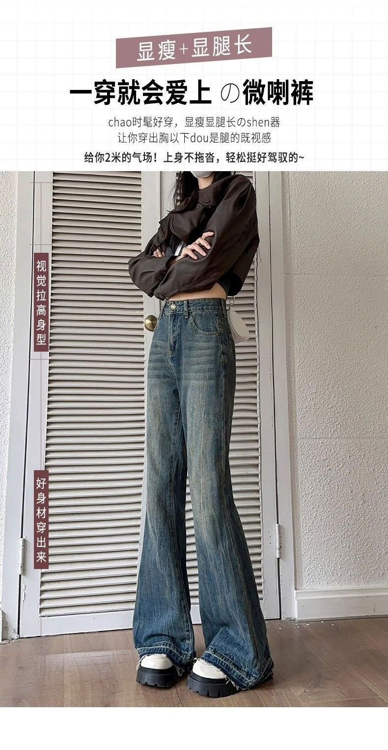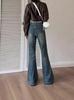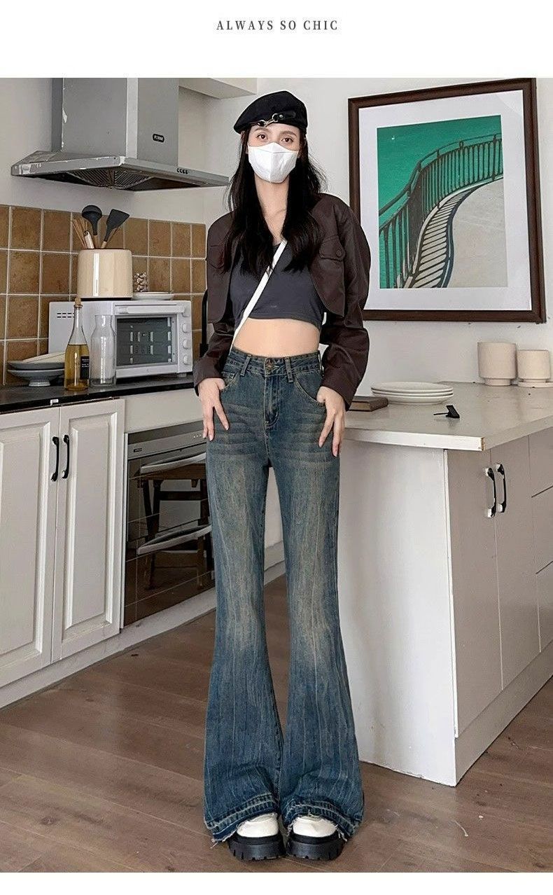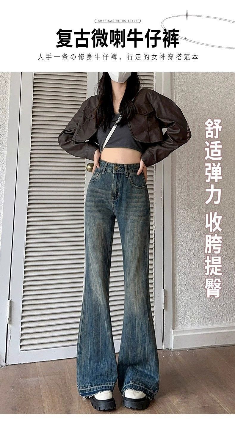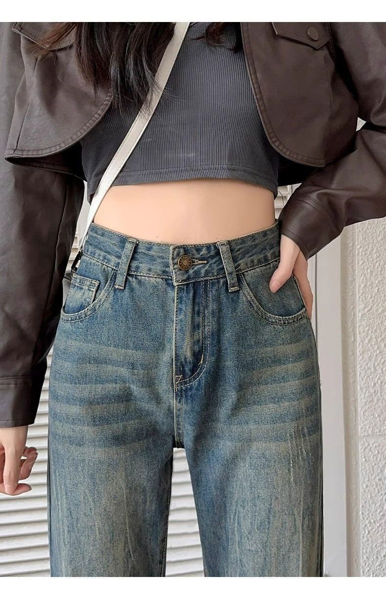 Pantalones vaqueros vintage de moda para mujer, de cintura alta, elásticos, rectos, ajustados, estilo americano, con diseño de herradura.