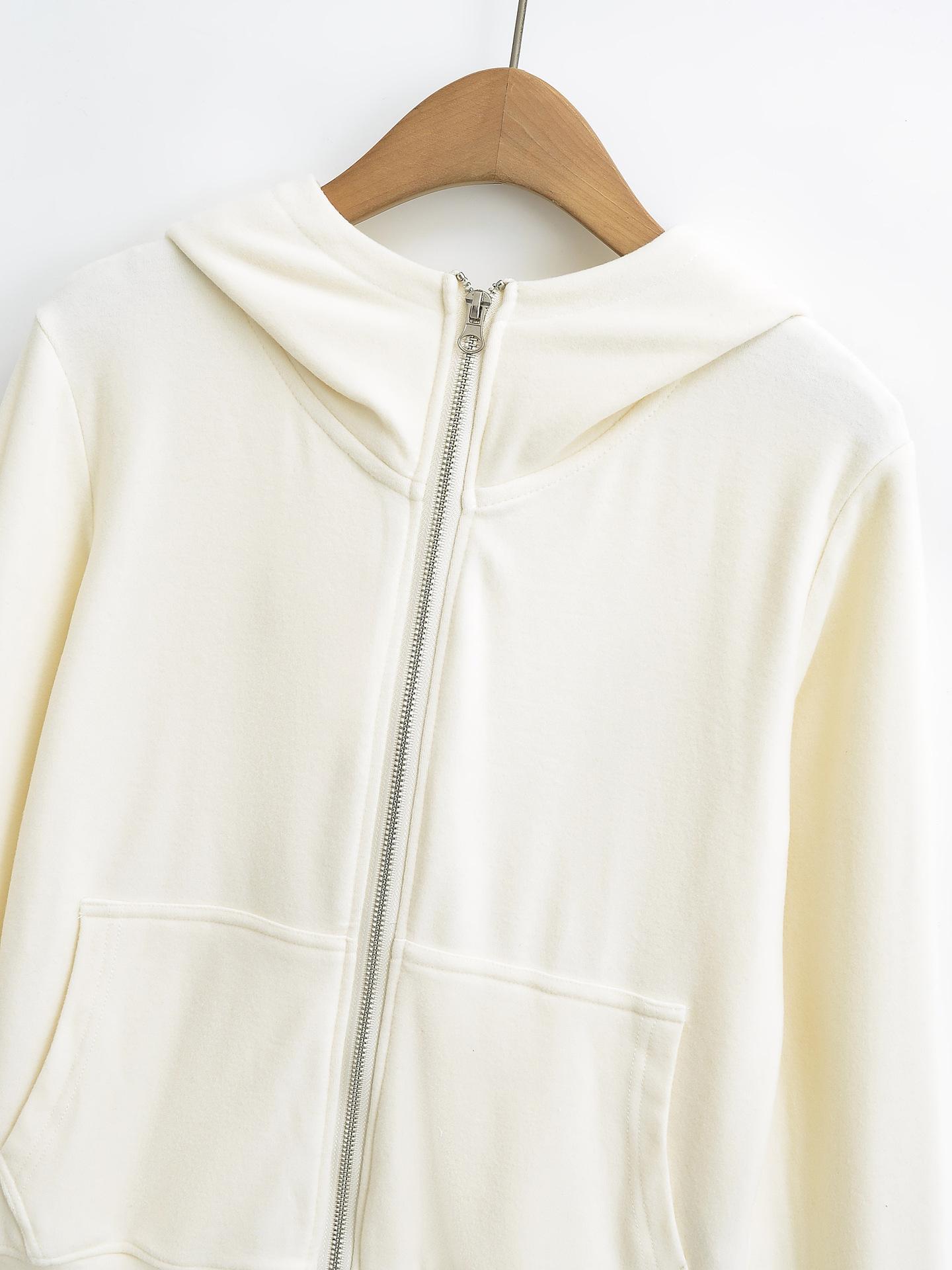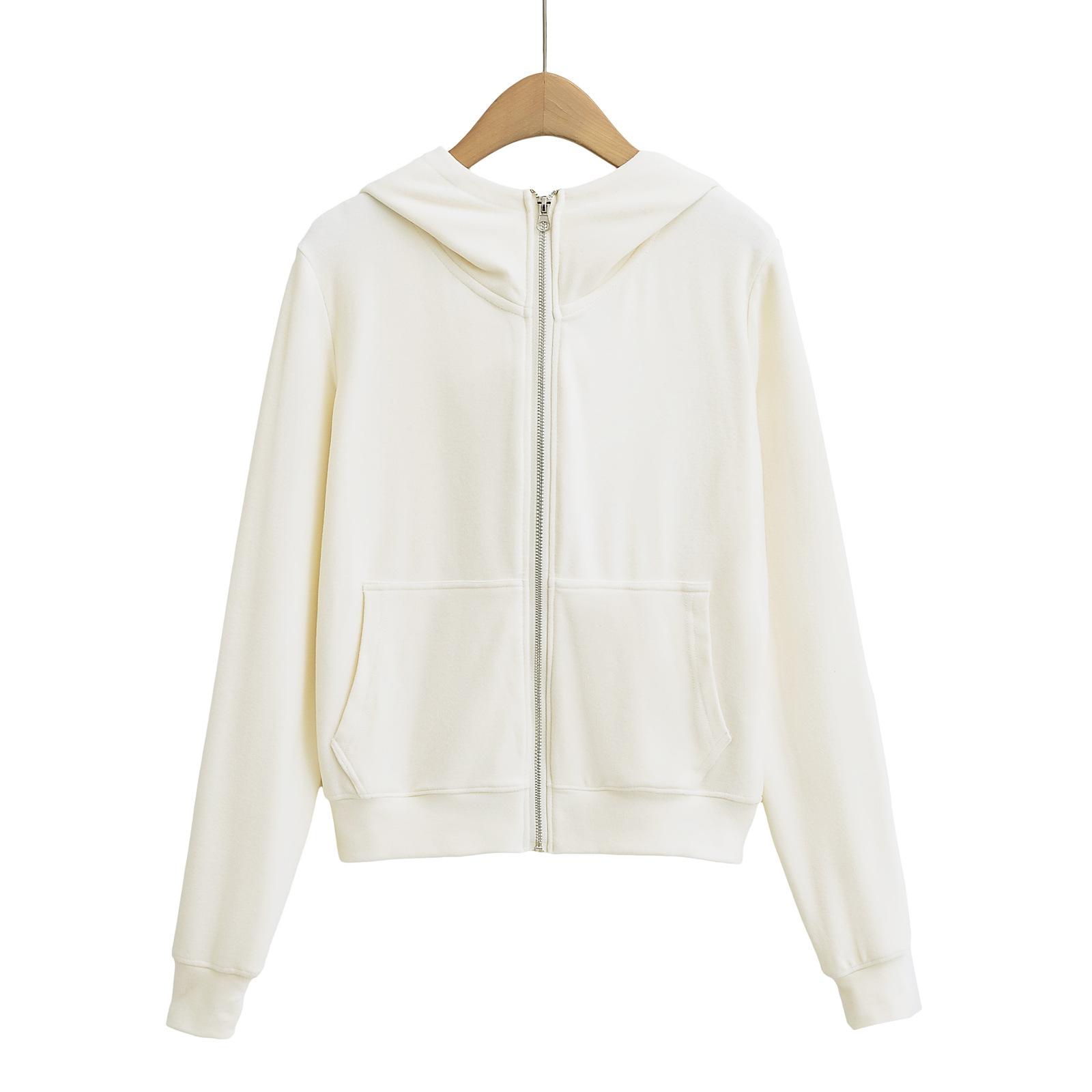 8585-24 Invierno Nuevo Estilo Europeo y Americano Simple Sombrero Básico Cremallera Manga Larga Chaqueta Cárdigan Bolsillo Delantero Wei Yi