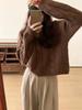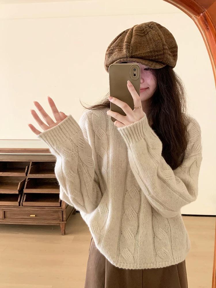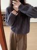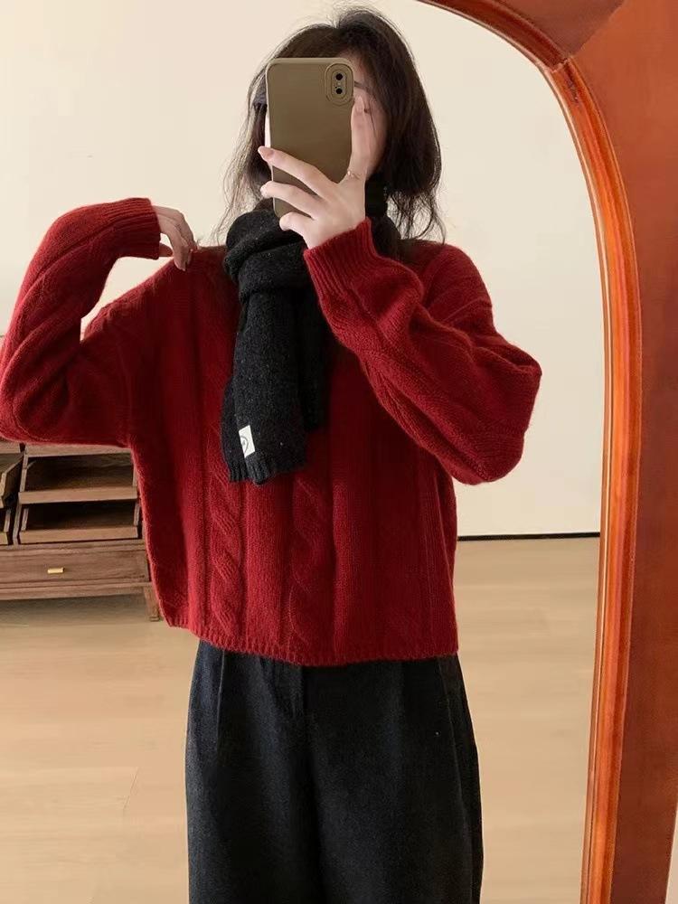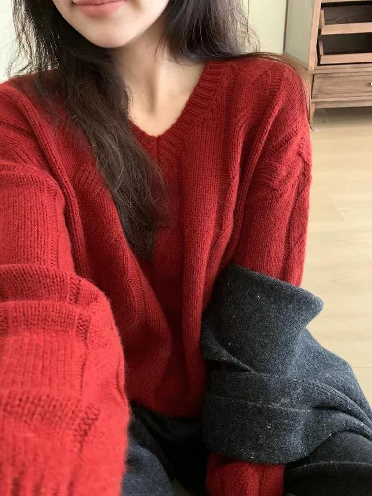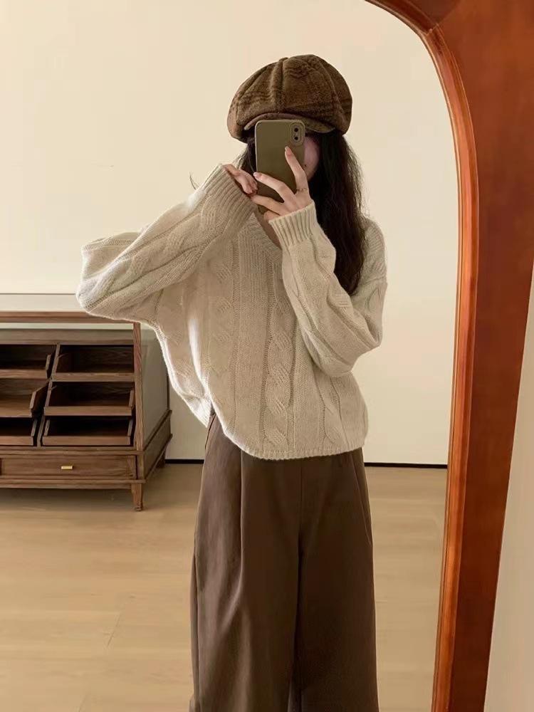 Suéter de lana pura con cuello en V corto estilo coreano para mujer, otoño e invierno, nuevo diseño, suéter holgado y perezoso, camisa de base de punto grueso