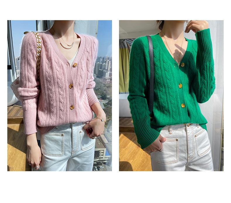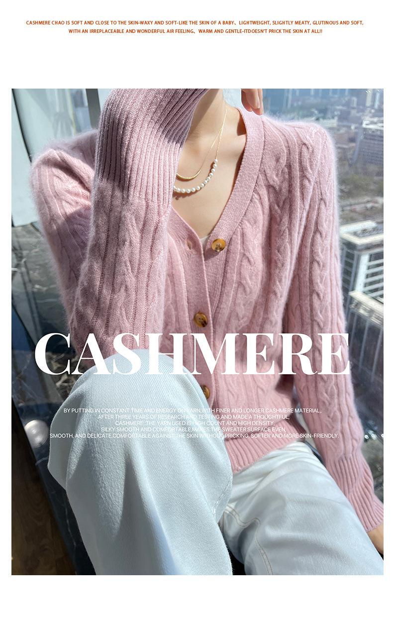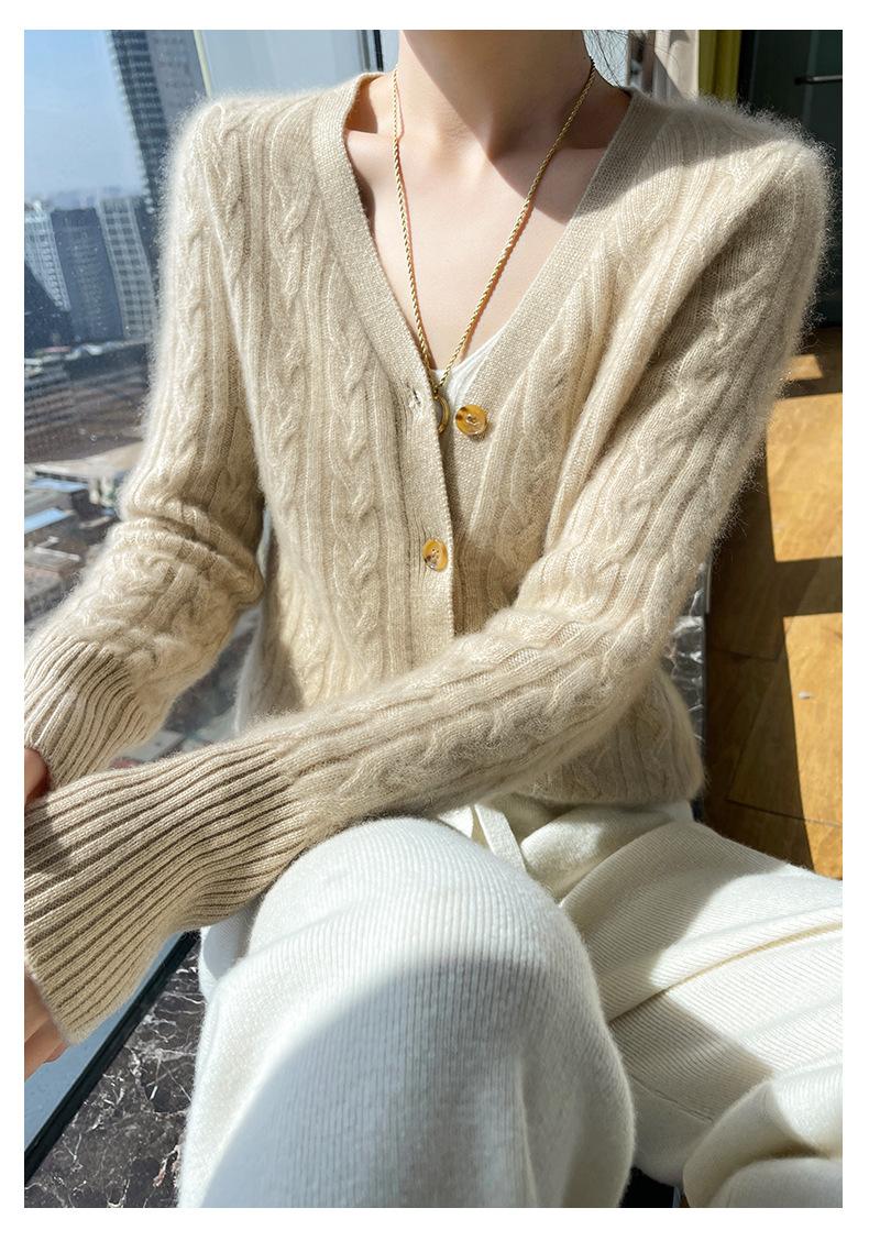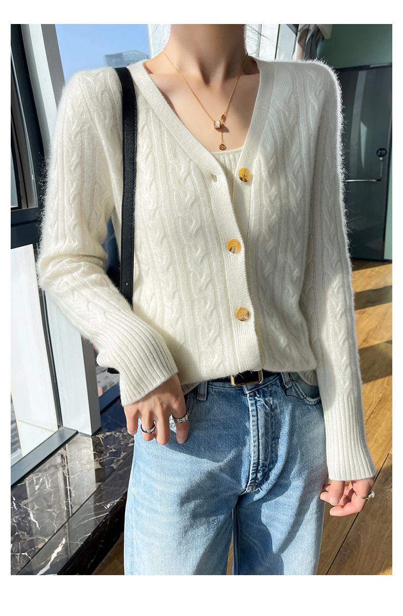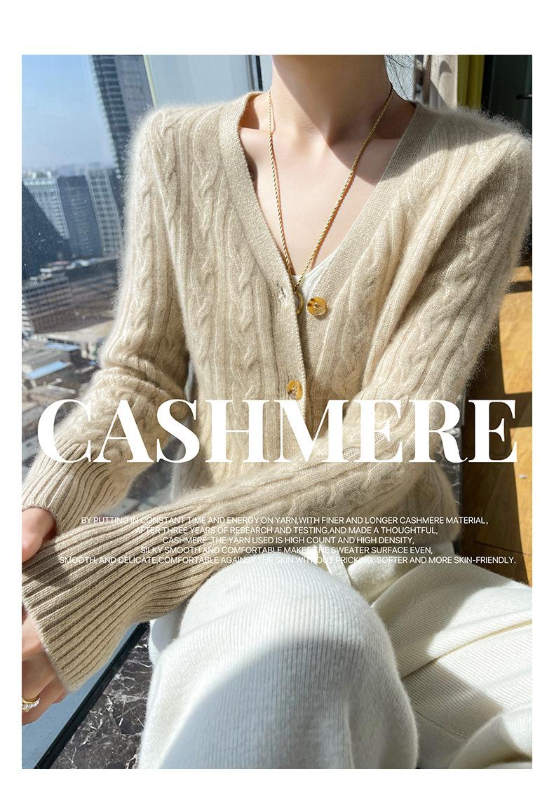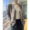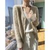 Cárdigan de punto de cachemira para mujer, suéter grueso con cuello en V, holgado, adelgazante, combinable, abrigo superior cálido, otoño e invierno, nuevo