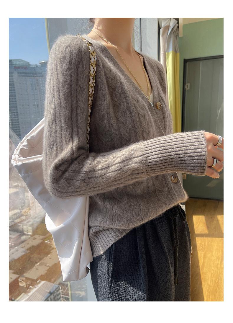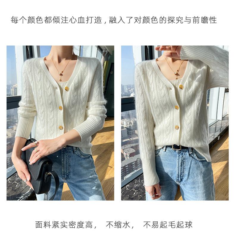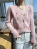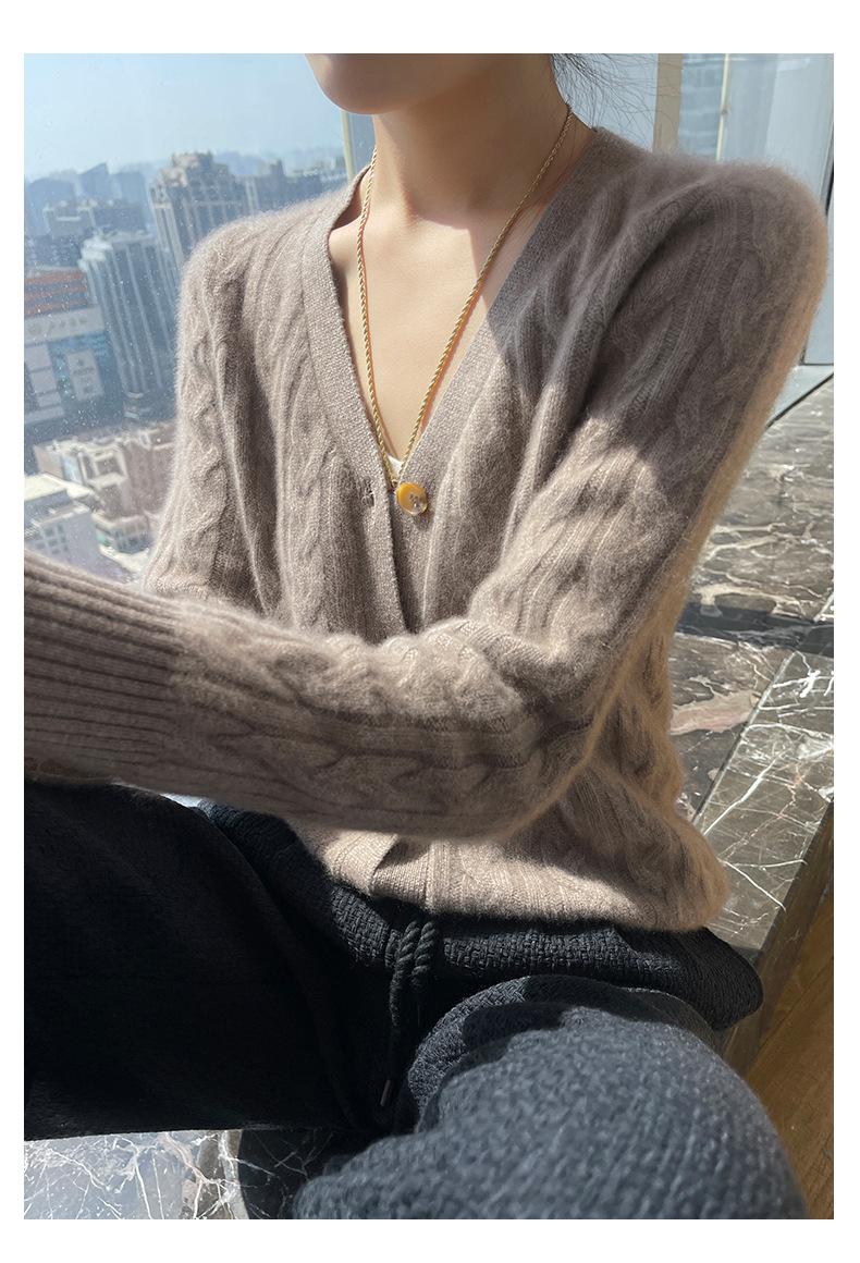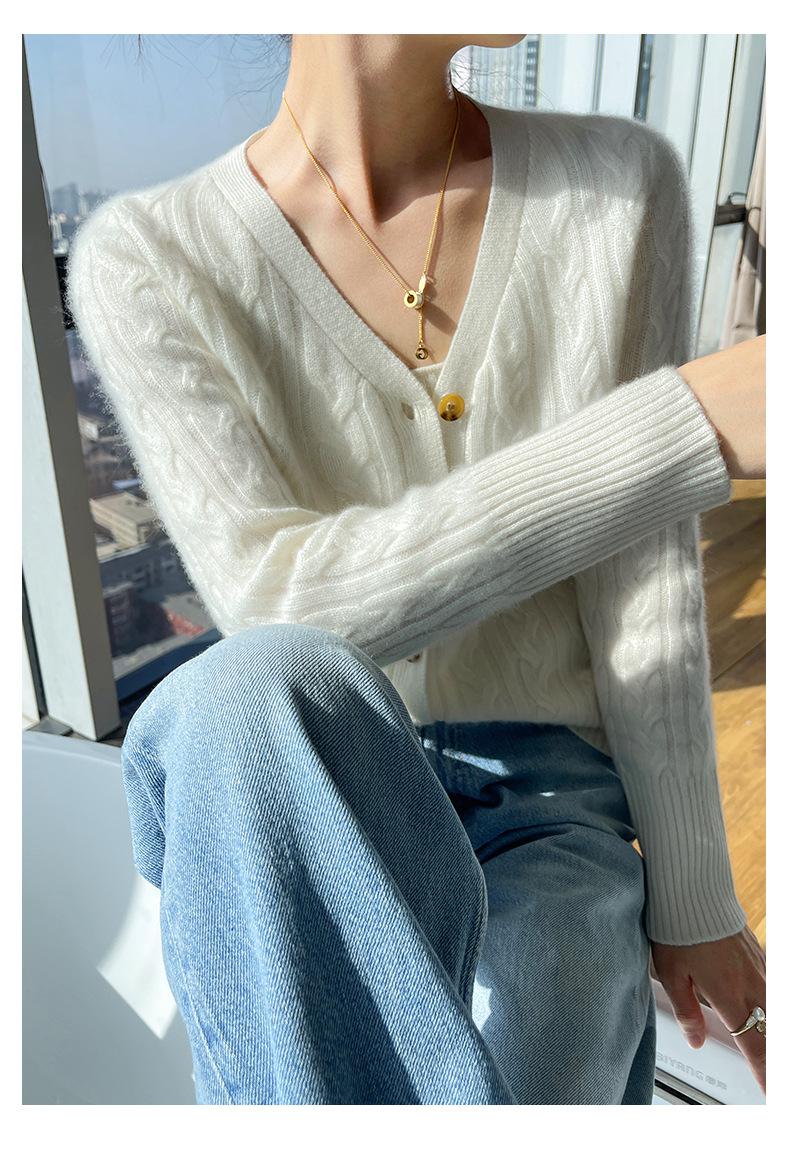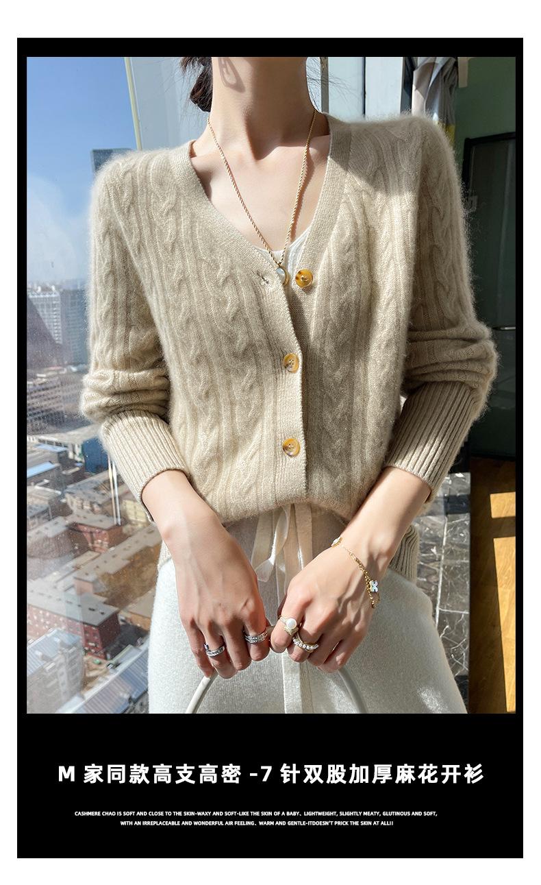 Cárdigan de punto de cachemira para mujer, suéter grueso con cuello en V, holgado, adelgazante, combinable, abrigo superior cálido, otoño e invierno, nuevo