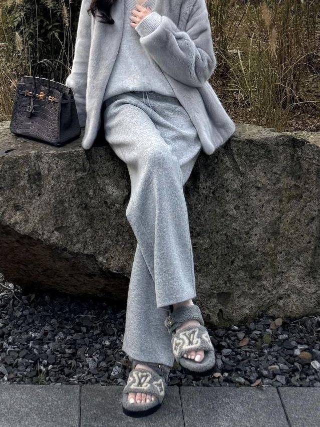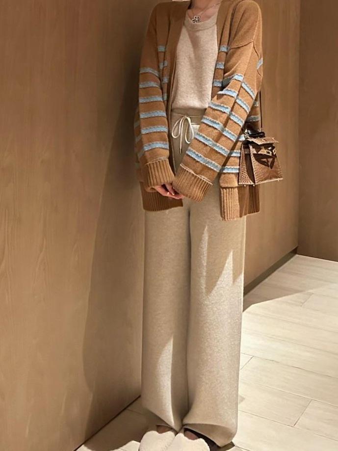 Pantalones casuales rectos de color sólido, sencillos, con cordón y cintura elástica, para otoño e invierno de 2024