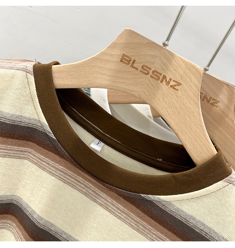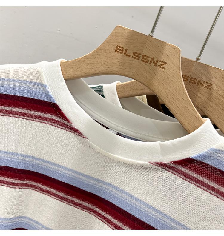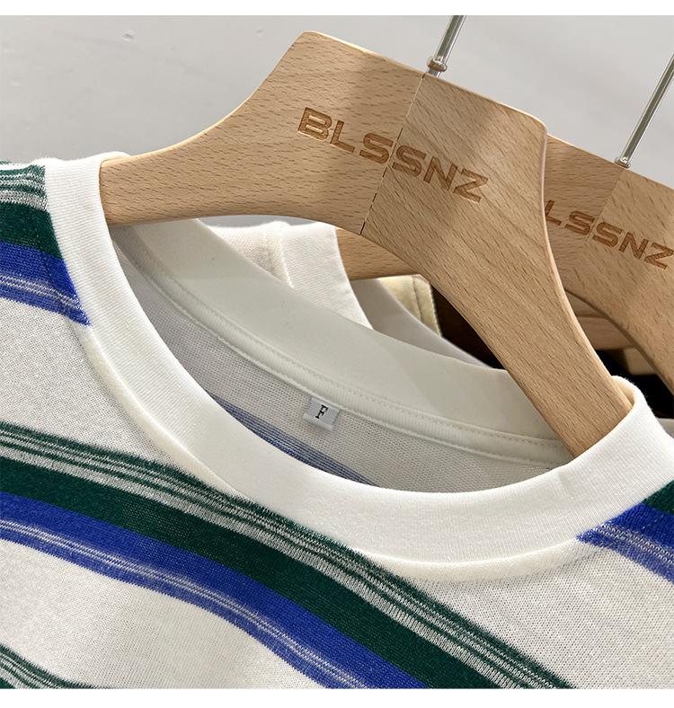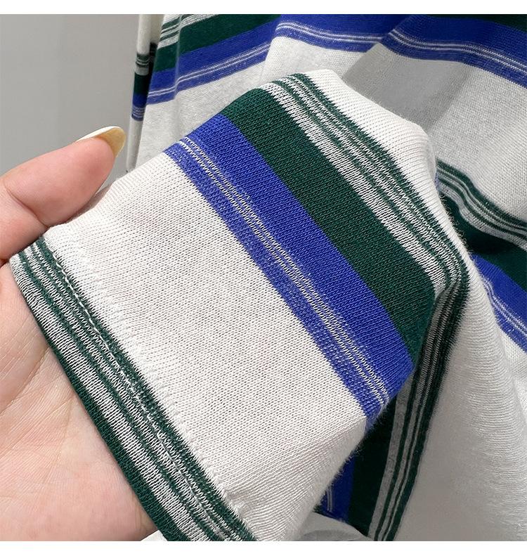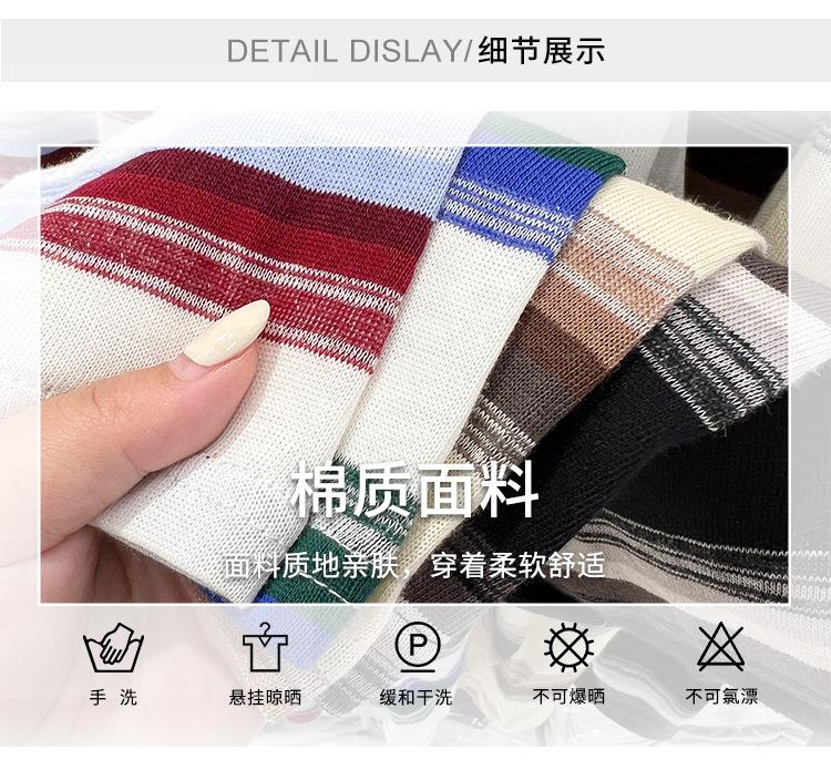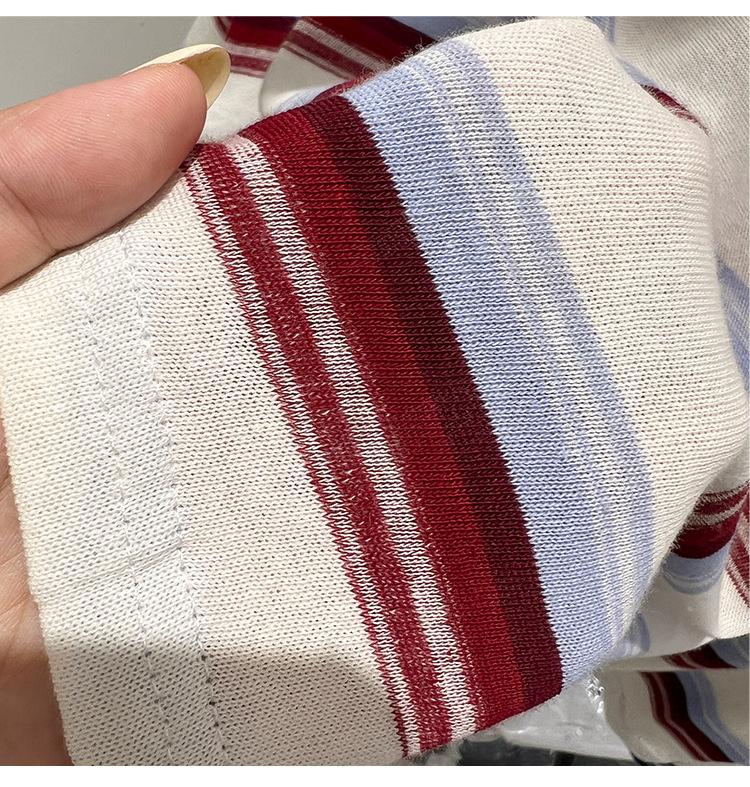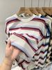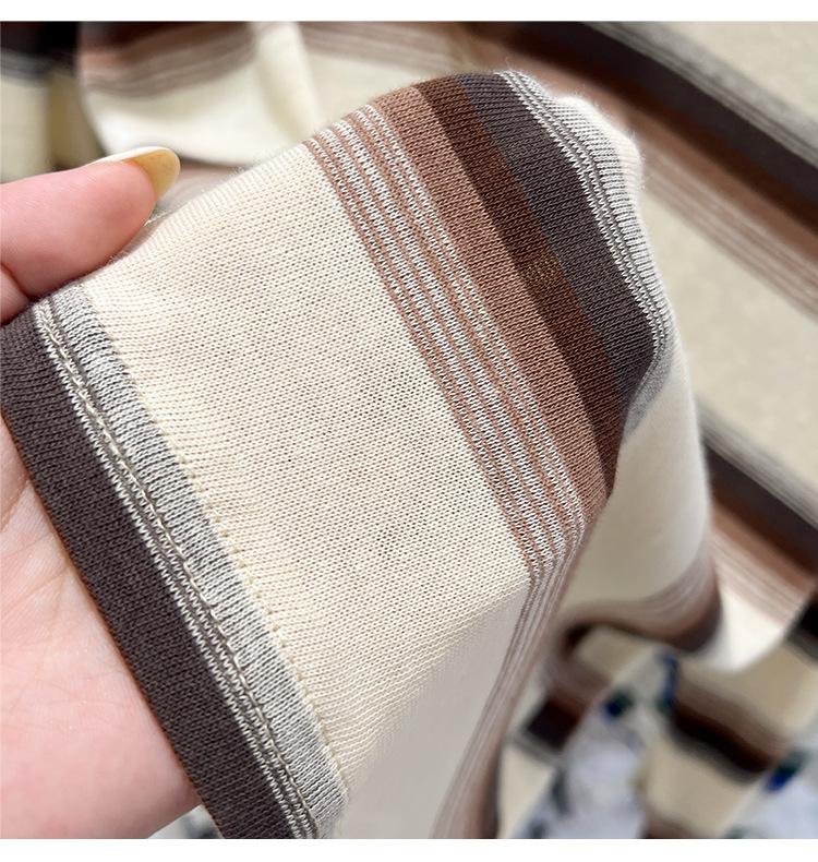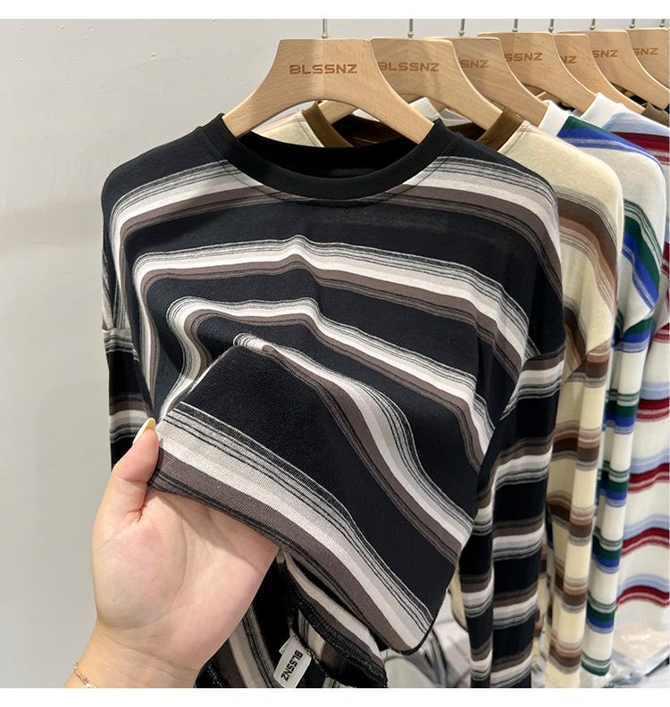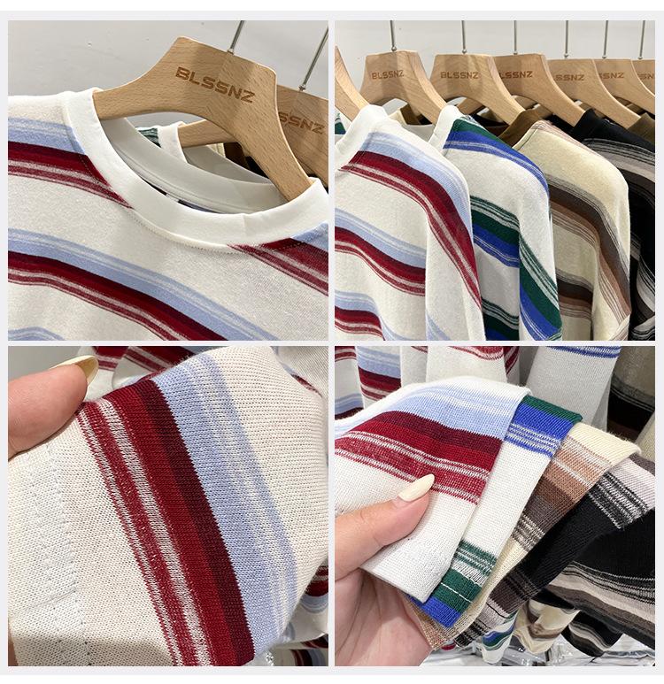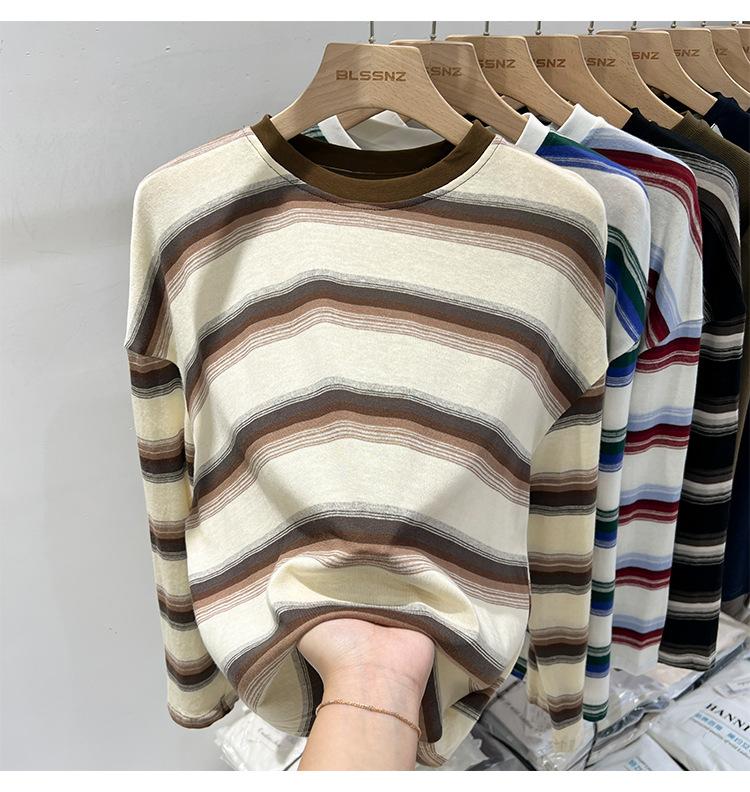 Camiseta de manga larga para mujer, estilo coreano, elegante, informal, holgada, con contraste de colores, a rayas, cuello redondo, estilo coreano, para principios de otoño de 2024