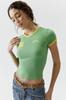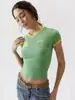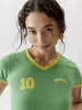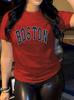 Camiseta de manga corta con cuello en V y estampado de letras para mujer, estilo sencillo, estilo informal, primavera 2024, estilo europeo y americano