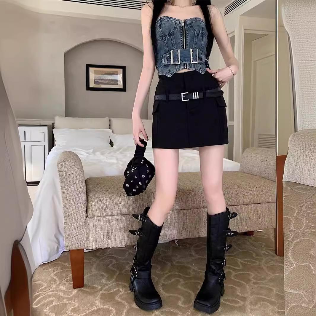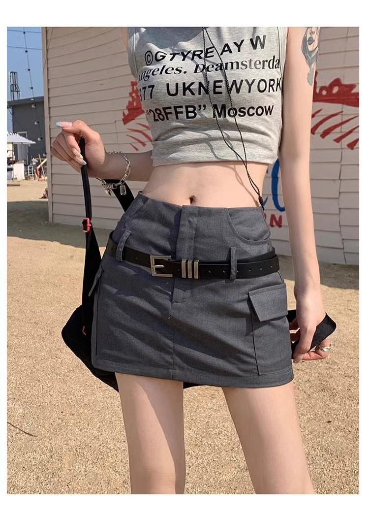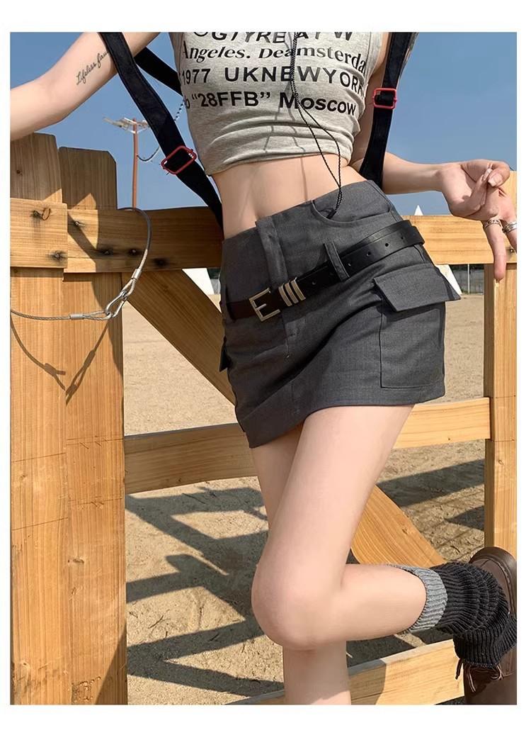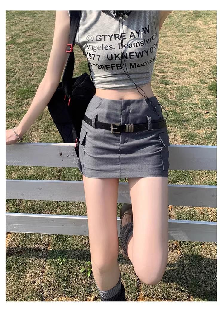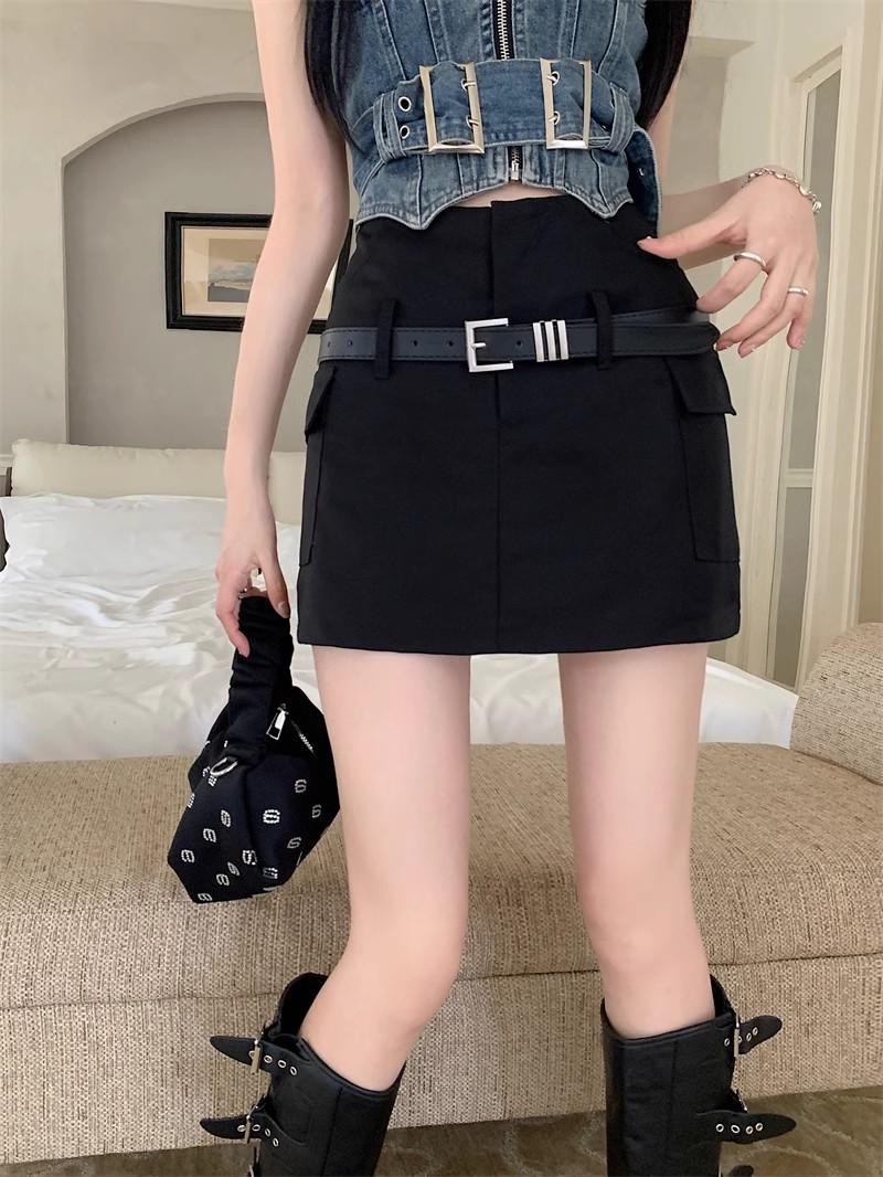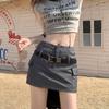 Falda de traje de cintura alta con diseño de cinturón para mujer, estilo americano, a la moda, elegante y ajustada, 2024
