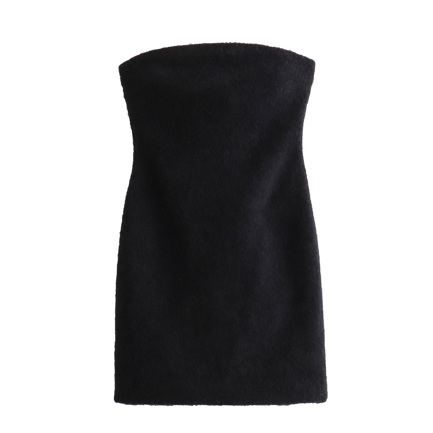 Moda Otoño 2024 Nuevo Vestido Negro sin Tirantes Efecto Lanoso Transfronterizo Amazon Ropa de Mujer M56973