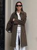 Abrigo de ante marrón vintage de otoño e invierno para mujer, abrigo largo de terciopelo con solapa suelta de alta gama, ropa de viaje europea y americana para mujer.
