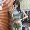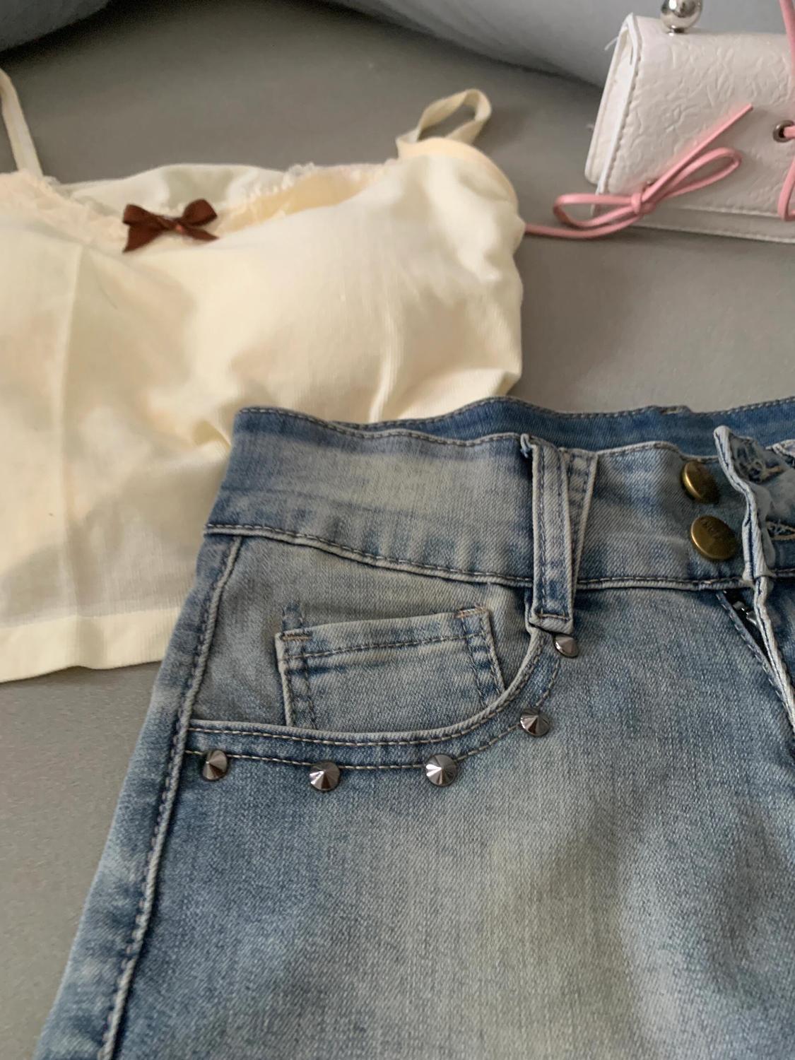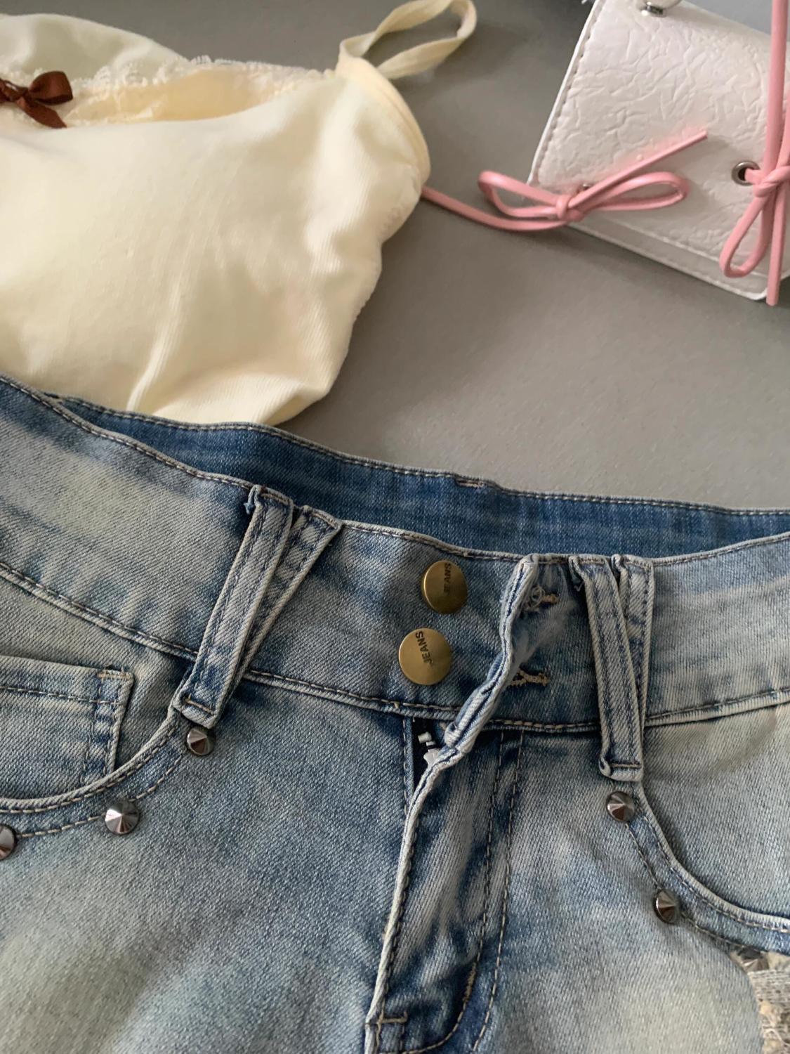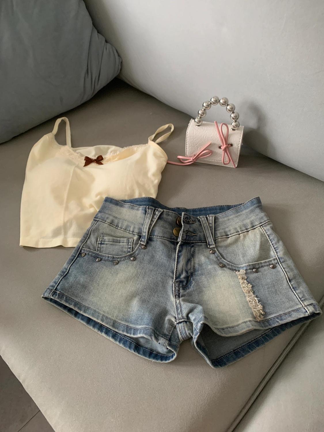 Pantalones cortos vaqueros vintage de color claro para mujer, estilo Spice Girl, de cintura baja, lavados, de verano