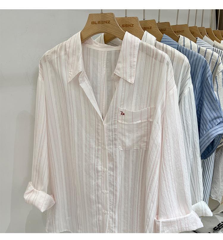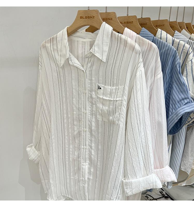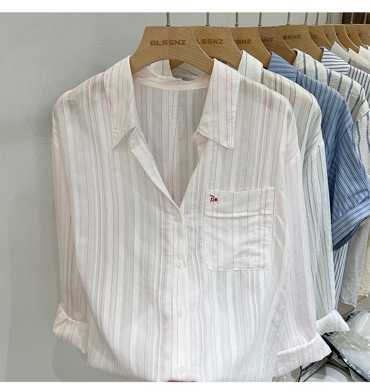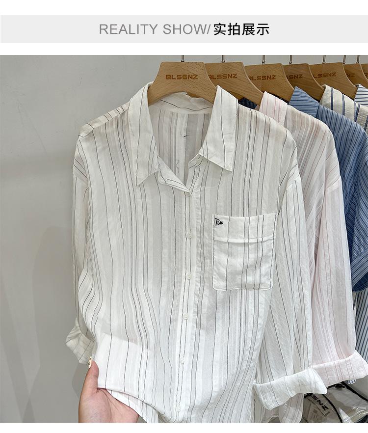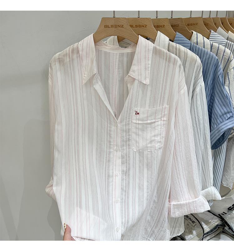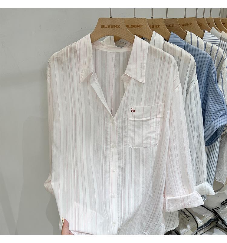 Chaqueta tipo camisa fina a rayas con protección solar para mujer, otoño 2024, nuevo diseño, estilo francés, tipo cárdigan.