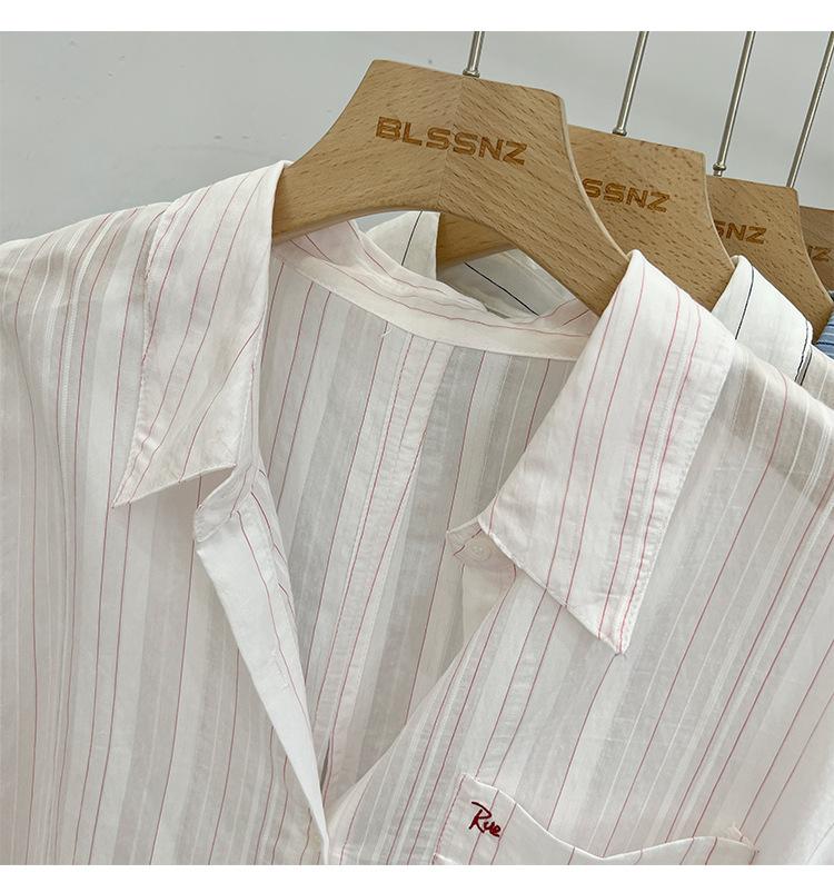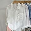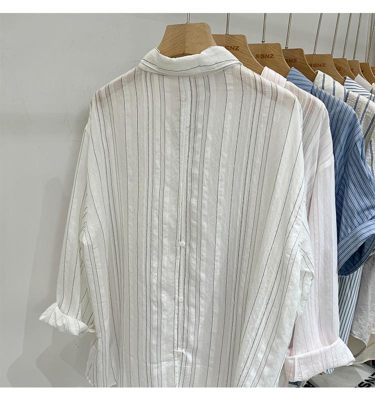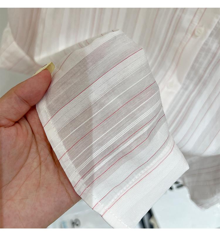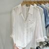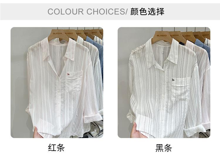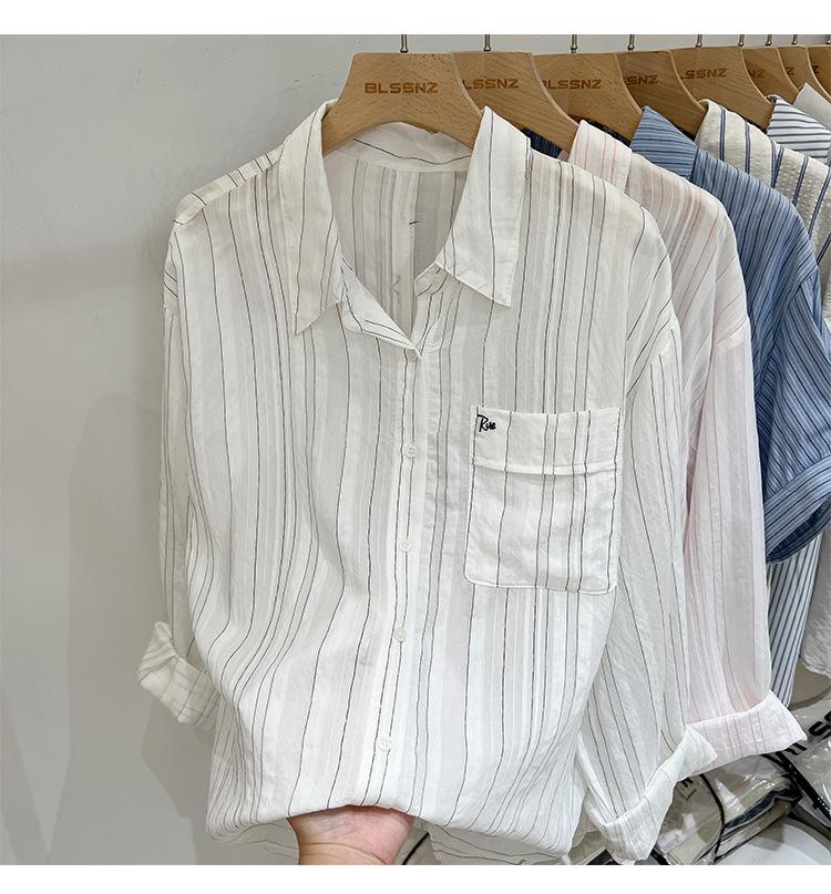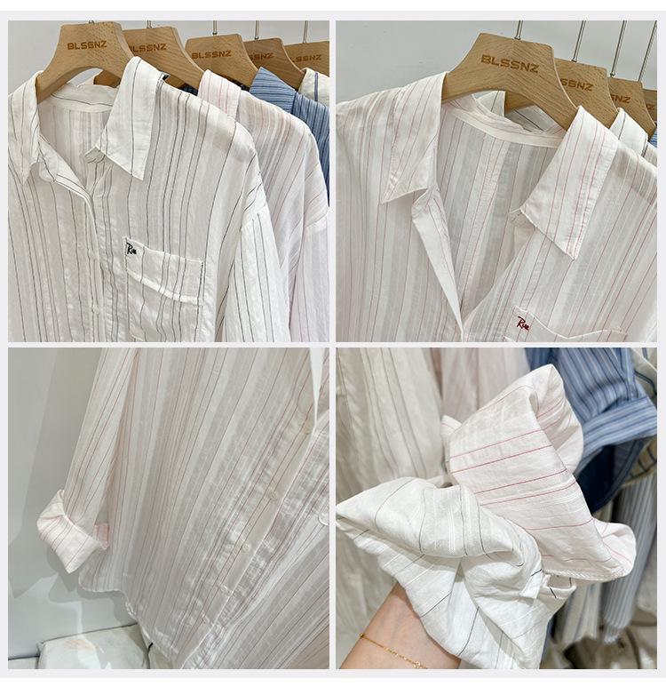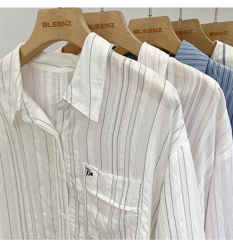 Chaqueta tipo camisa fina a rayas con protección solar para mujer, otoño 2024, nuevo diseño, estilo francés, tipo cárdigan.