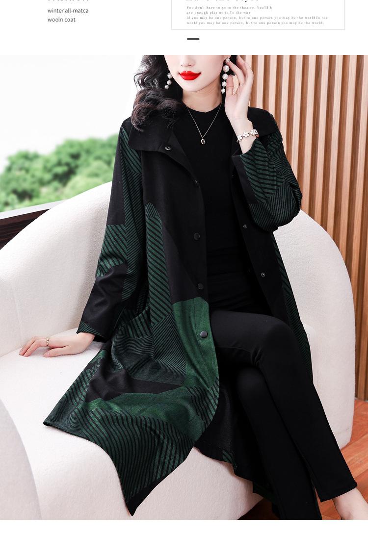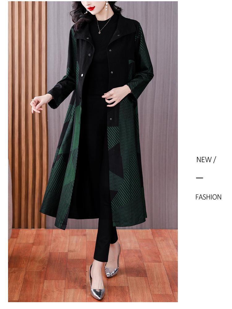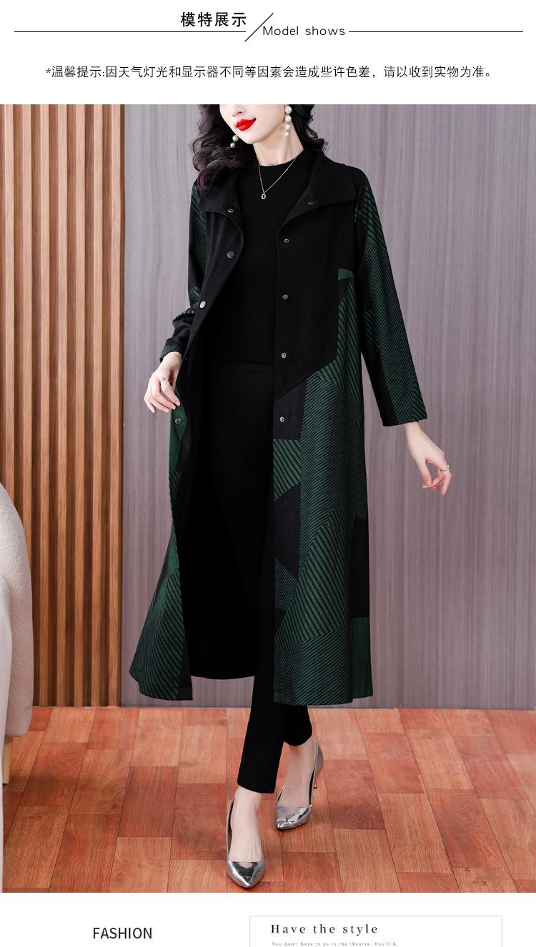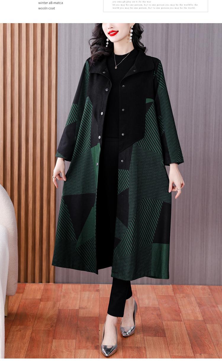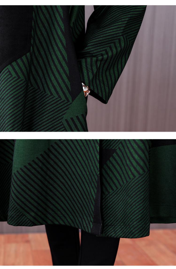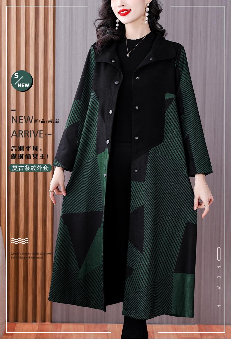 Garantía de calidad otoño e invierno temperamento suelto forrado de vellón grueso color contrastante talla grande retro a rayas abrigo largo talla grande abrigo