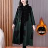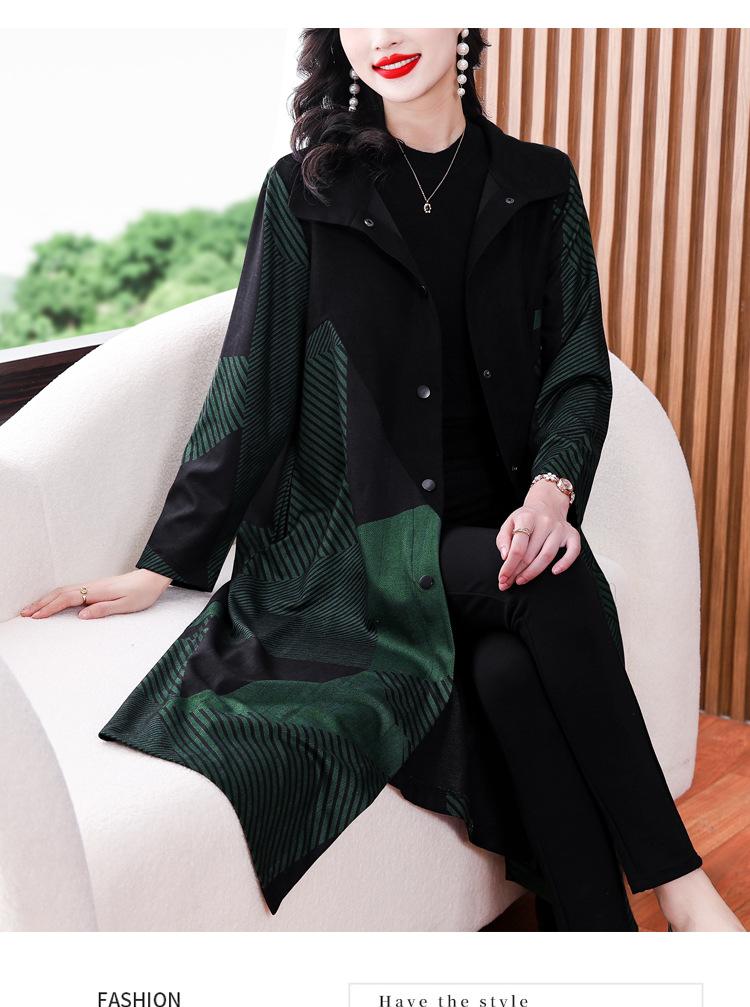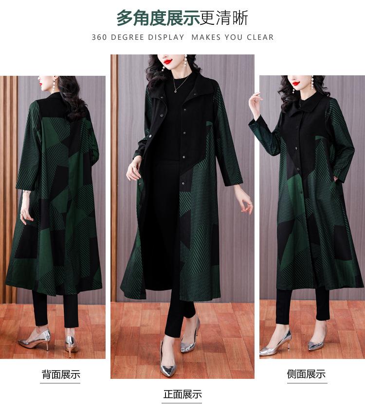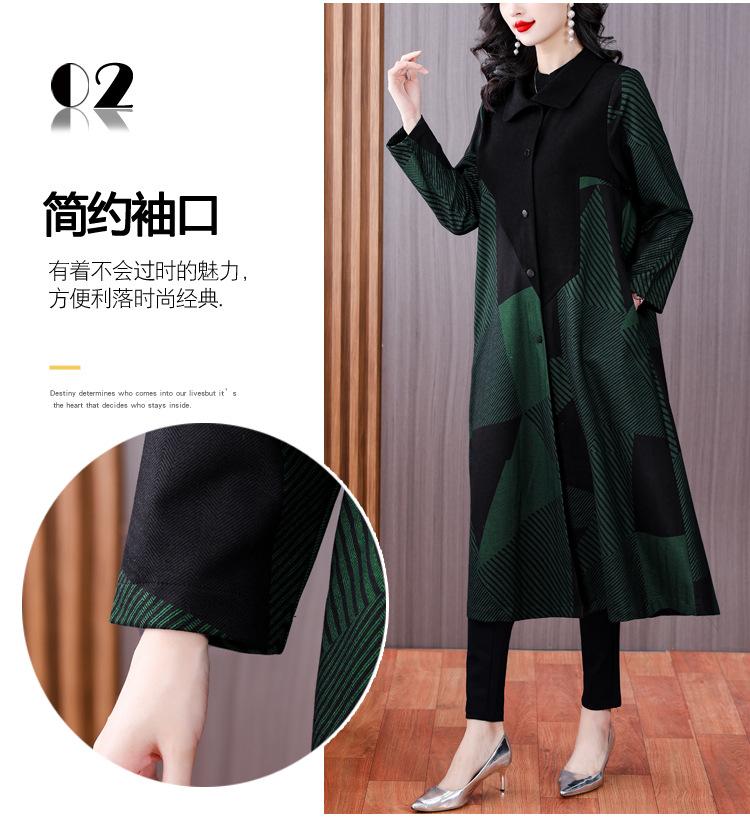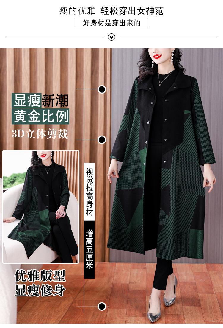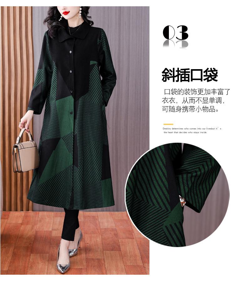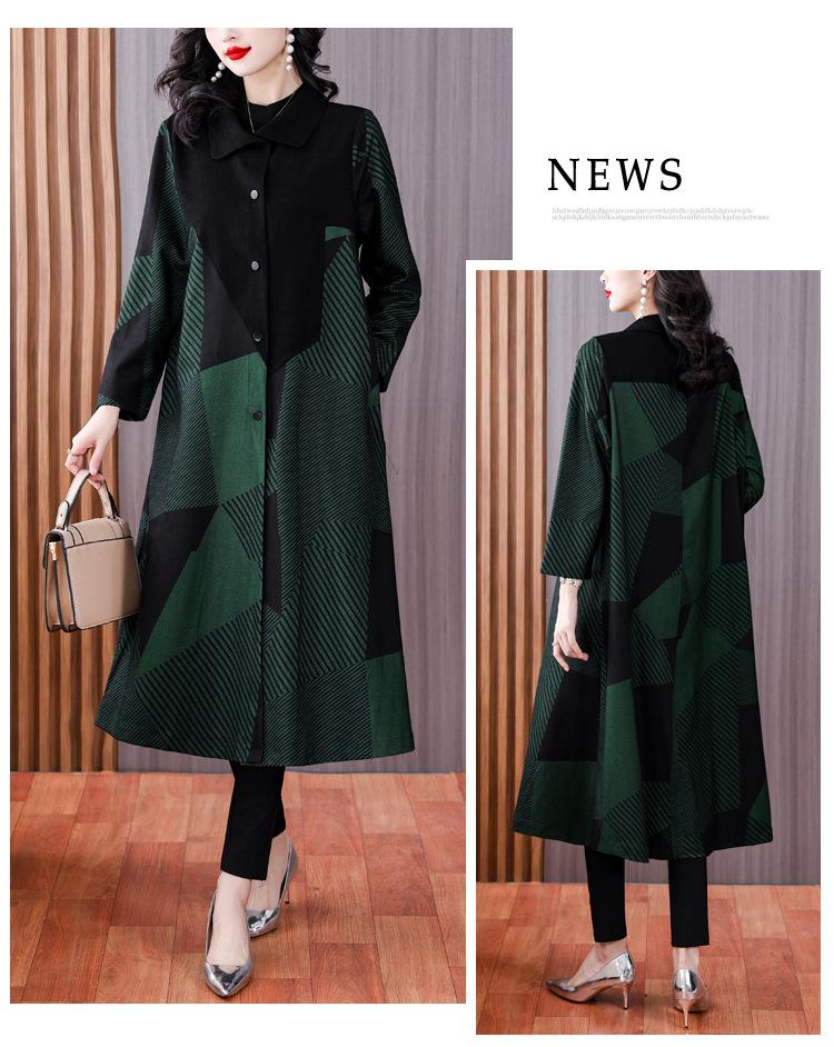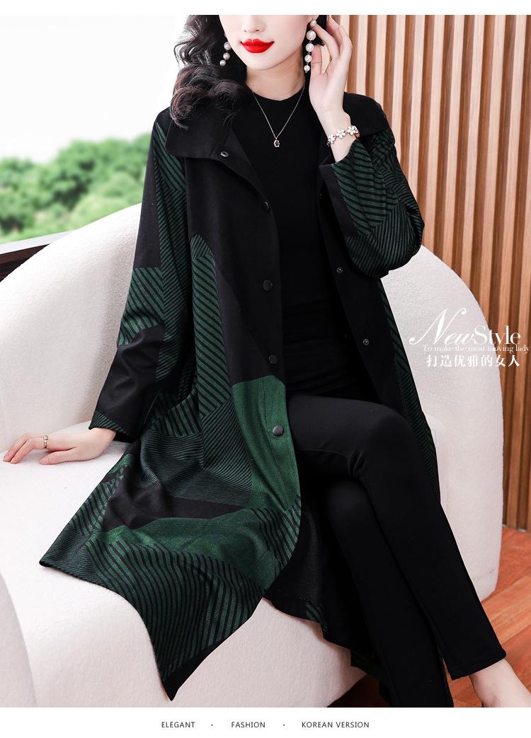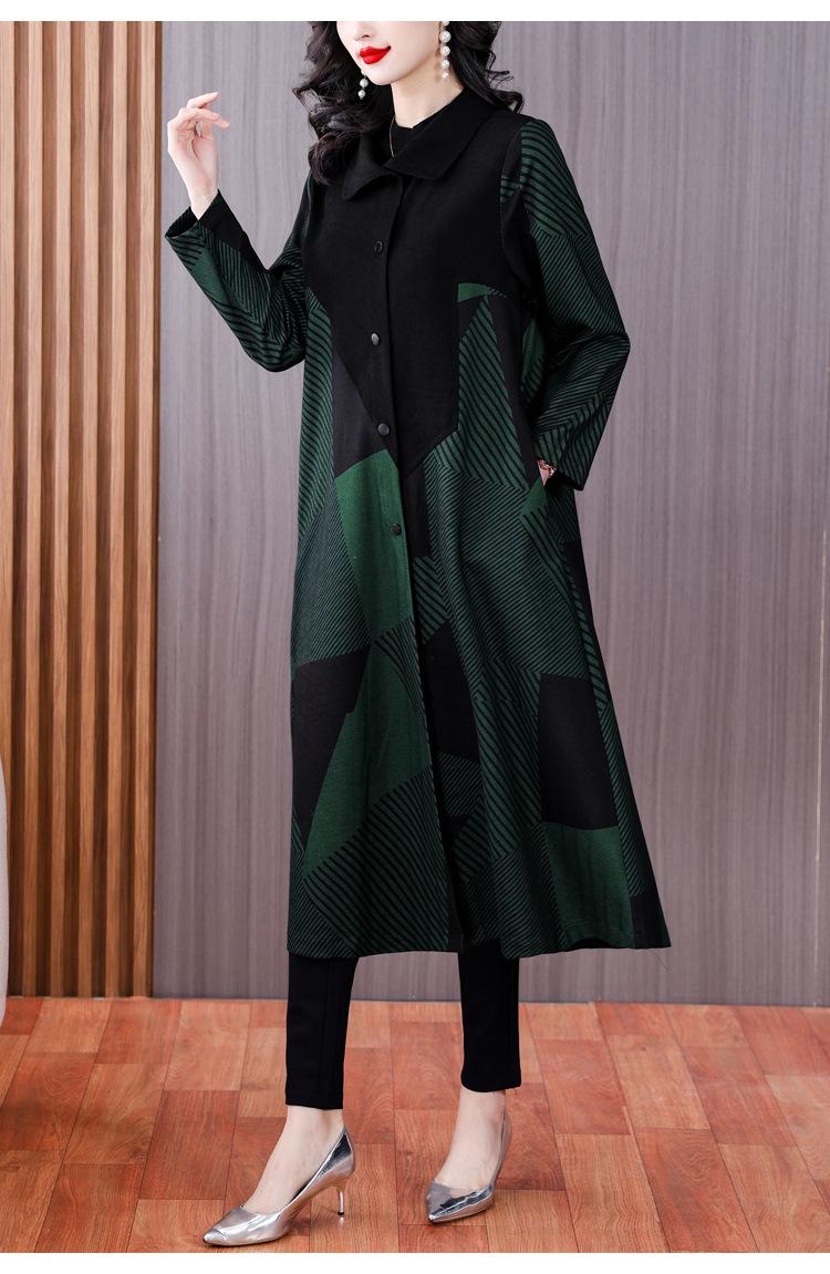 Garantía de calidad otoño e invierno temperamento suelto forrado de vellón grueso color contrastante talla grande retro a rayas abrigo largo talla grande abrigo