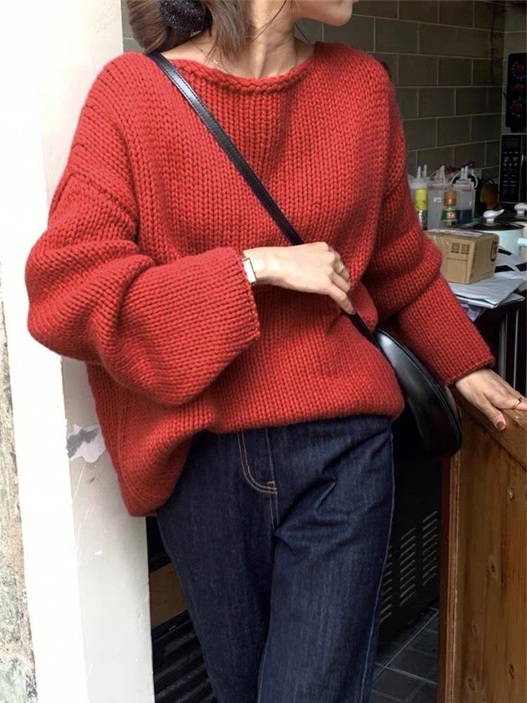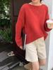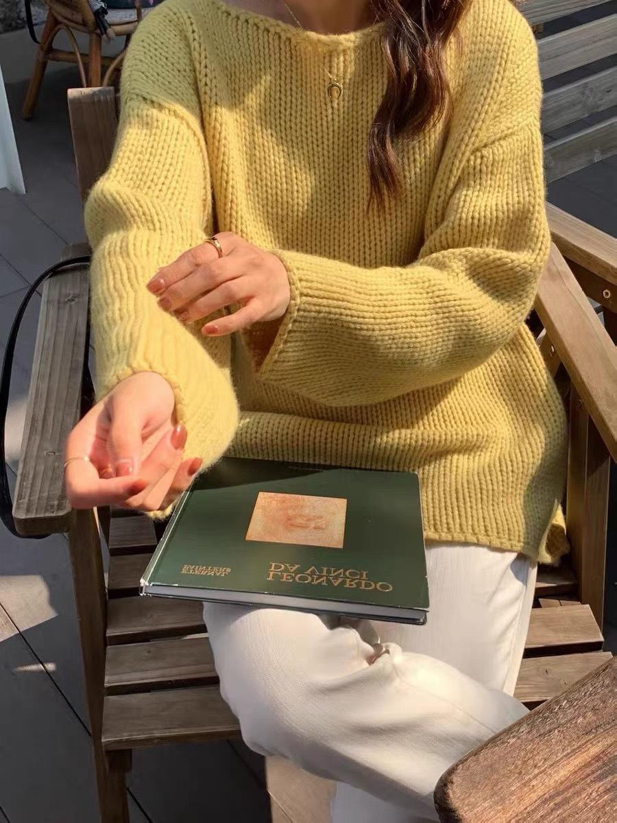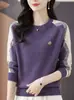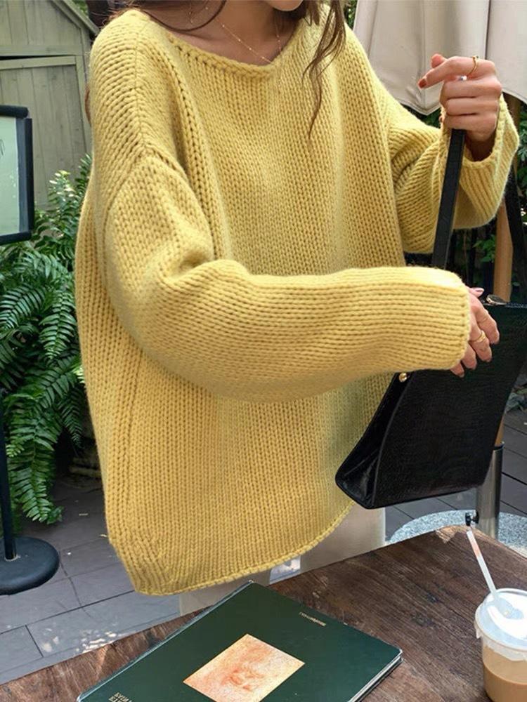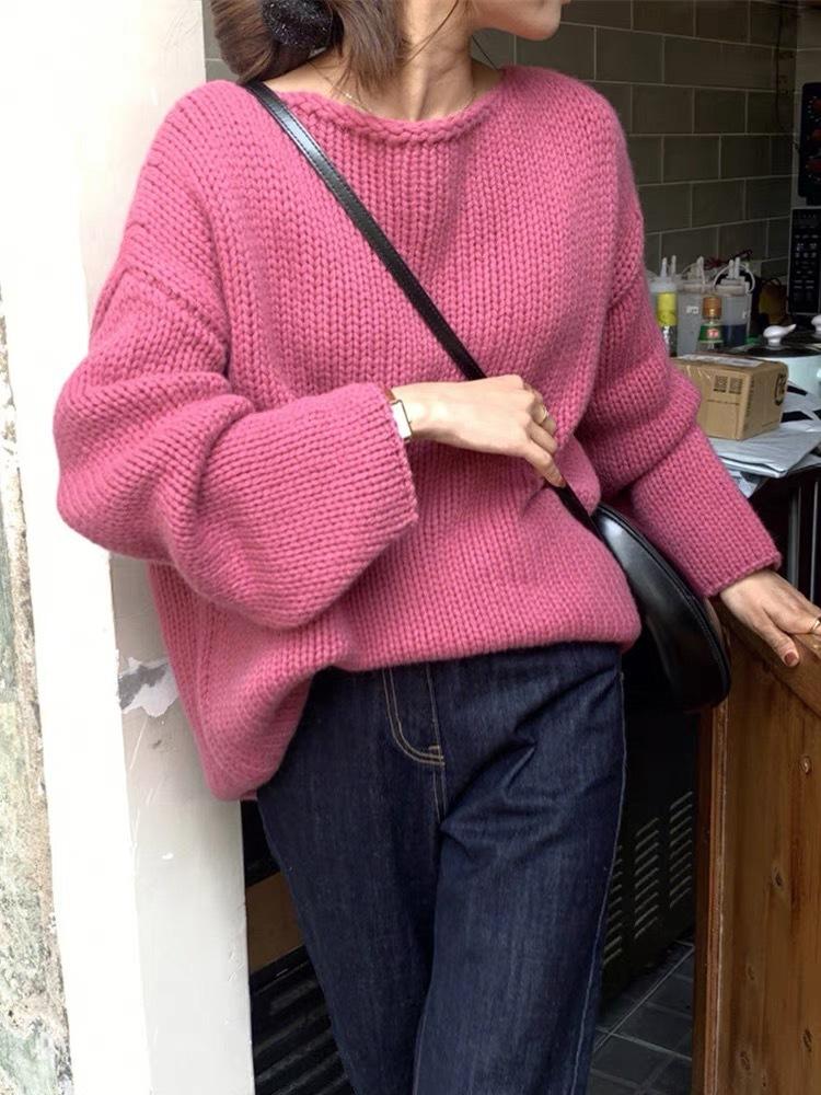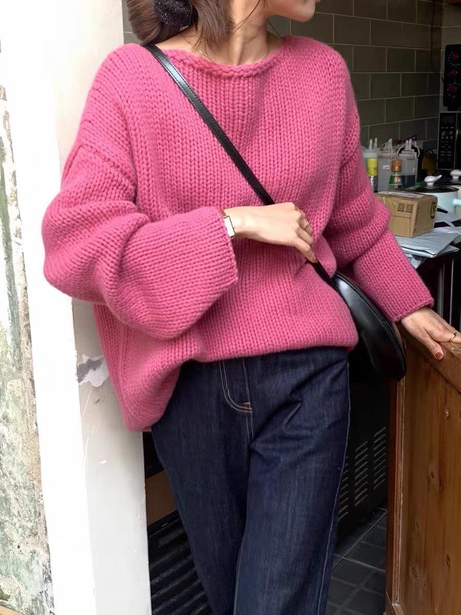 Jersey de cuello redondo para mujer, color liso, holgado, elegante, informal, sencillo, a la moda, combina con todo, de lana pura, base de punto.