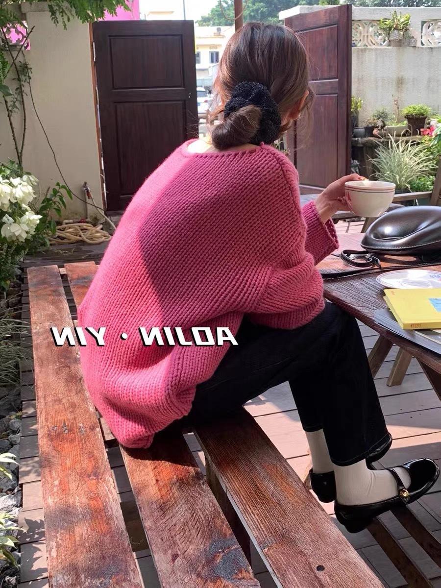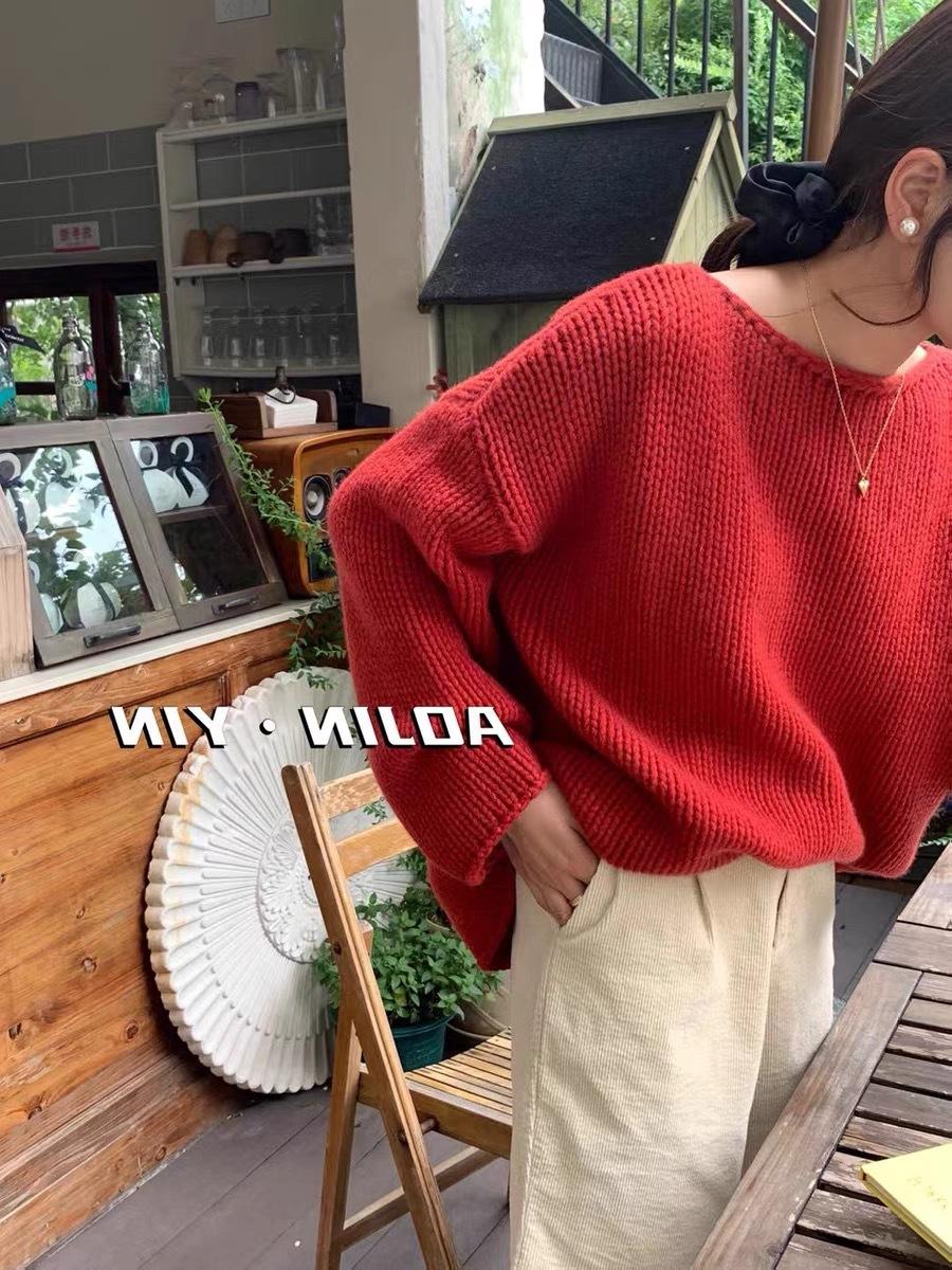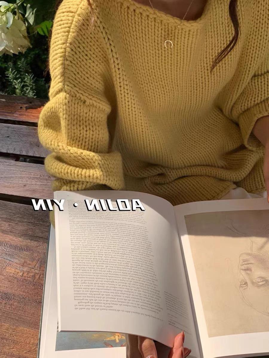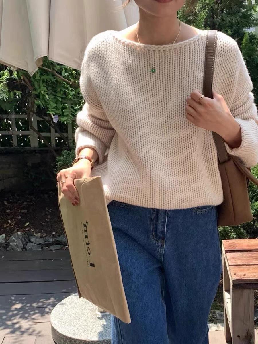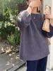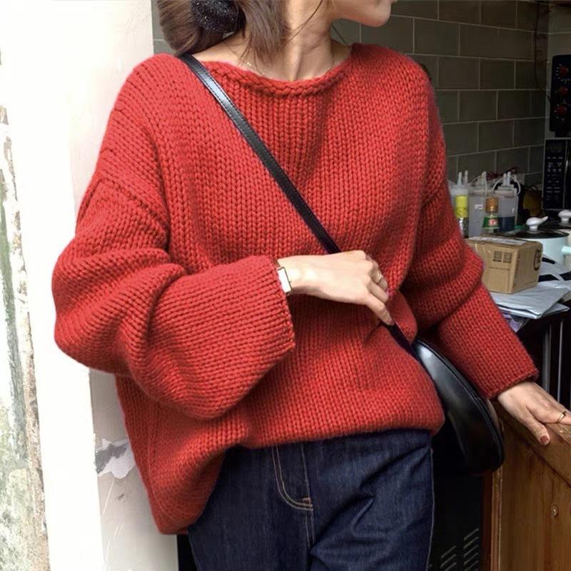 Jersey de cuello redondo para mujer, color liso, holgado, elegante, informal, sencillo, a la moda, combina con todo, de lana pura, base de punto.